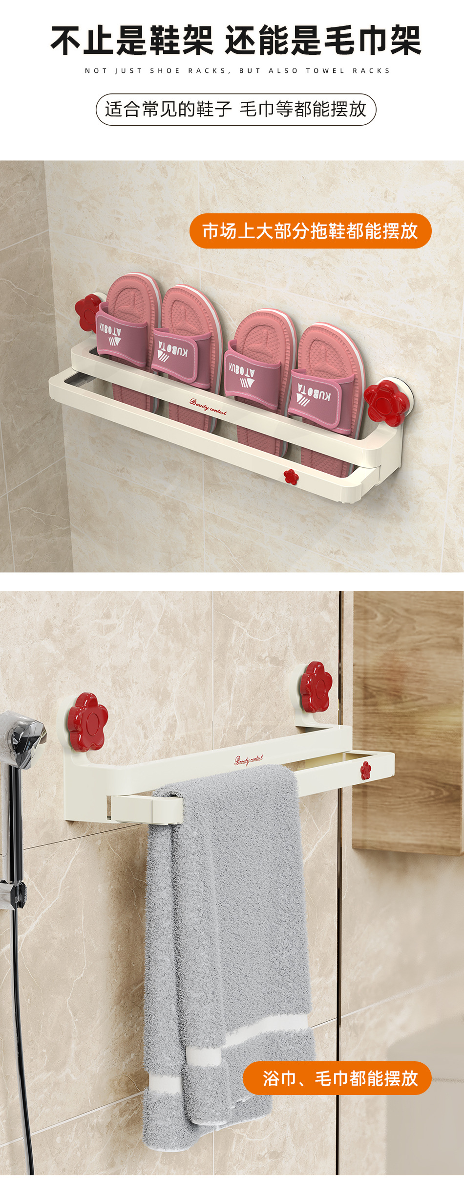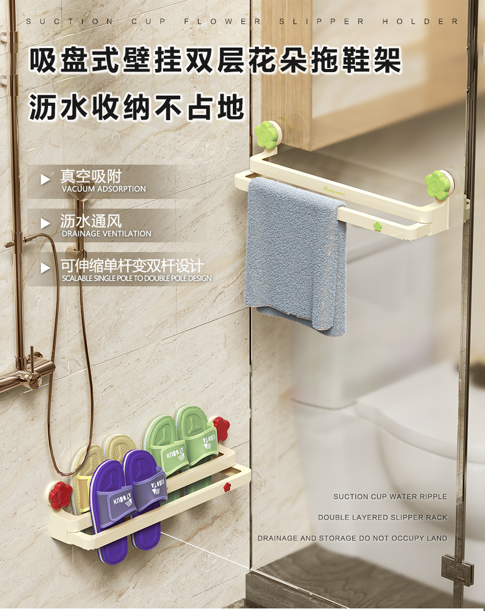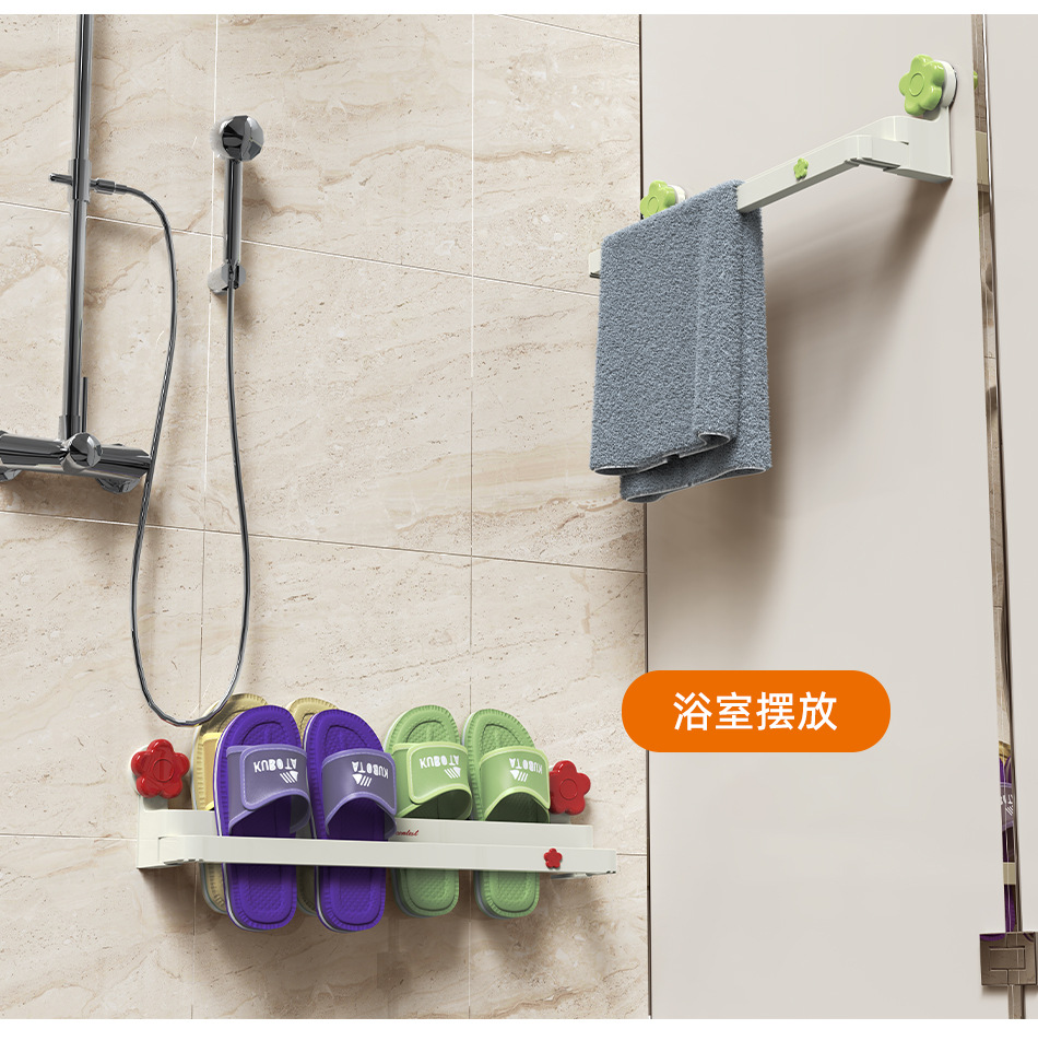 흡입 컵 꽃 개폐식 슬리퍼 랙 욕실 구멍이 뚫린 신발 보관 유물 화장실 슬리퍼 행거 배수 랙