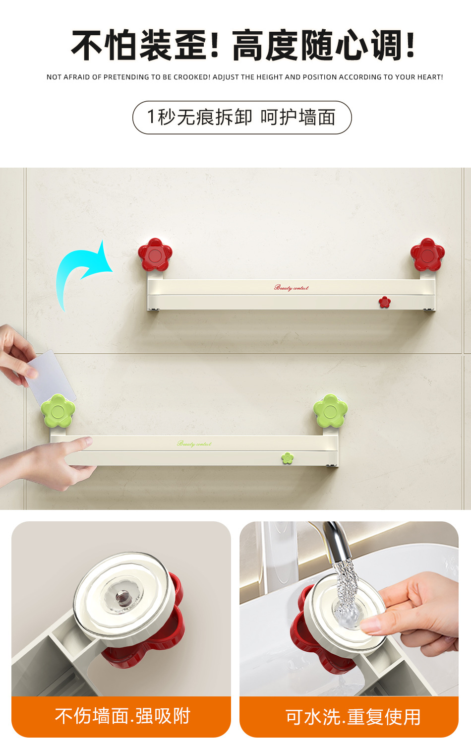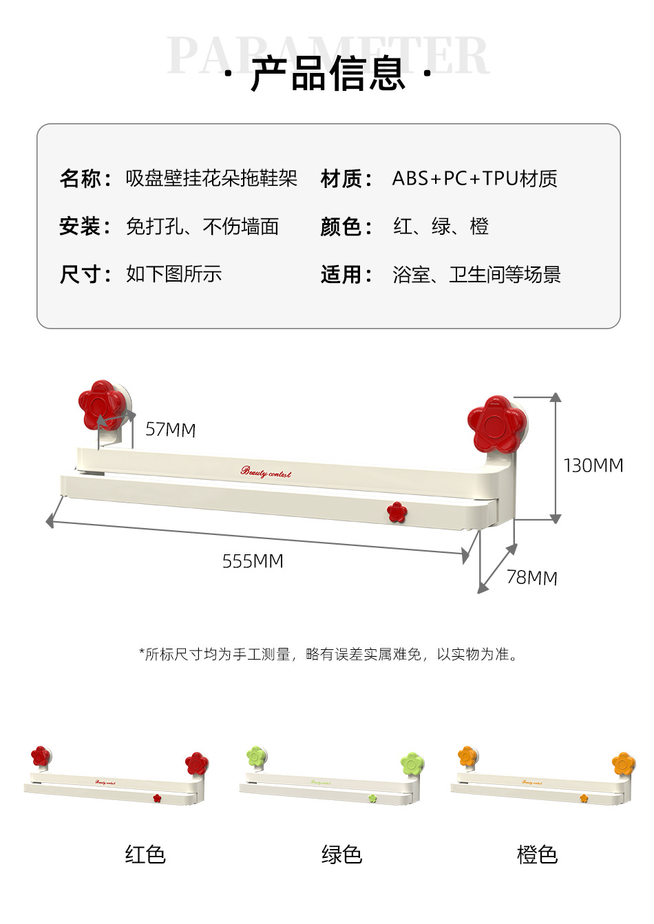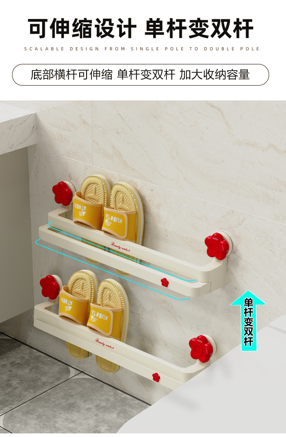 흡입 컵 꽃 개폐식 슬리퍼 랙 욕실 구멍이 뚫린 신발 보관 유물 화장실 슬리퍼 행거 배수 랙