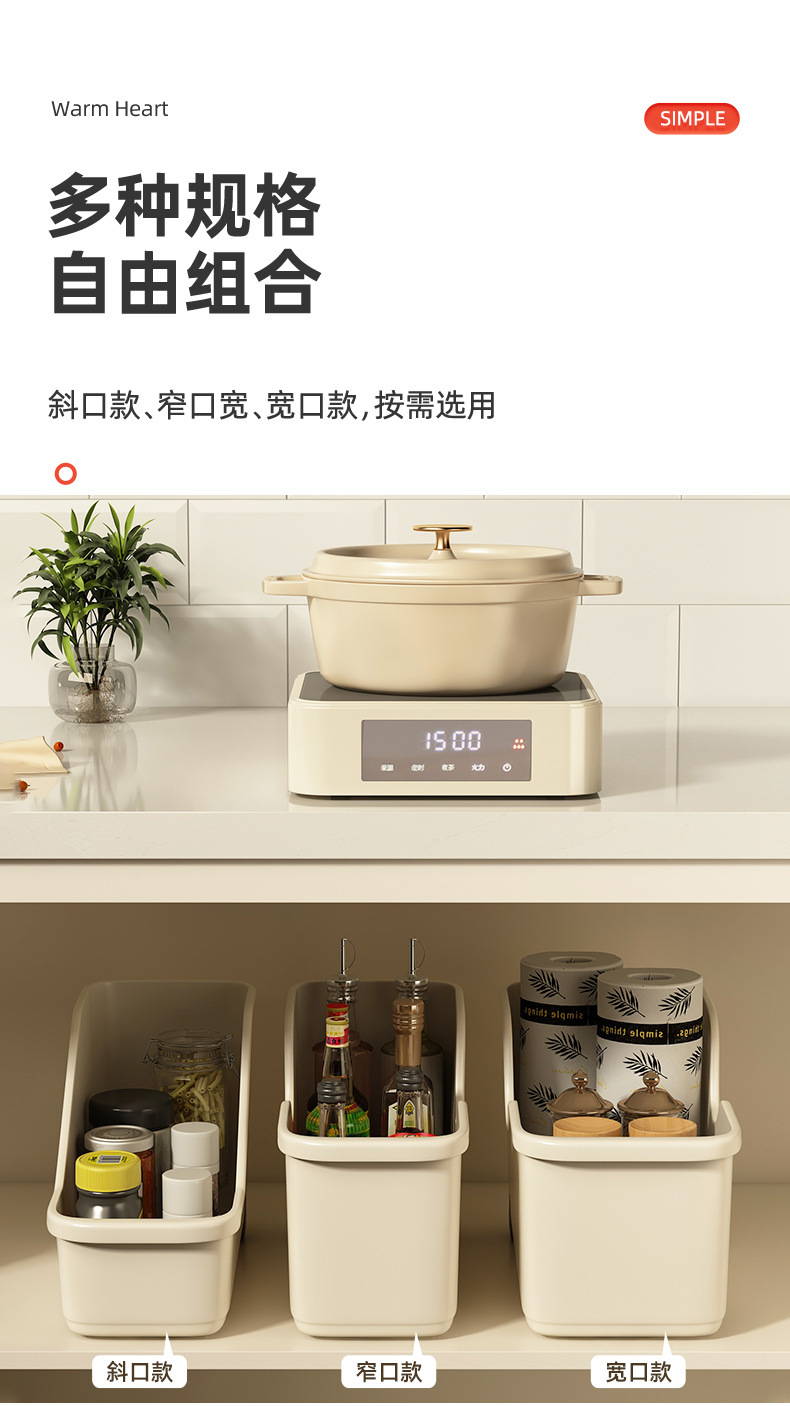 캐비닛 풀 스토리지 박스 주방 냄비 스토리지 랙 플라스틱 스토리지 포트 커버 랙 캐비닛 마무리 스토리지 랙 하위 배치