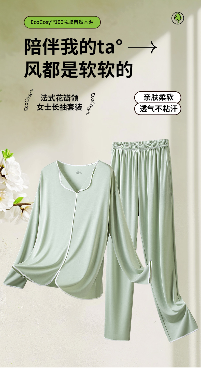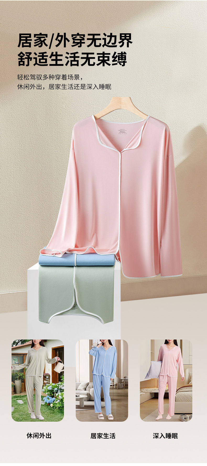 [연령감소 시리즈] 신상 유코스 여성 홈웨어 얇은 외출용 잠옷 긴팔 바지 세트스토어 가기