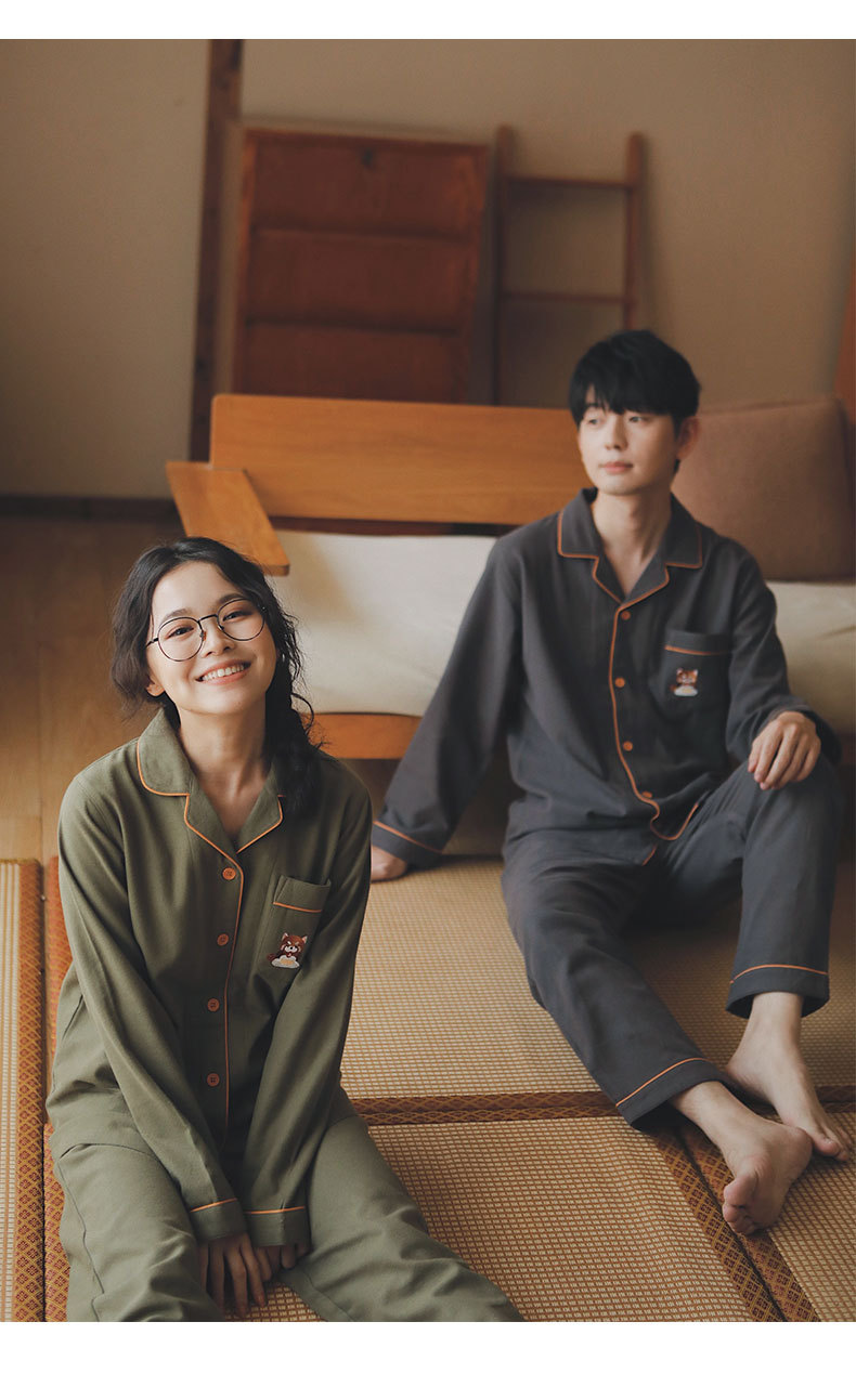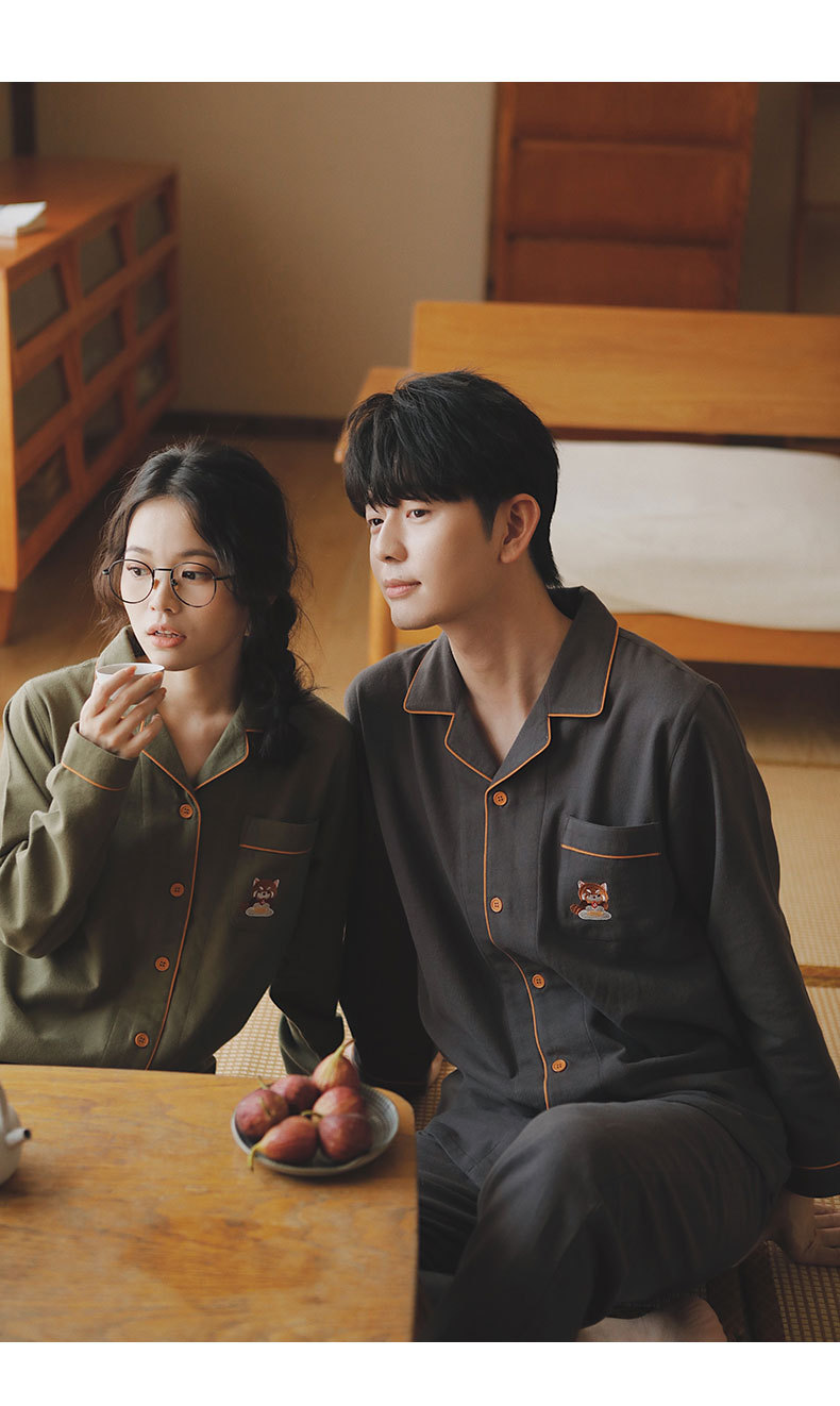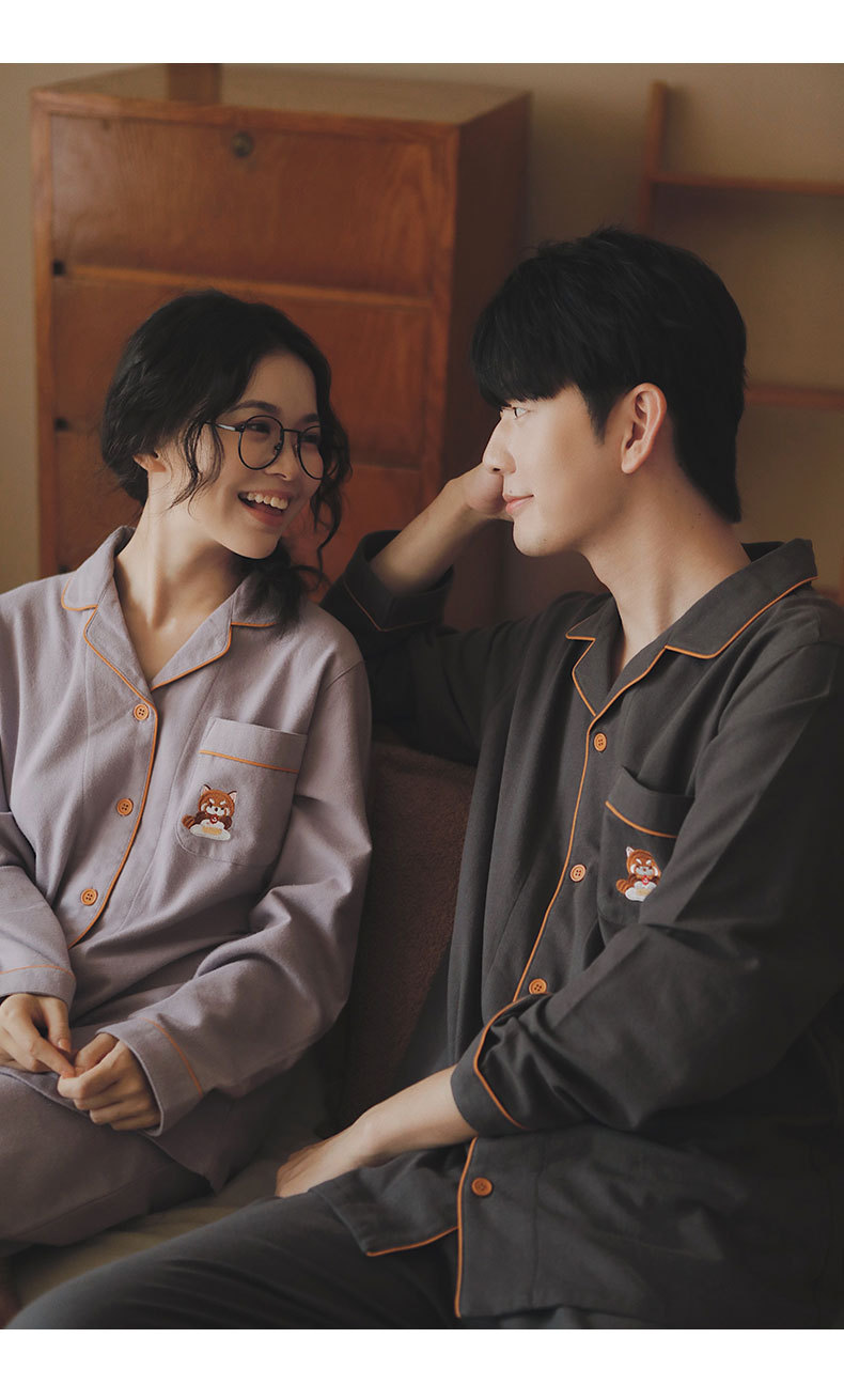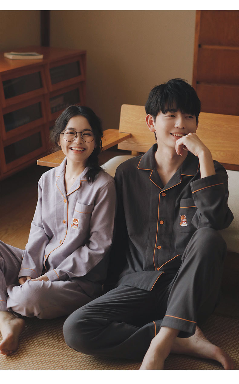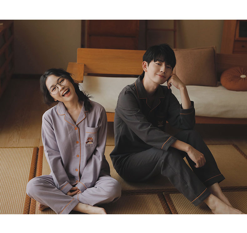 만나 77-커플 잠옷 면 긴 소매 여성의 봄과 가을 플러스 사이즈 남자의 느슨한 홈 옷 세트