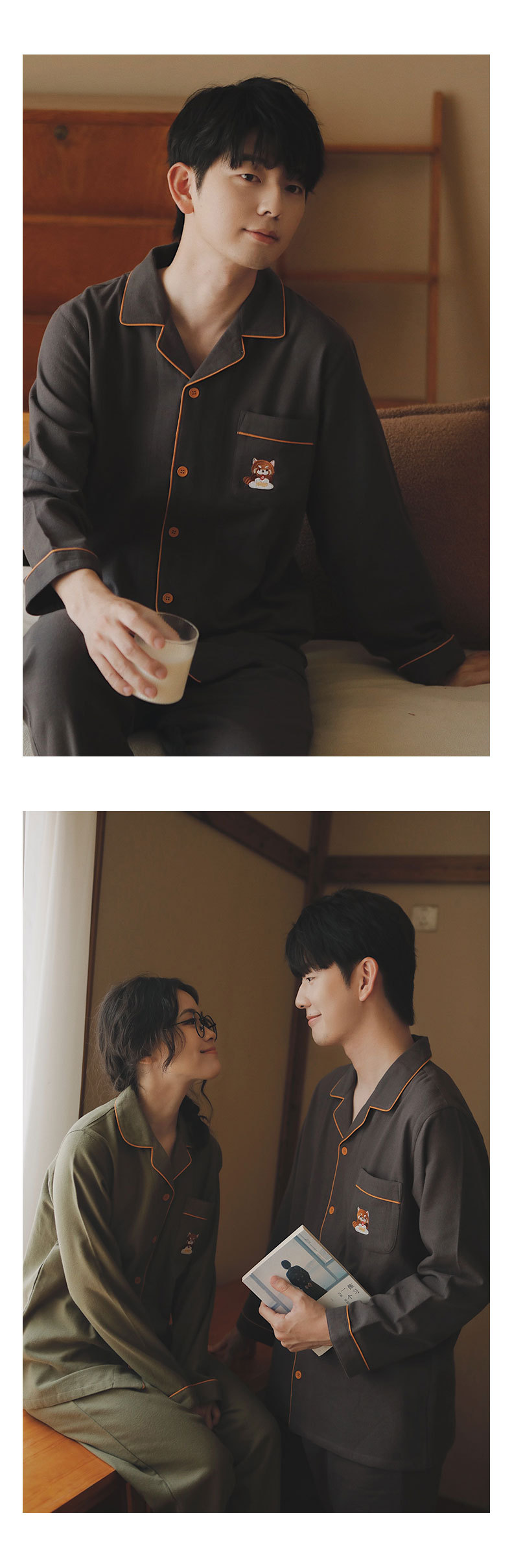 만나 77-커플 잠옷 면 긴 소매 여성의 봄과 가을 플러스 사이즈 남자의 느슨한 홈 옷 세트스토어 가기