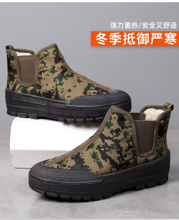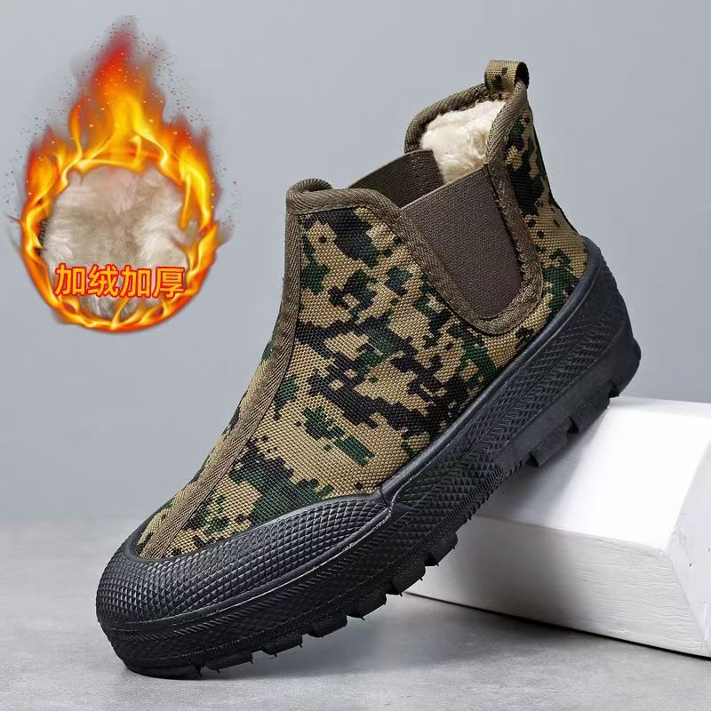 겨울 기모 하이탑 코튼 신발 한 페달 건설 현장 농지 야외 노동 보호 해방 면화 기모 두꺼운 잉곳 신발