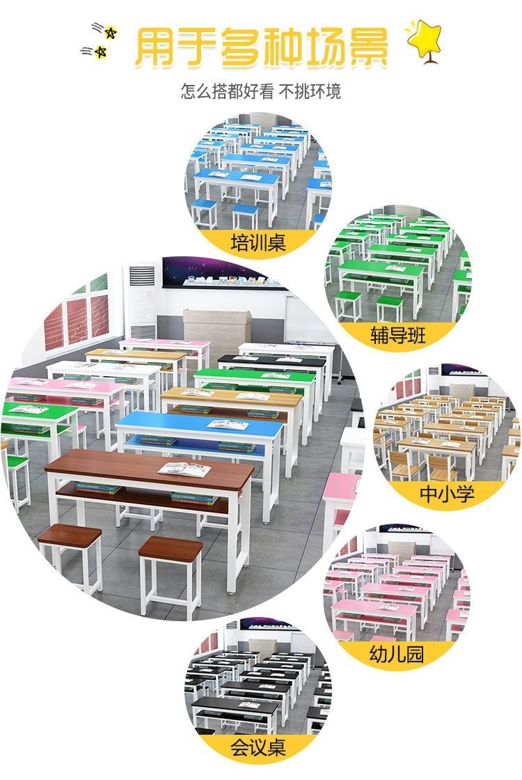 초등 및 중등 학교 학생들을위한 학교 미술 교육 수업 책상 및 의자 책상 더블 더블 더블 튜터링 오후 간호 수업 긴 직원스토어 가기