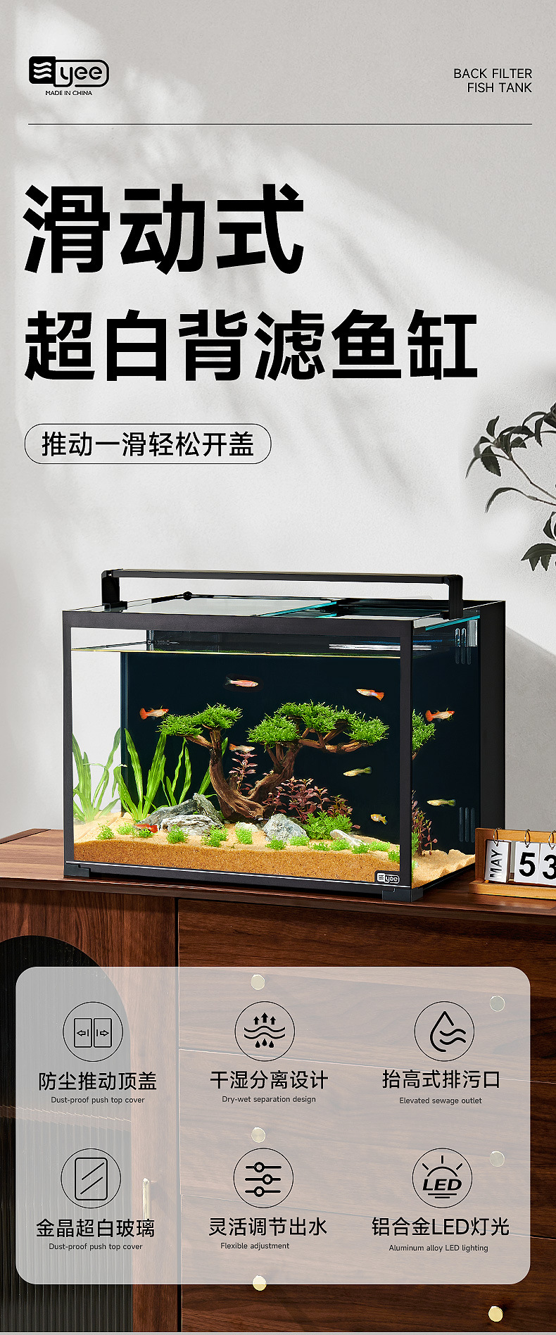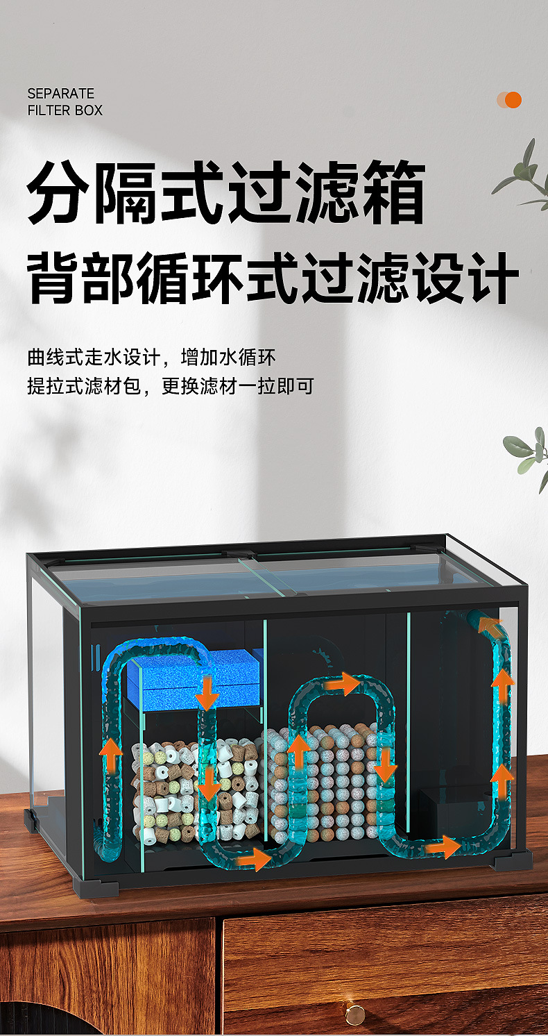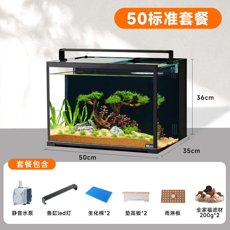 유리 물고기 탱크 유리 데스크탑 생선 탱크 슈퍼 화이트 백 필터 작은 생태 데스크탑 풍경 유리 가구 재활용 게스트스토어 가기