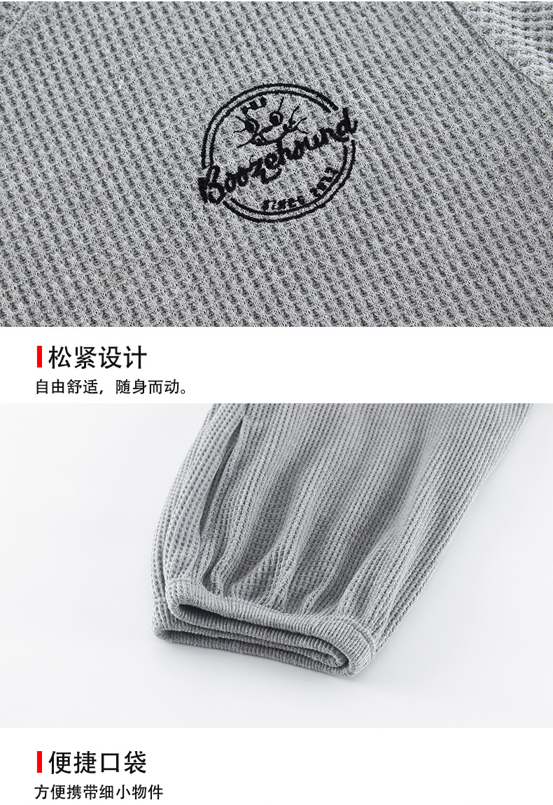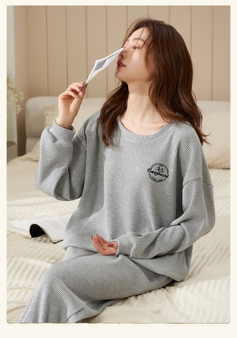 잠옷 여성의 봄과 가을 둥근 목면 와플 긴 소매 바지 회색 캐주얼 간단한 풀오버 홈 의류 도매