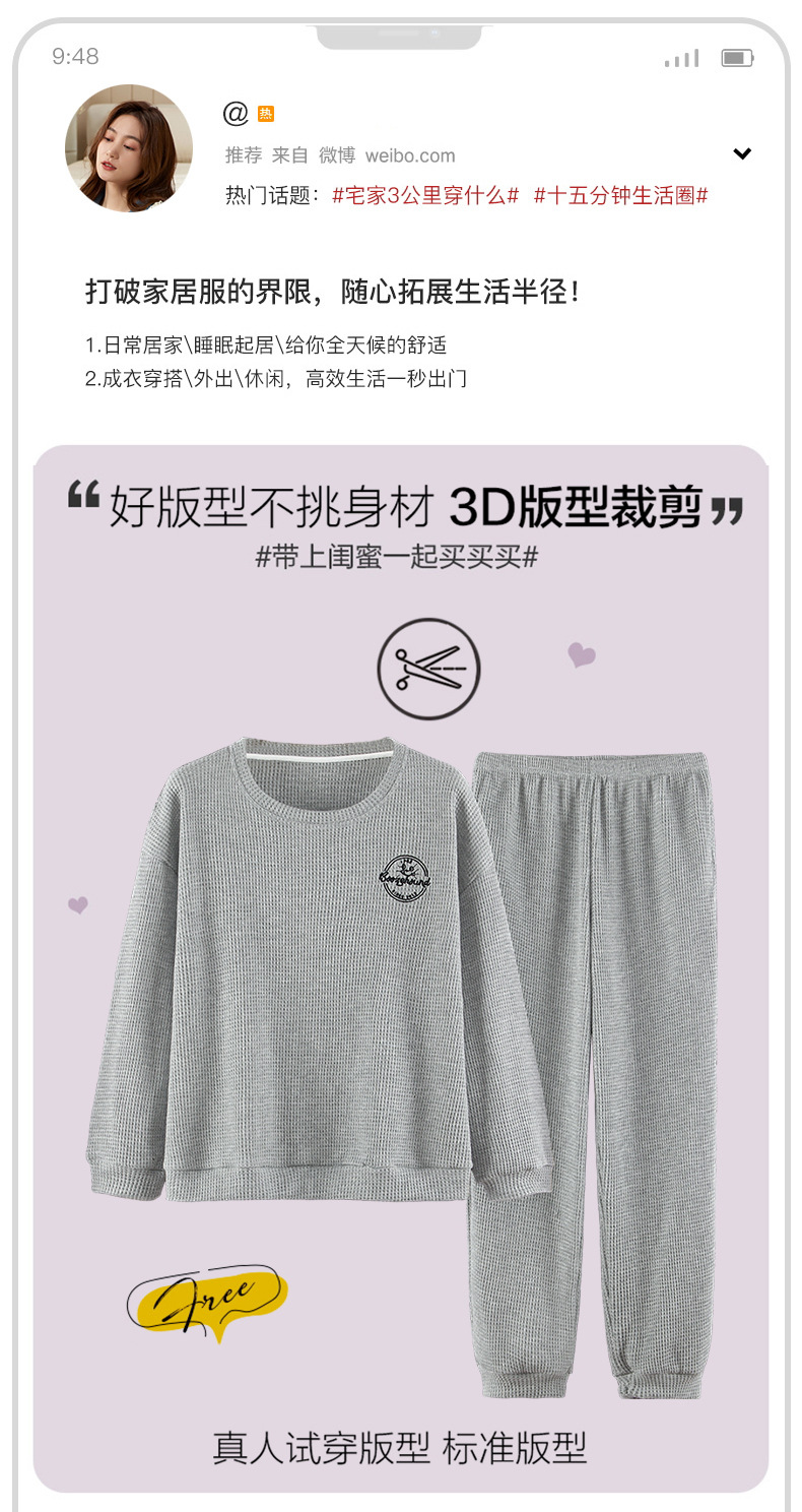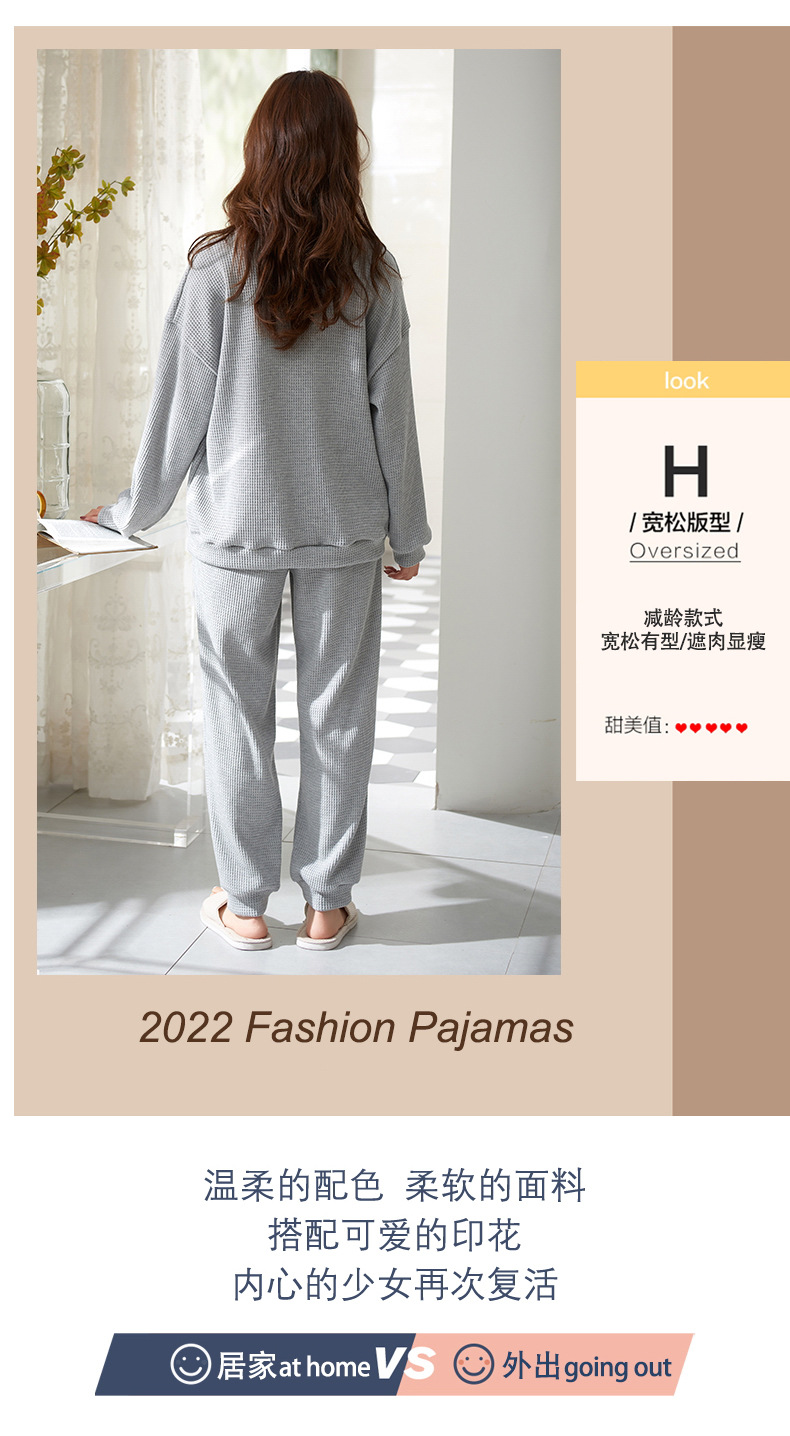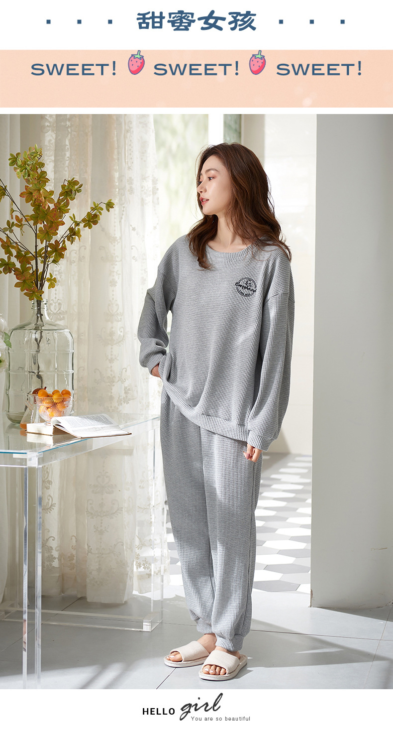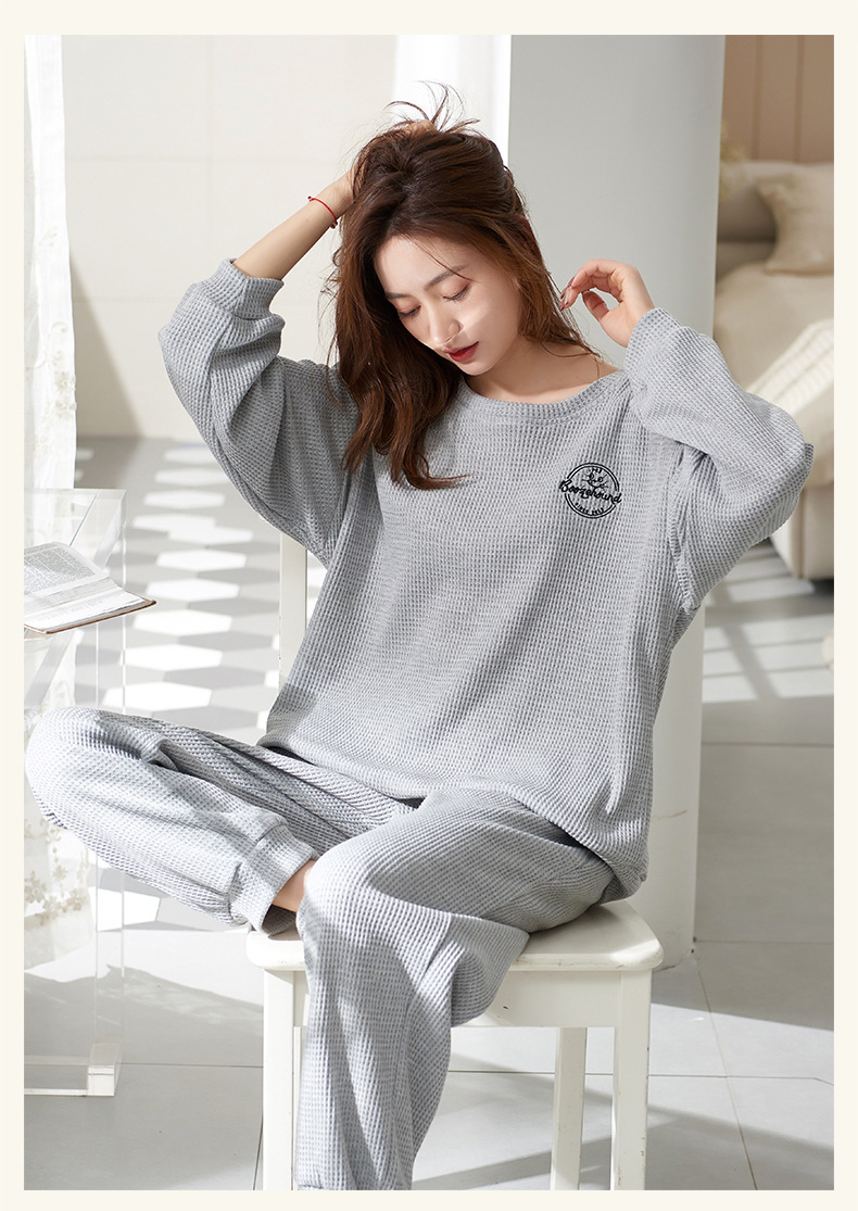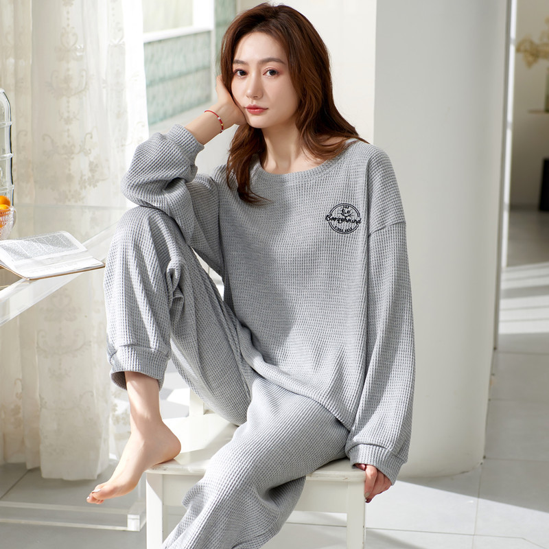잠옷 여성의 봄과 가을 둥근 목면 와플 긴 소매 바지 회색 캐주얼 간단한 풀오버 홈 의류 도매스토어 가기