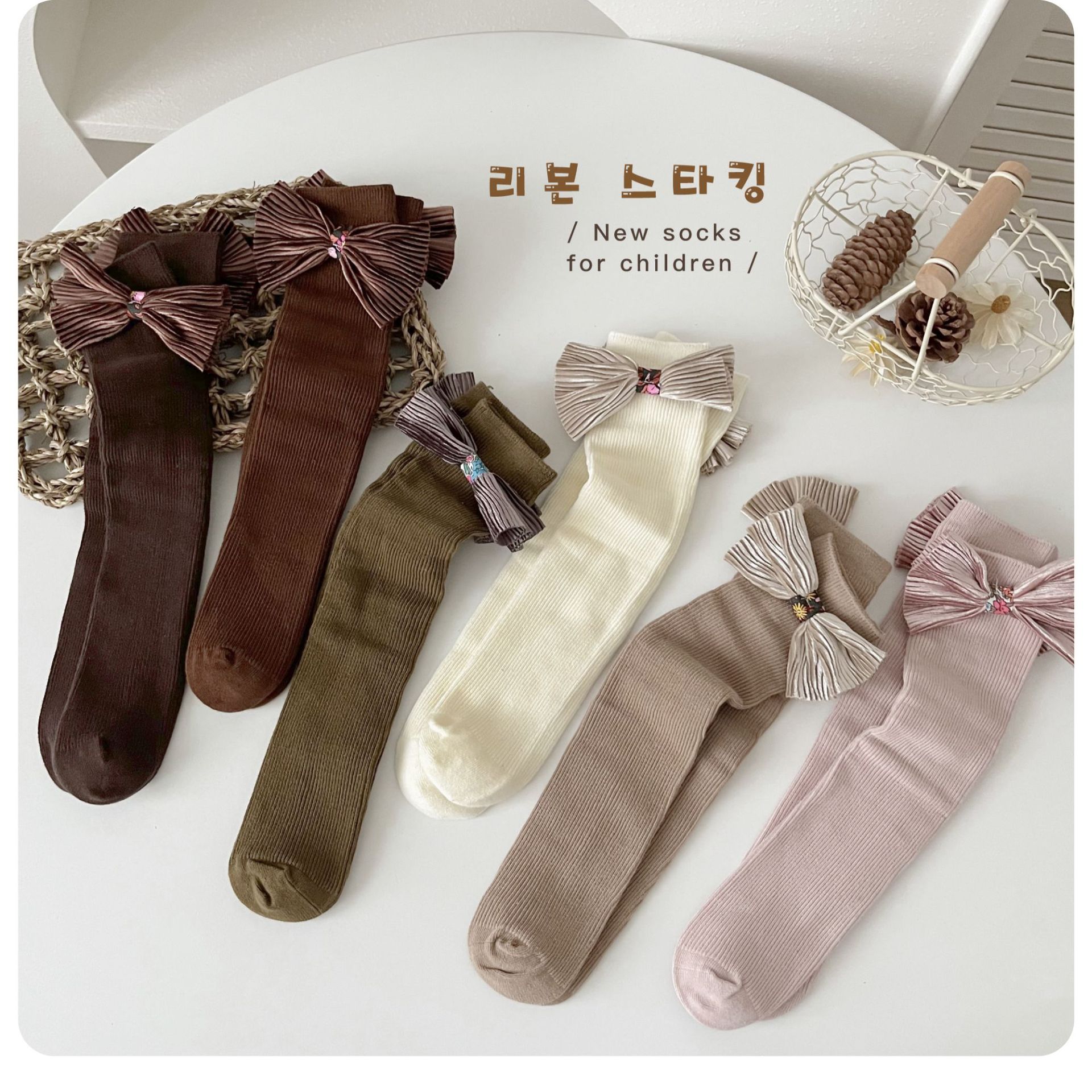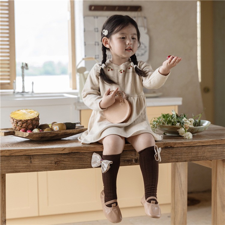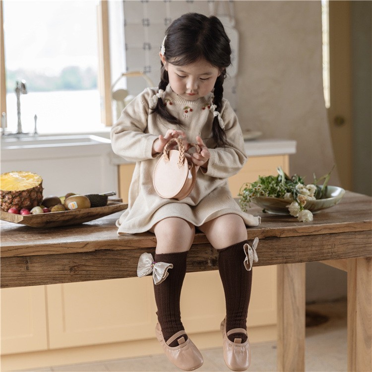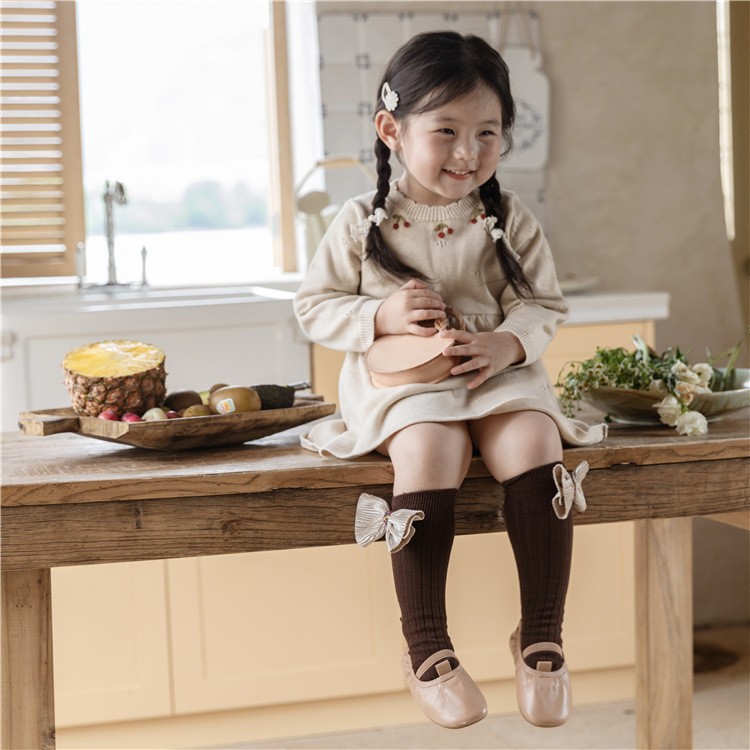 24 가을 새로운 어린이 양말 아기 일본 활 빗질면 튜브 양말 공주 바람 더미 양말스토어 가기