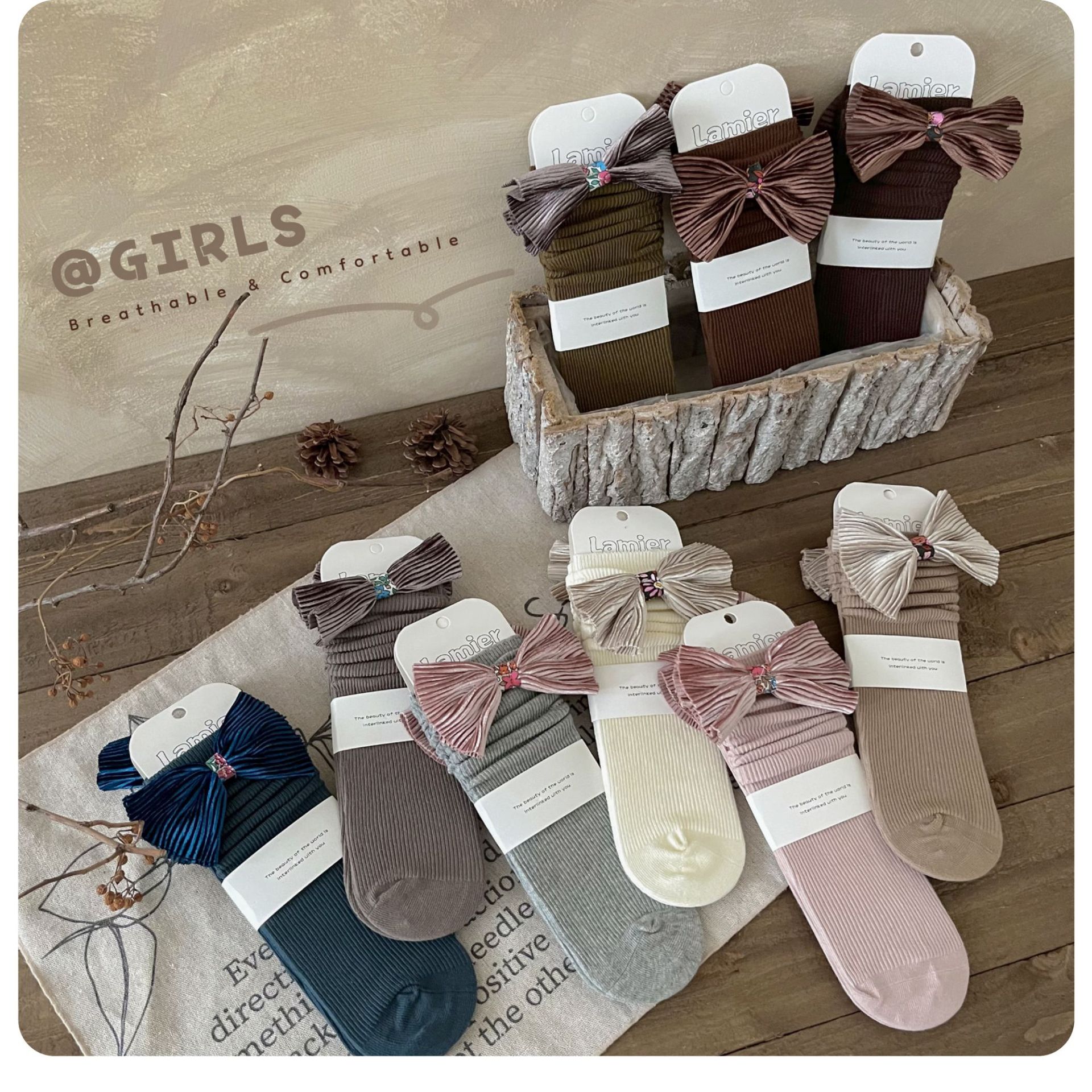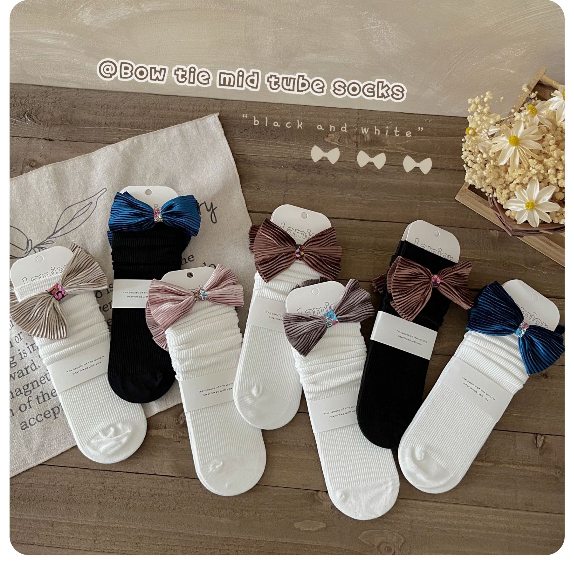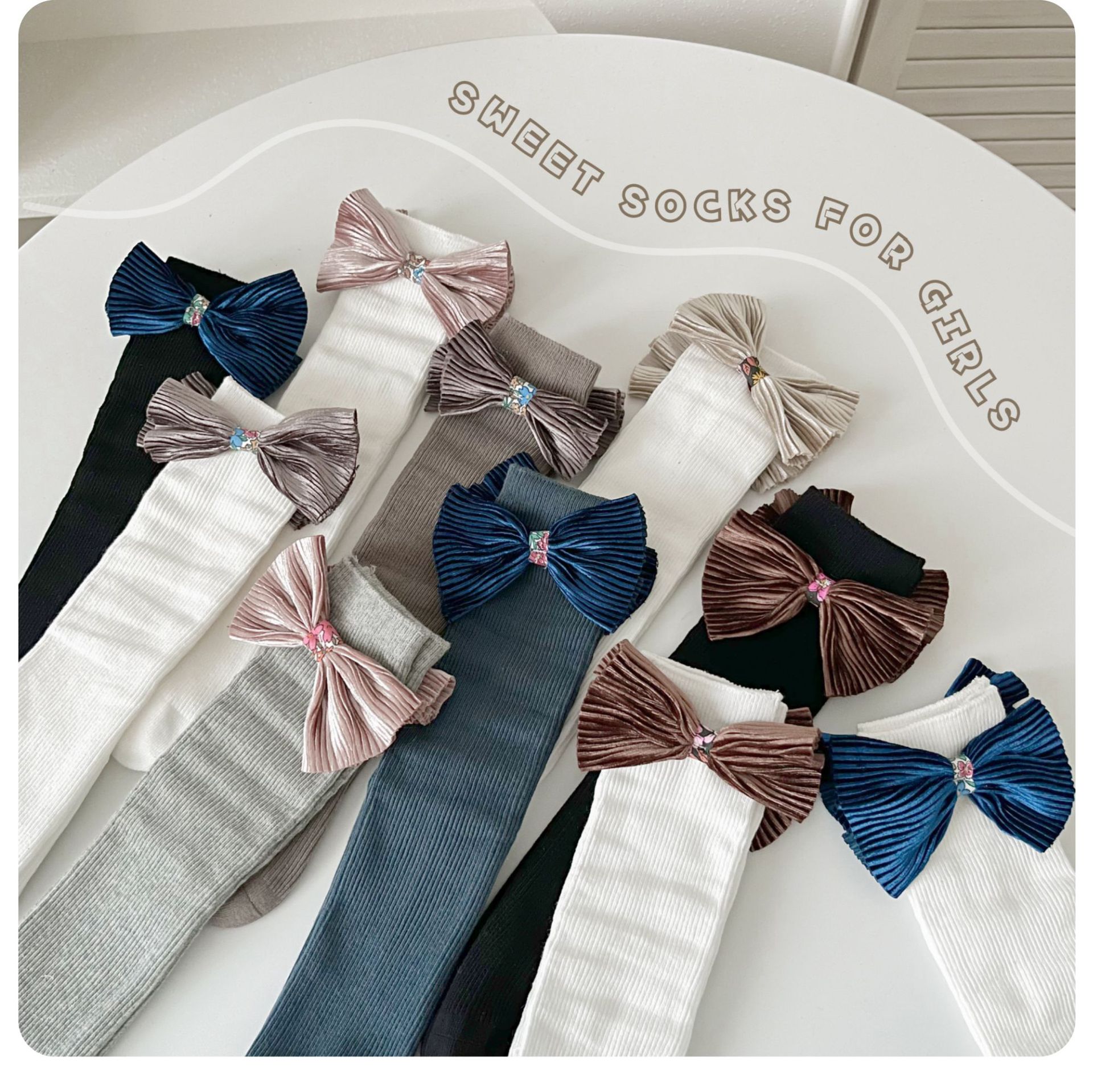 24 가을 새로운 어린이 양말 아기 일본 활 빗질면 튜브 양말 공주 바람 더미 양말스토어 가기