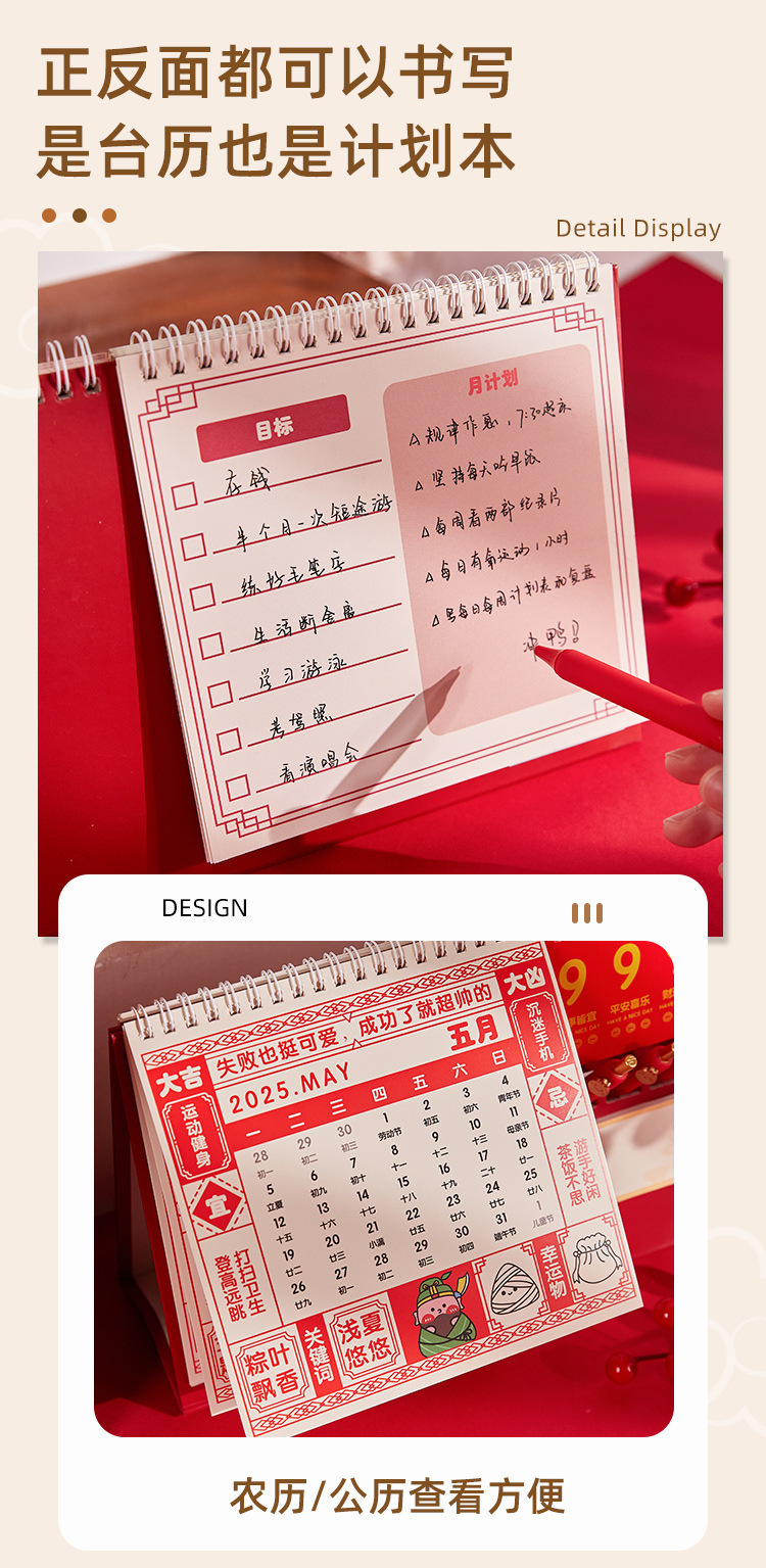 중국 스타일 2025 대만 달력 창조적 인 오래된 노란색 달력 재미 달력 다기능 데스크탑 핀인 달력 계획