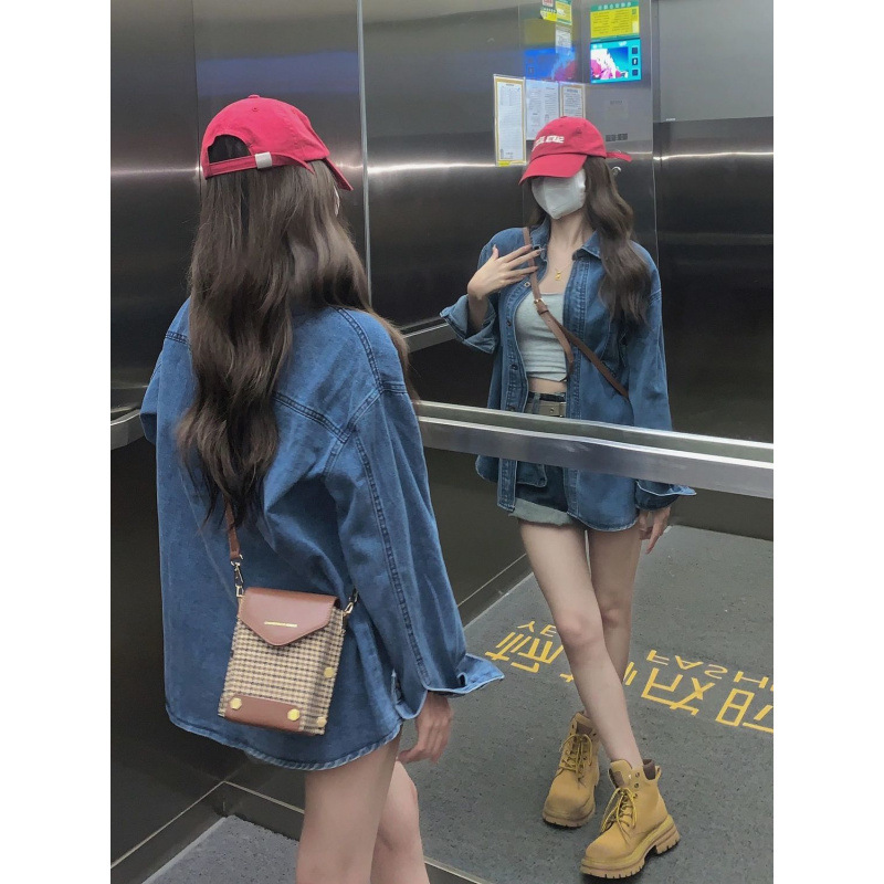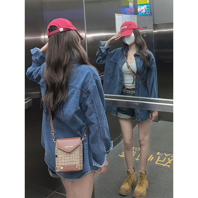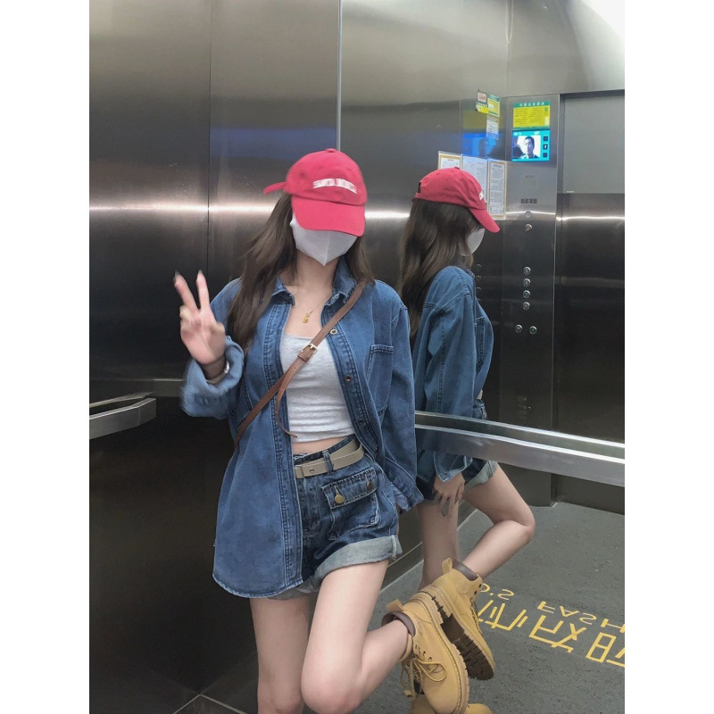 미국 복고풍 데님 셔츠 재킷 여성의 이른 봄 옷 작은 홍콩 스타일 셔츠 디자인 틈새 캐주얼 탑스토어 가기