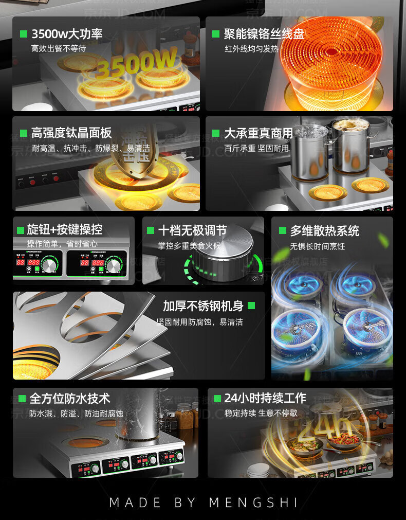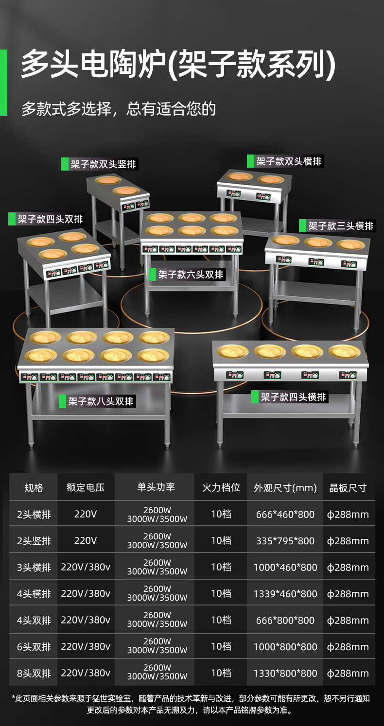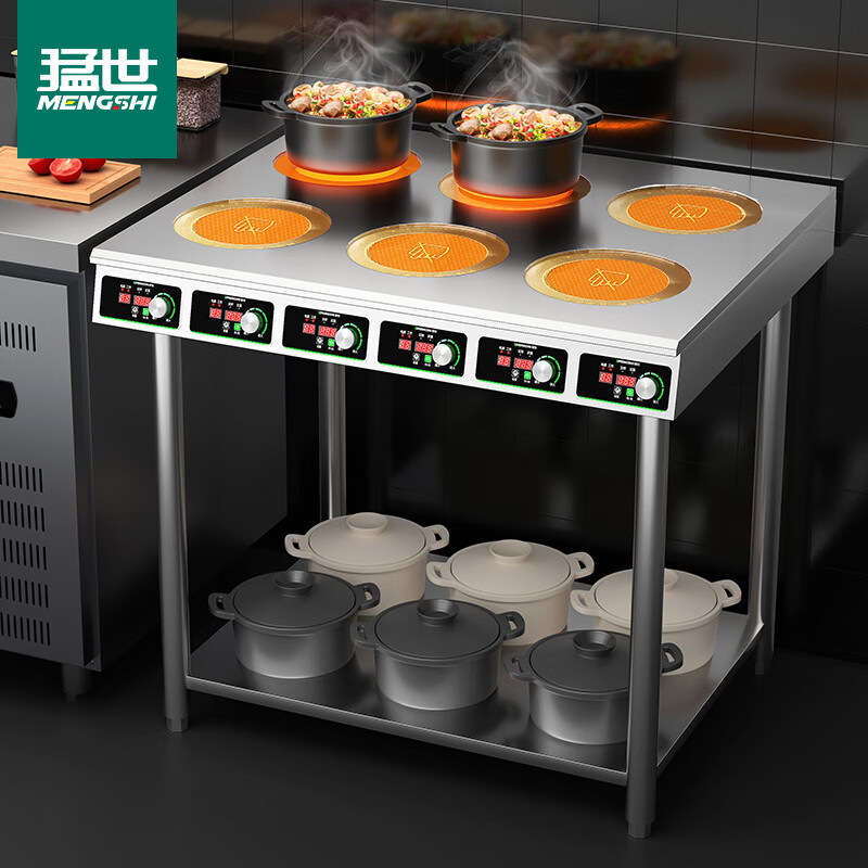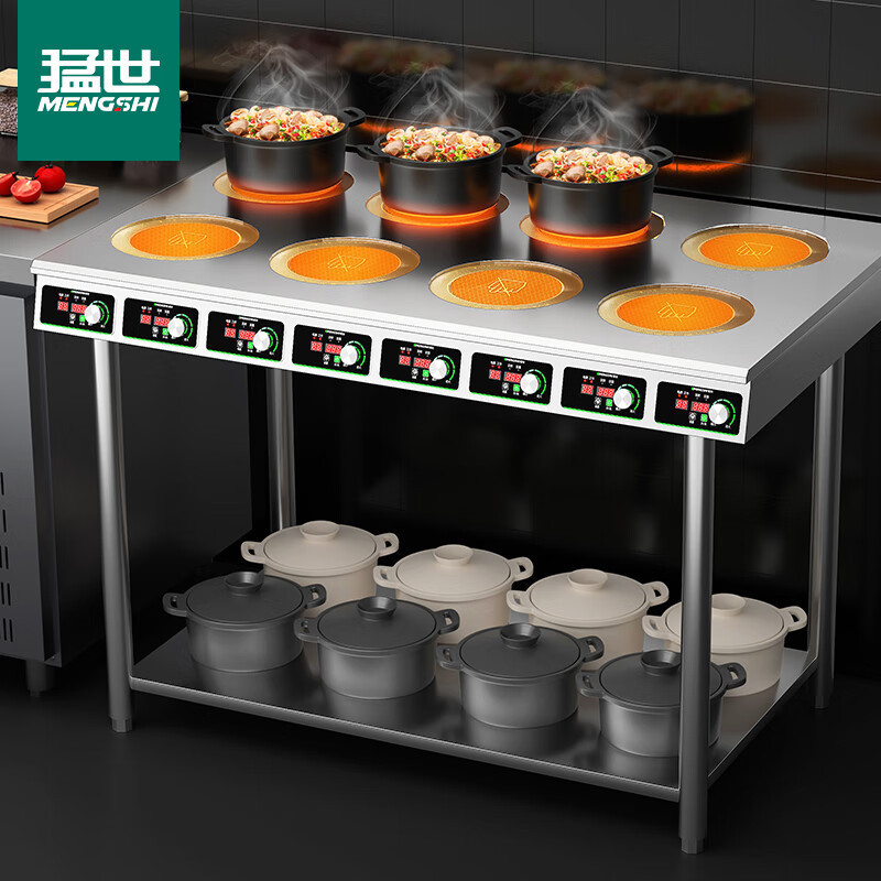 Mengshi 상업용 전기 세라믹 스토브 멀티 헤드 더블 로우 8 아이 케이크 스토브 Malatang 다이닝 홀 전기 스토브 전기 스토브 스테인레스 스틸스토어 가기