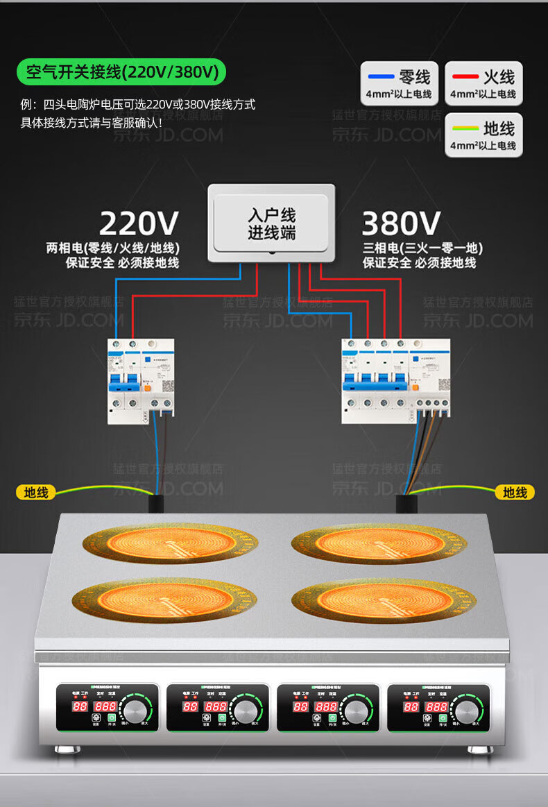 • 수평형 4개 헤드 전기 세라믹 스토브 | 브래킷 유형 | 220/380V