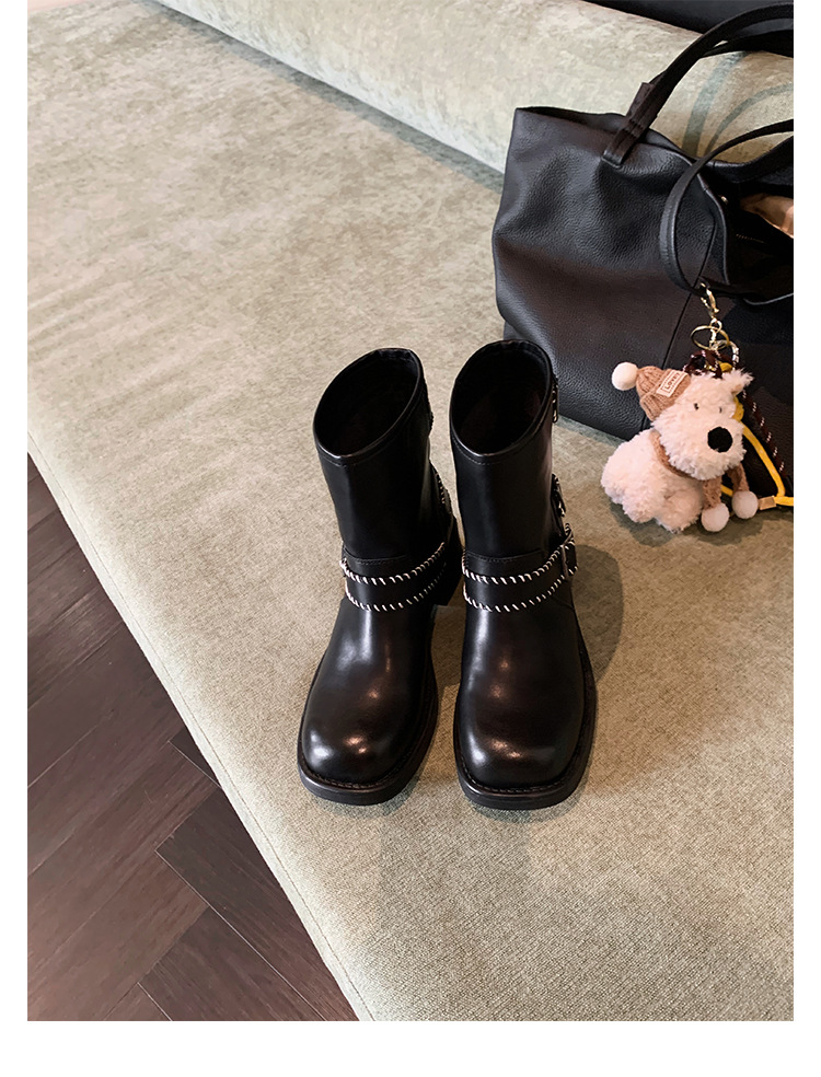 재고 있음 복고풍 캐주얼 다목적 색상 연마 벨트 버클 오래된 두꺼운 굽 오토바이 영국 스타일 짧은 부츠 여성을위한 새로운 스타일스토어 가기