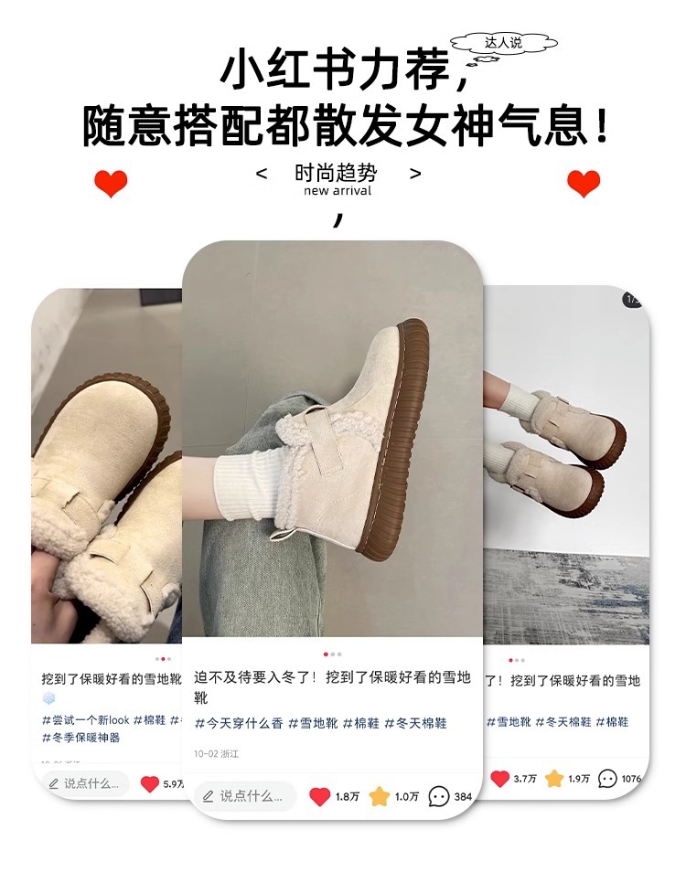 귀여운 기모 따뜻한 두꺼운 바닥 스노우 부츠 2024 겨울 새 버켄 코튼 슈즈 여성 아웃웨어 한국식 학생면 부츠스토어 가기