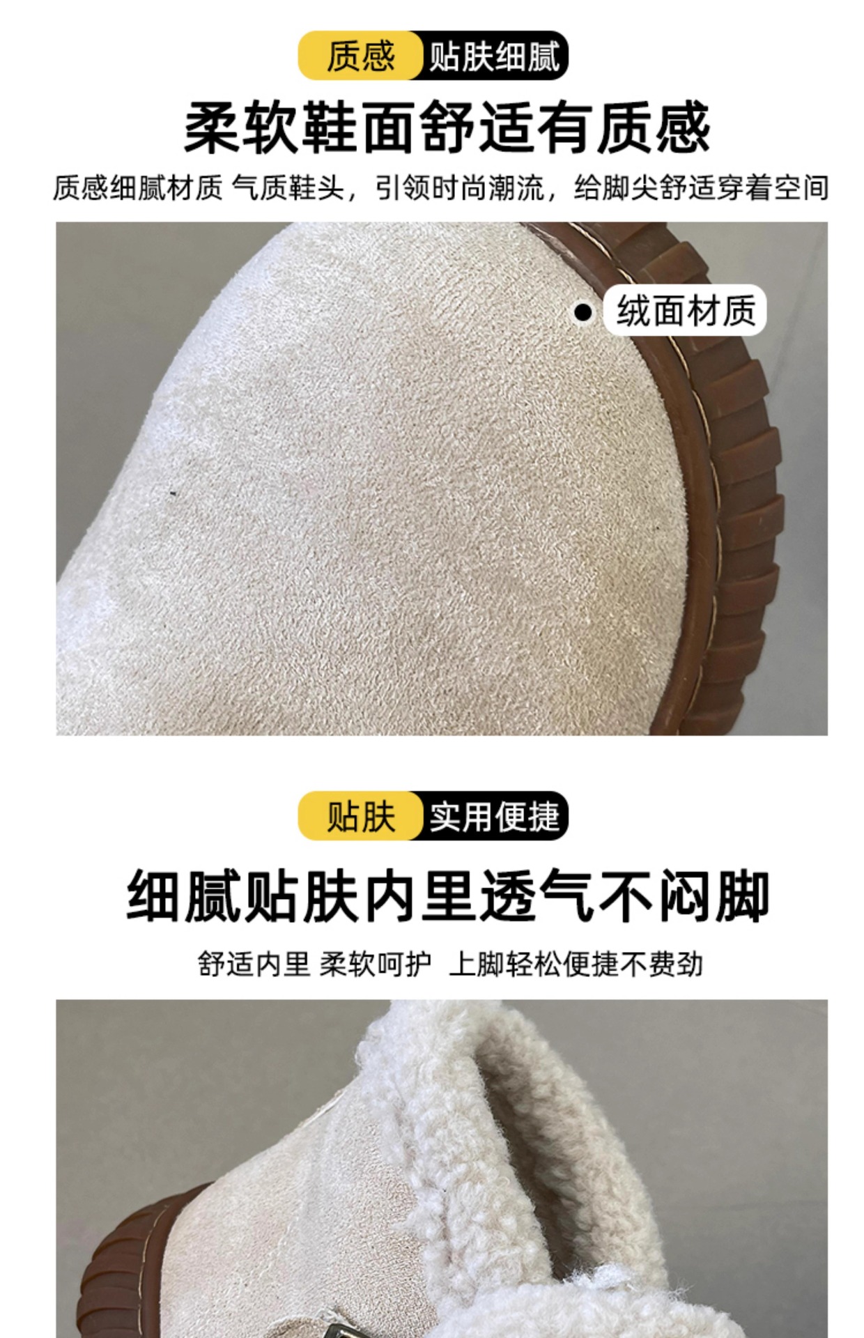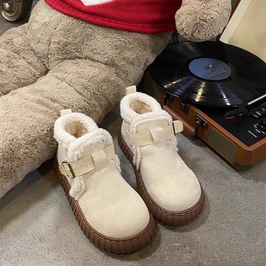 귀여운 기모 따뜻한 두꺼운 바닥 스노우 부츠 2024 겨울 새 버켄 코튼 슈즈 여성 아웃웨어 한국식 학생면 부츠