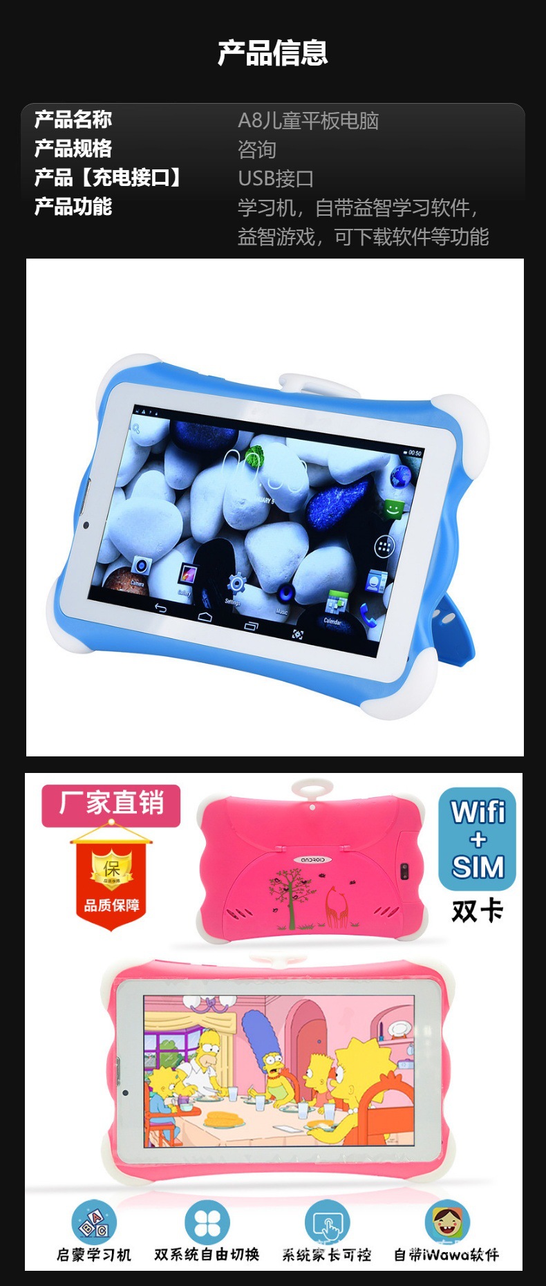 남미에서 인기 있는 듀얼 SIM 통화 기능 어린이용 스마트 학습 태블릿, 구글 스토어, 고화질 화면, 3G스토어 가기