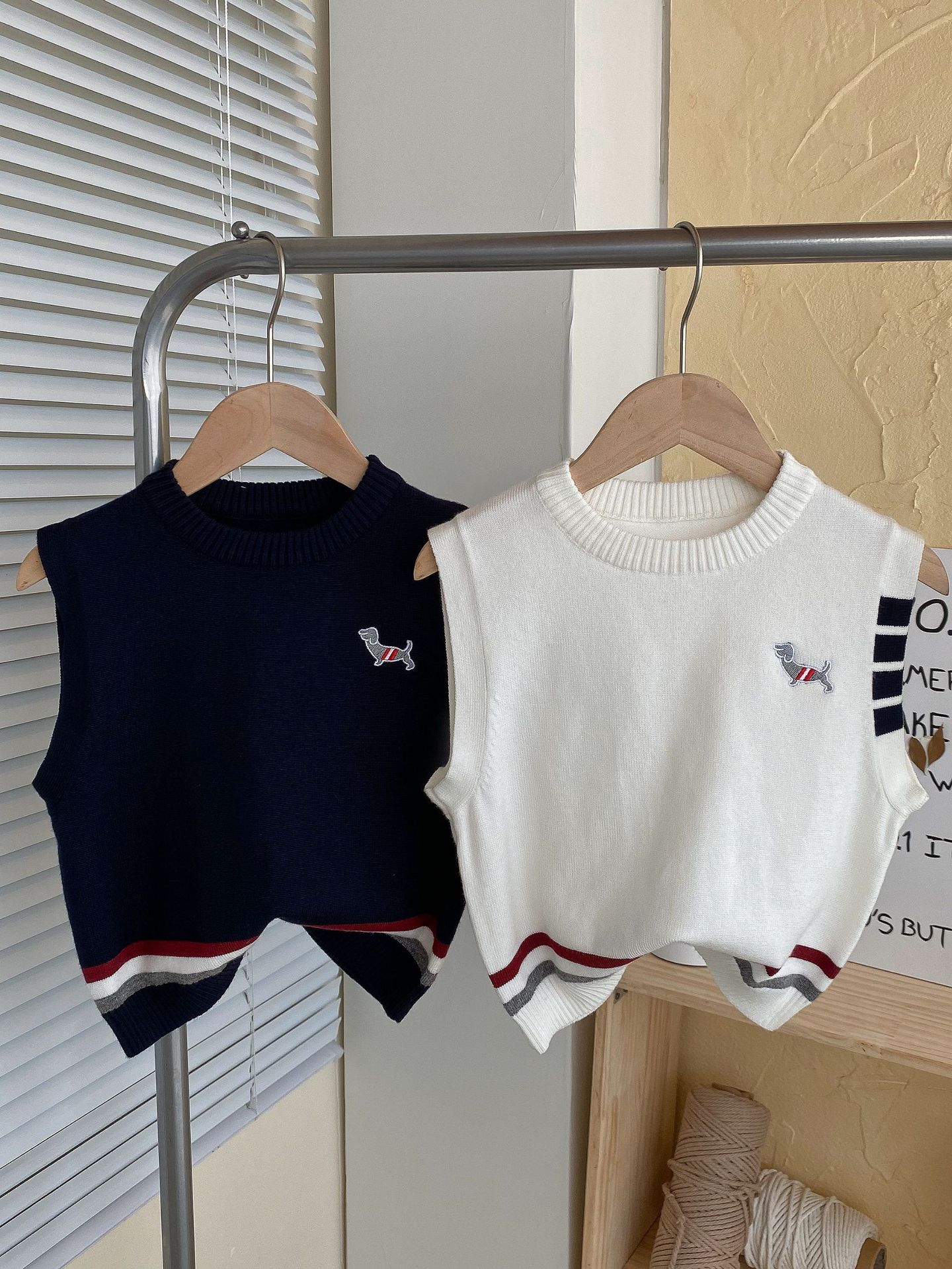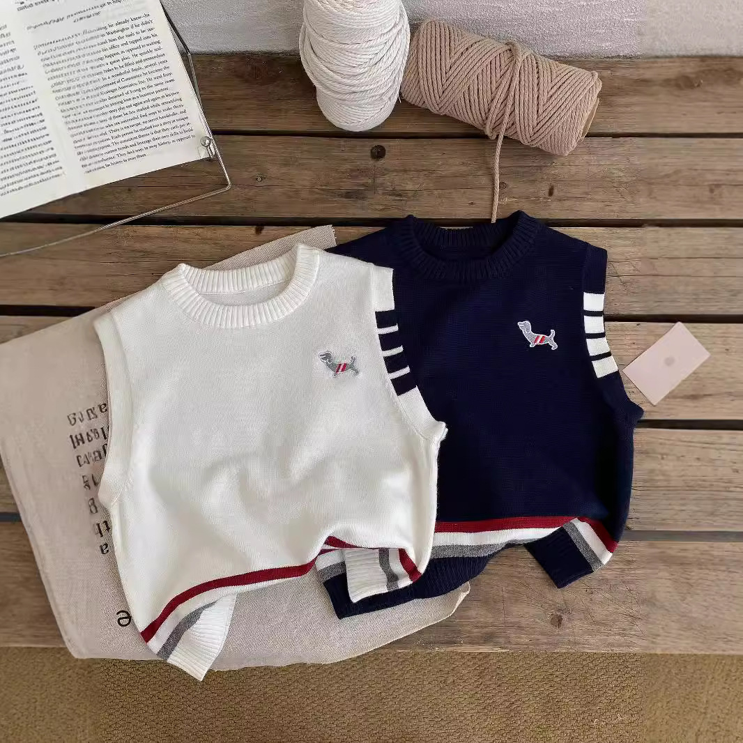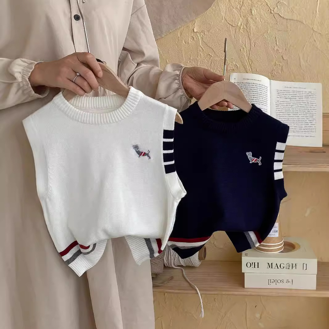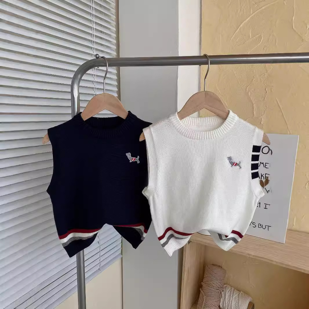 어린이 조끼 2024 새로운 가을 겨울 소년과 소녀 어린이 니트 조끼 외부 착용 슈퍼 니스 스웨터 아동복스토어 가기