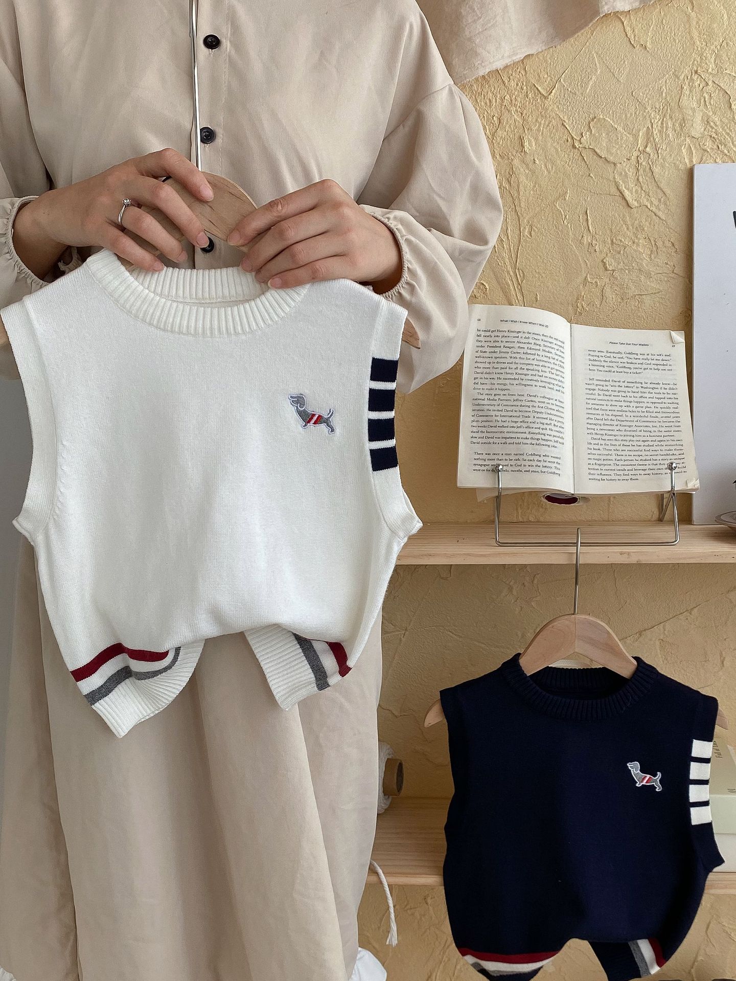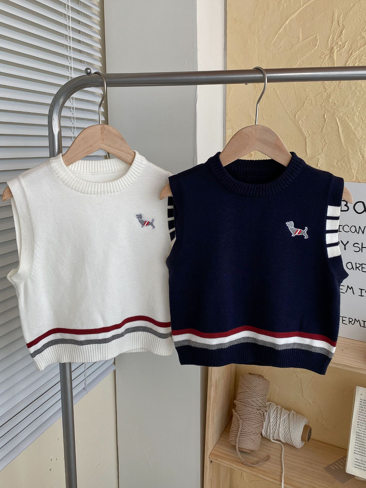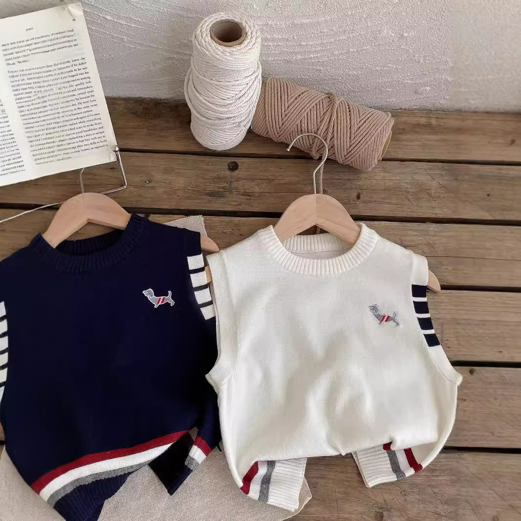 어린이 조끼 2024 새로운 가을 겨울 소년과 소녀 어린이 니트 조끼 외부 착용 슈퍼 니스 스웨터 아동복스토어 가기