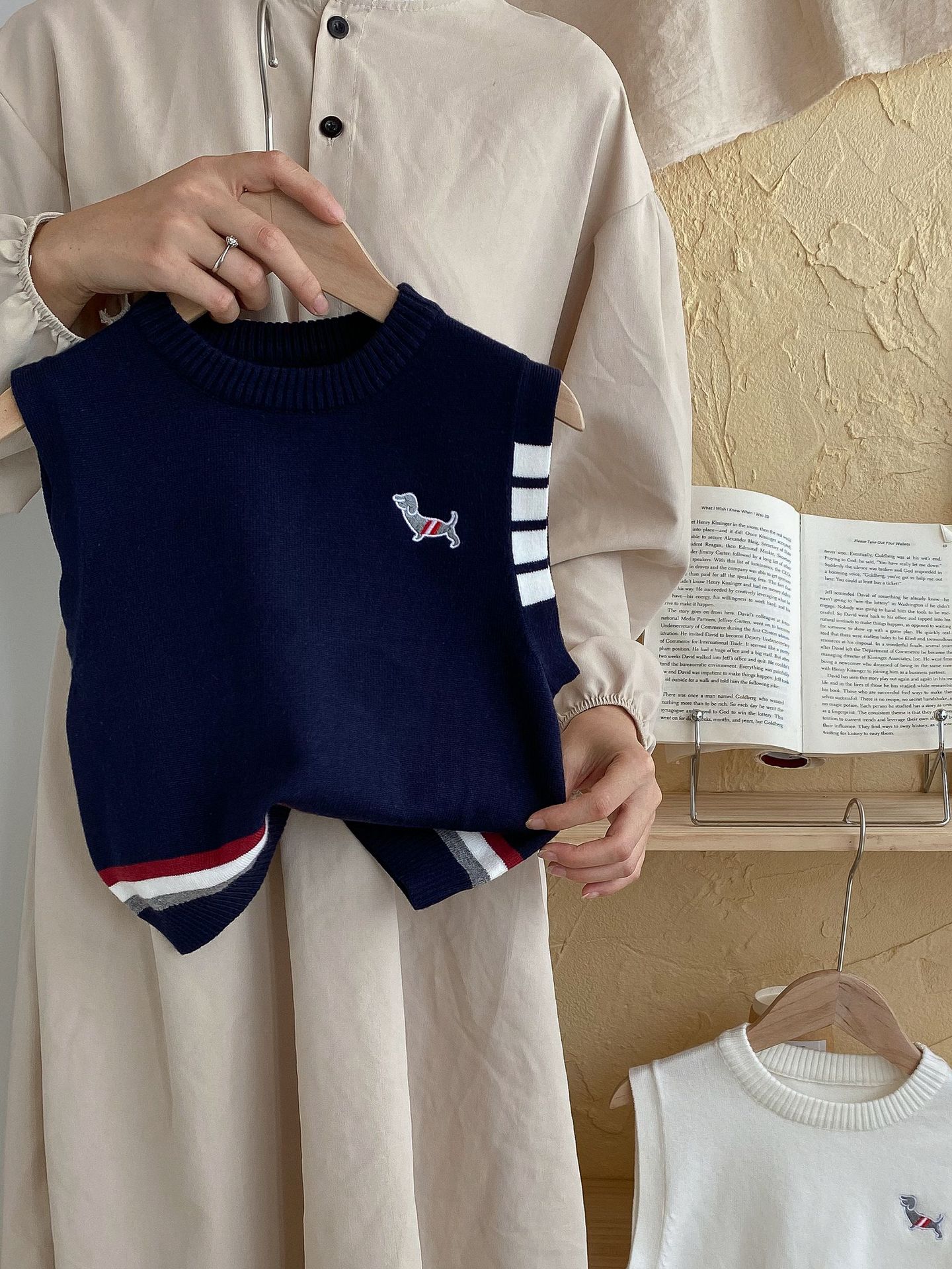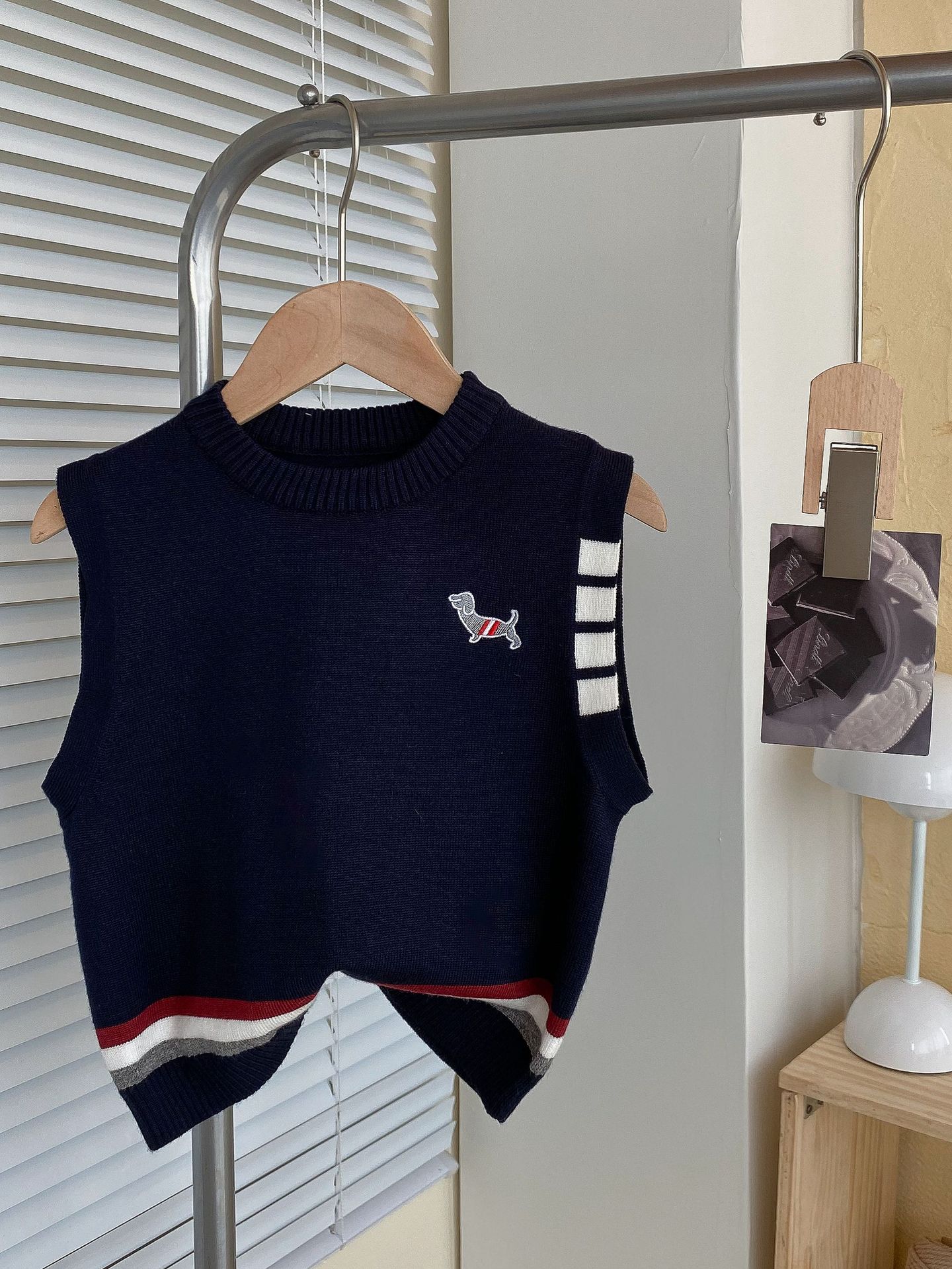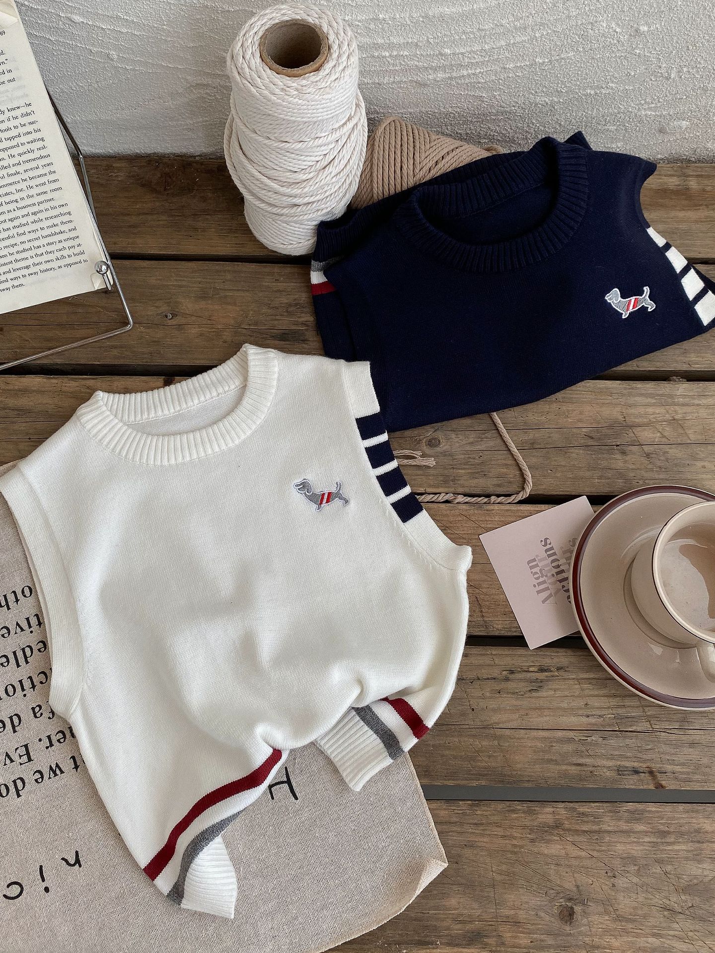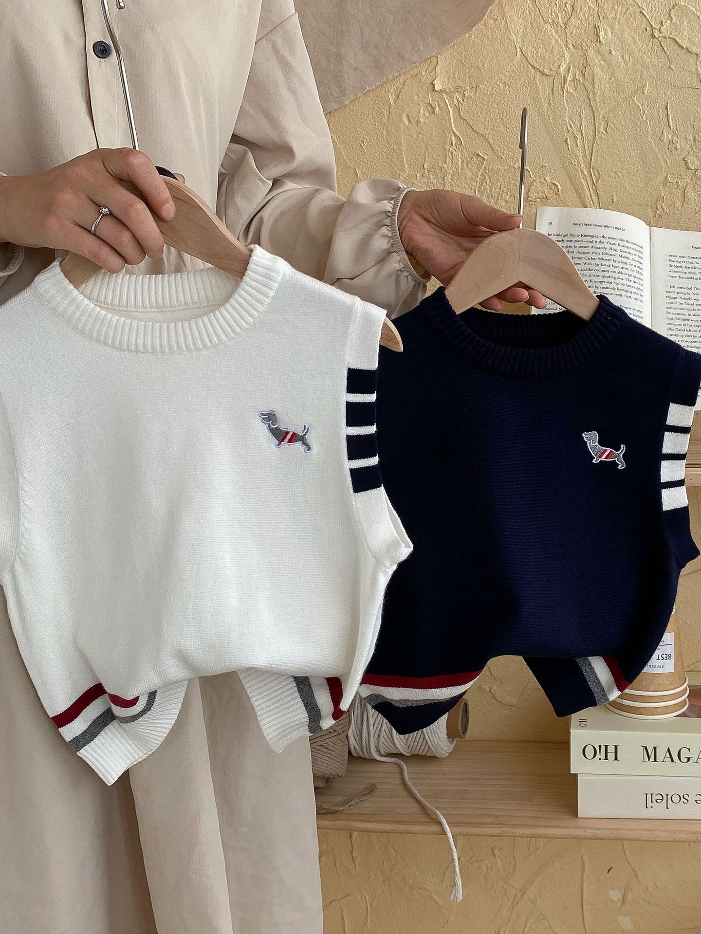 어린이 조끼 2024 새로운 가을 겨울 소년과 소녀 어린이 니트 조끼 외부 착용 슈퍼 니스 스웨터 아동복스토어 가기