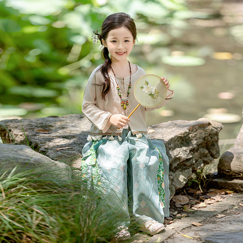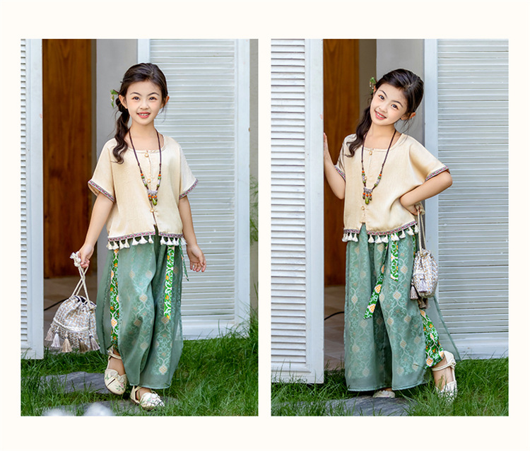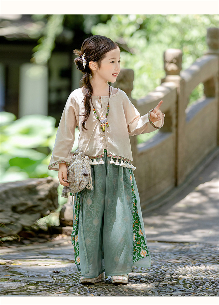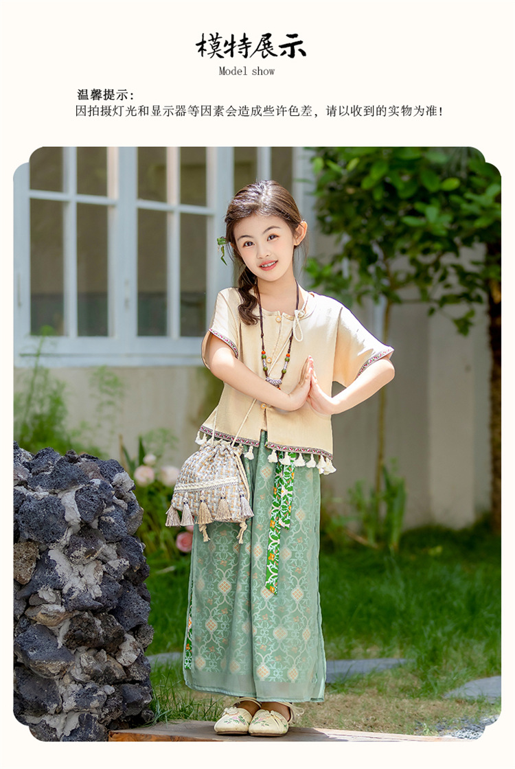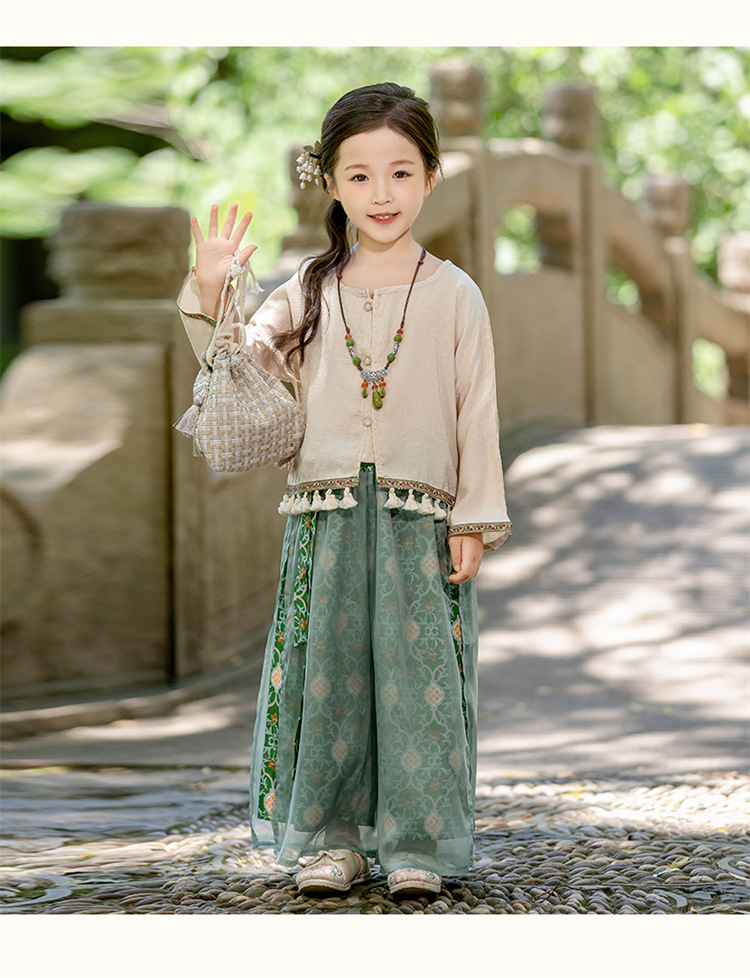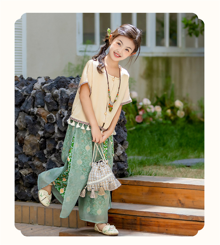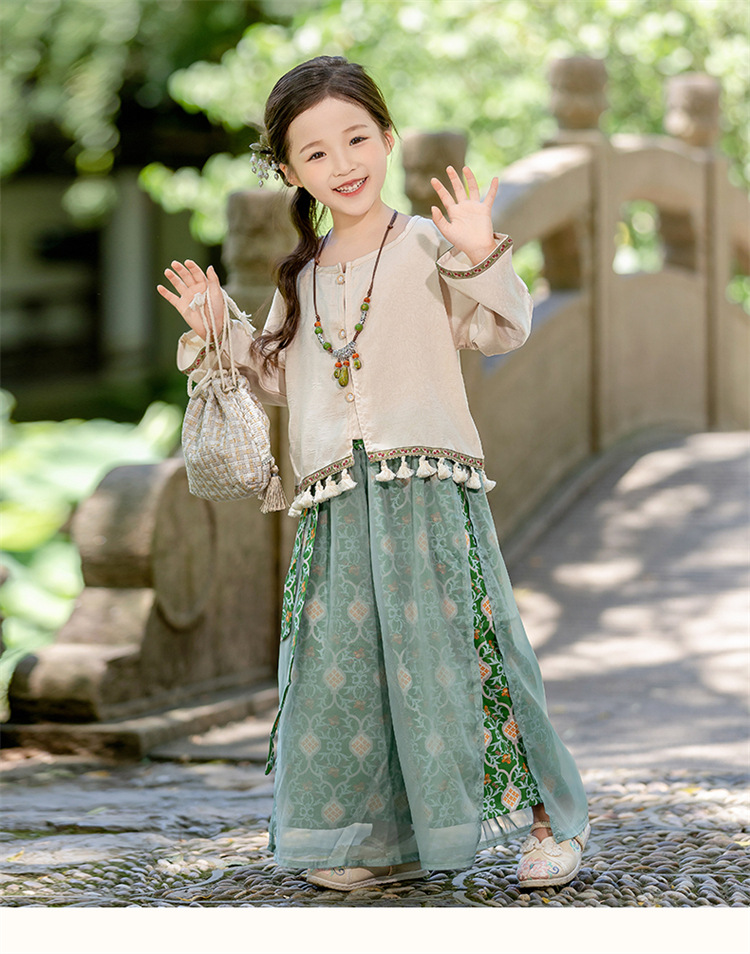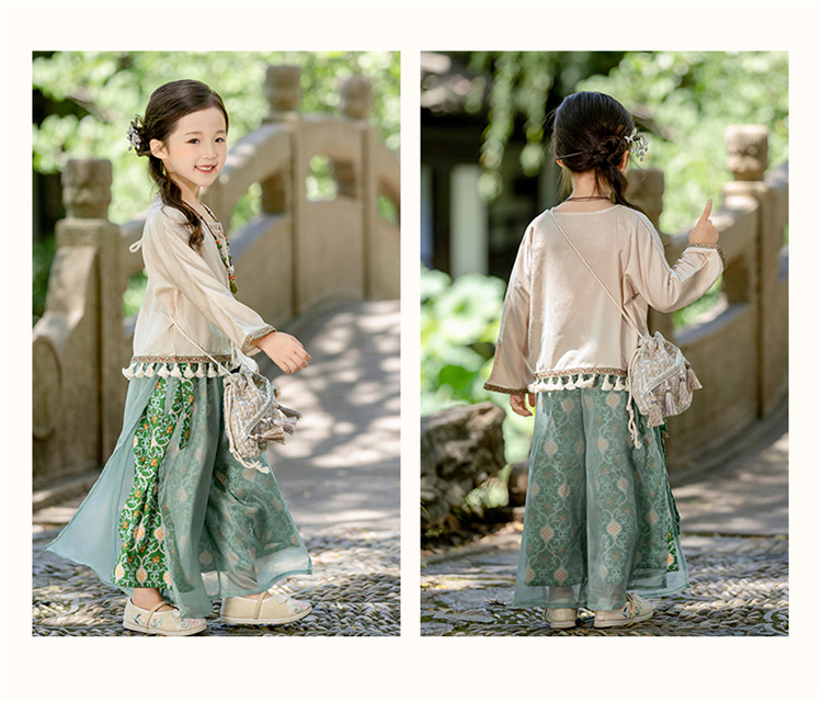 가을 어린이 국가 의류 국가 패션 복고풍 서양식 투피스 여성 의상 세트 만든 국가 스타일 한푸 소녀