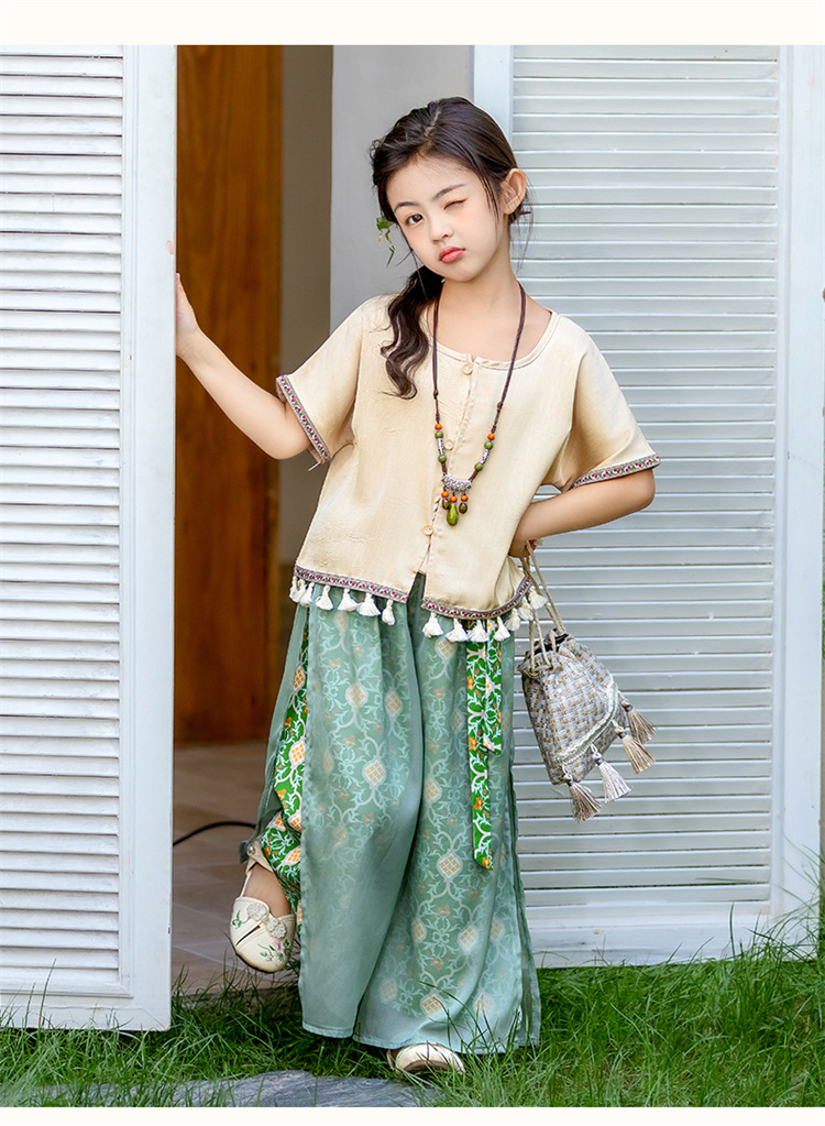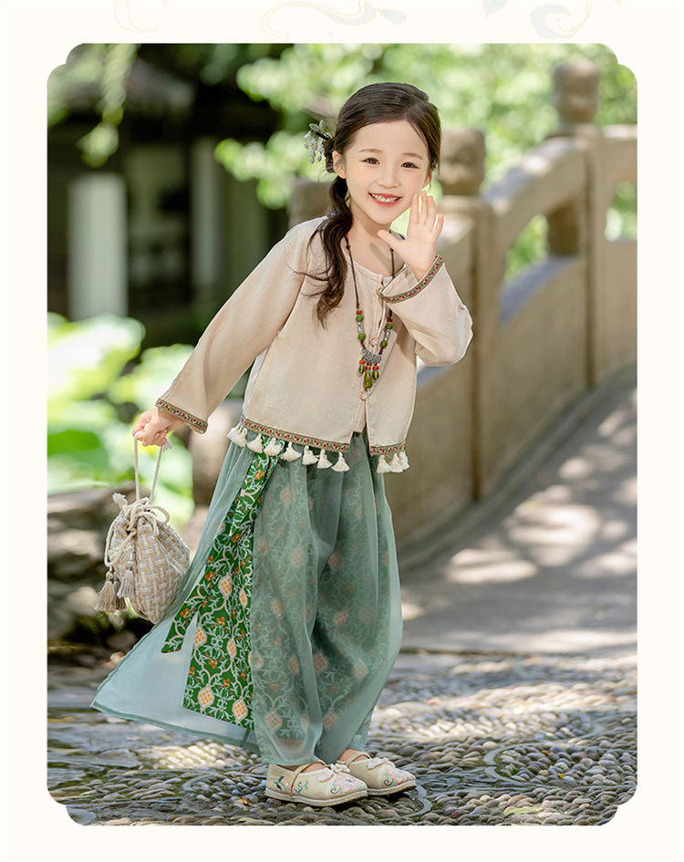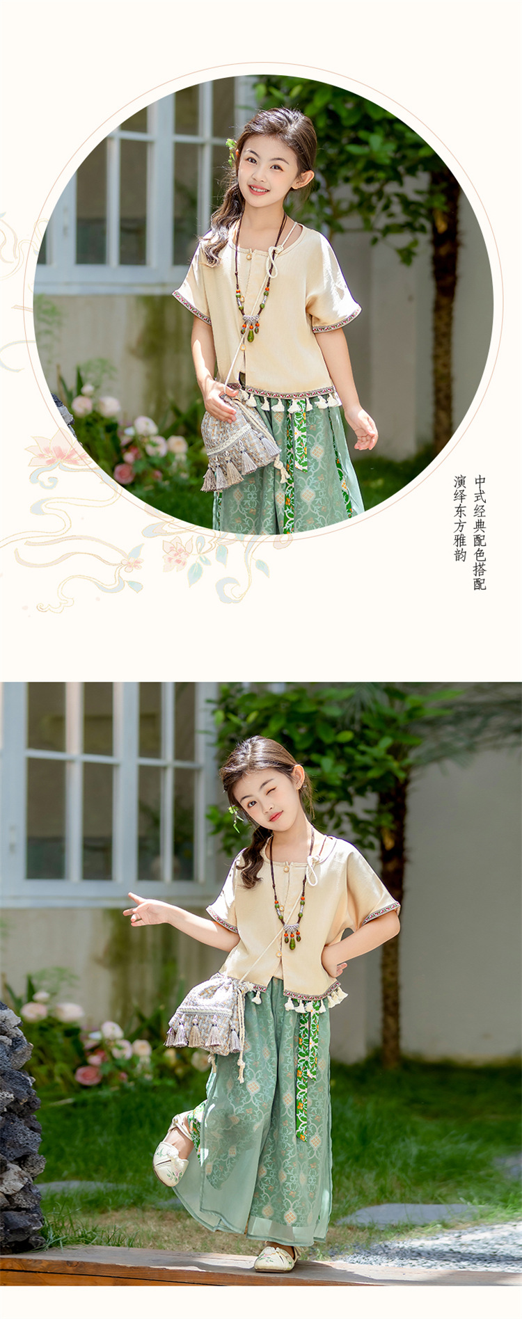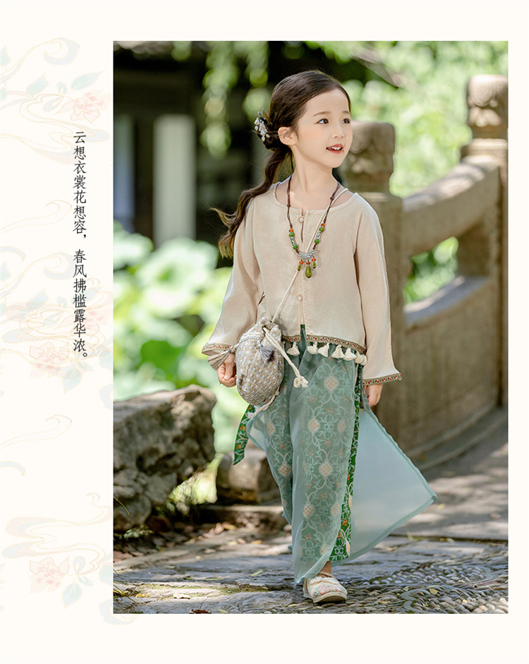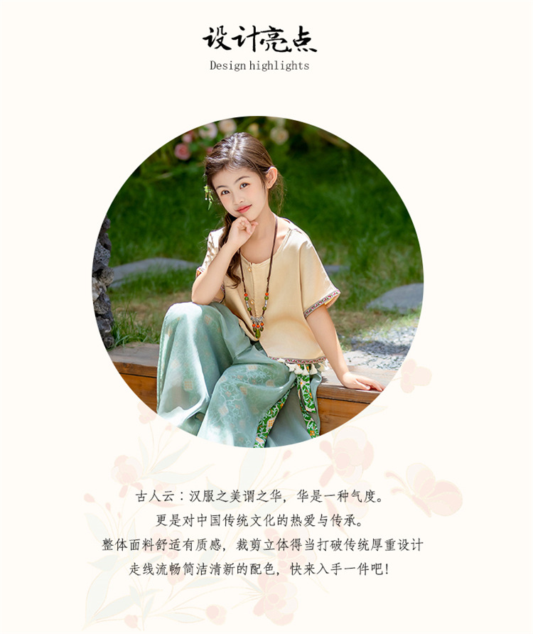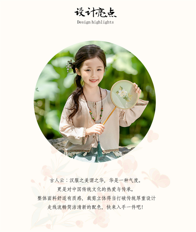 가을 어린이 국가 의류 국가 패션 복고풍 서양식 투피스 여성 의상 세트 만든 국가 스타일 한푸 소녀