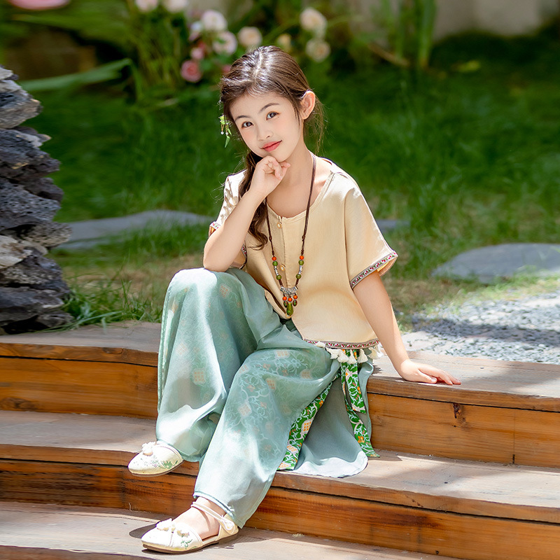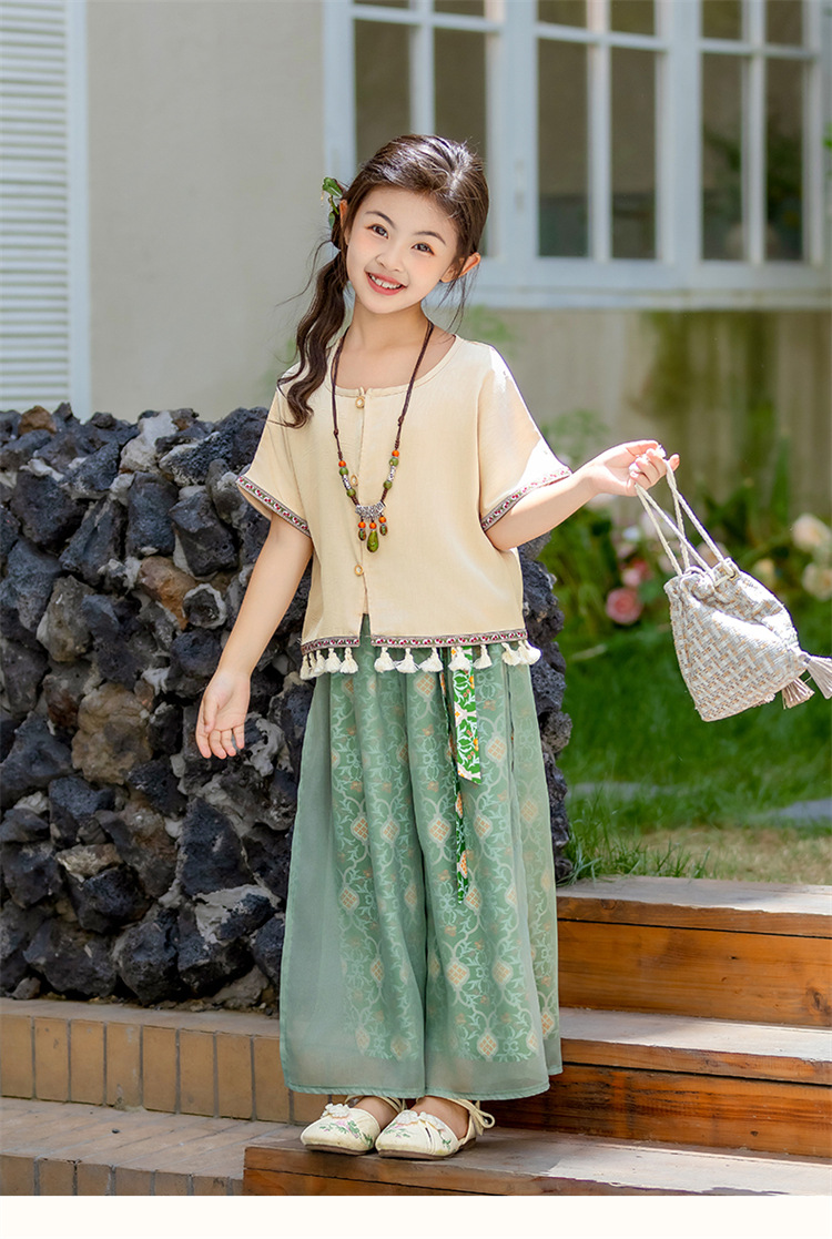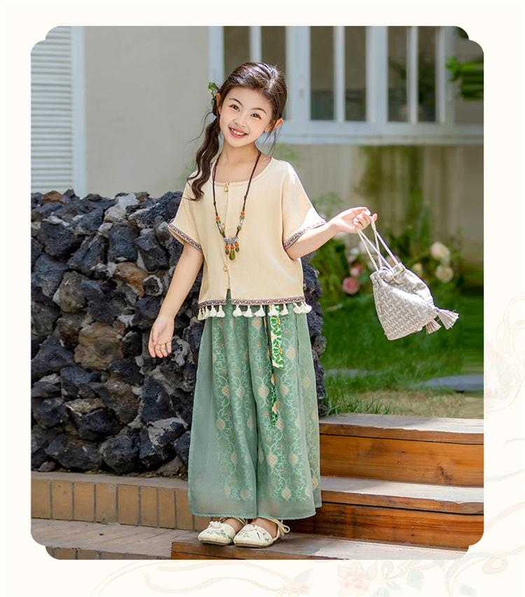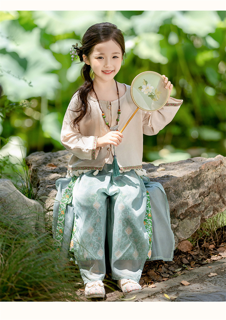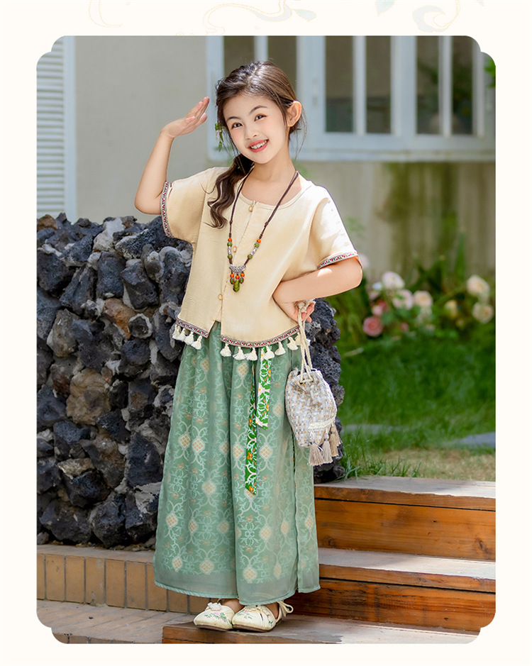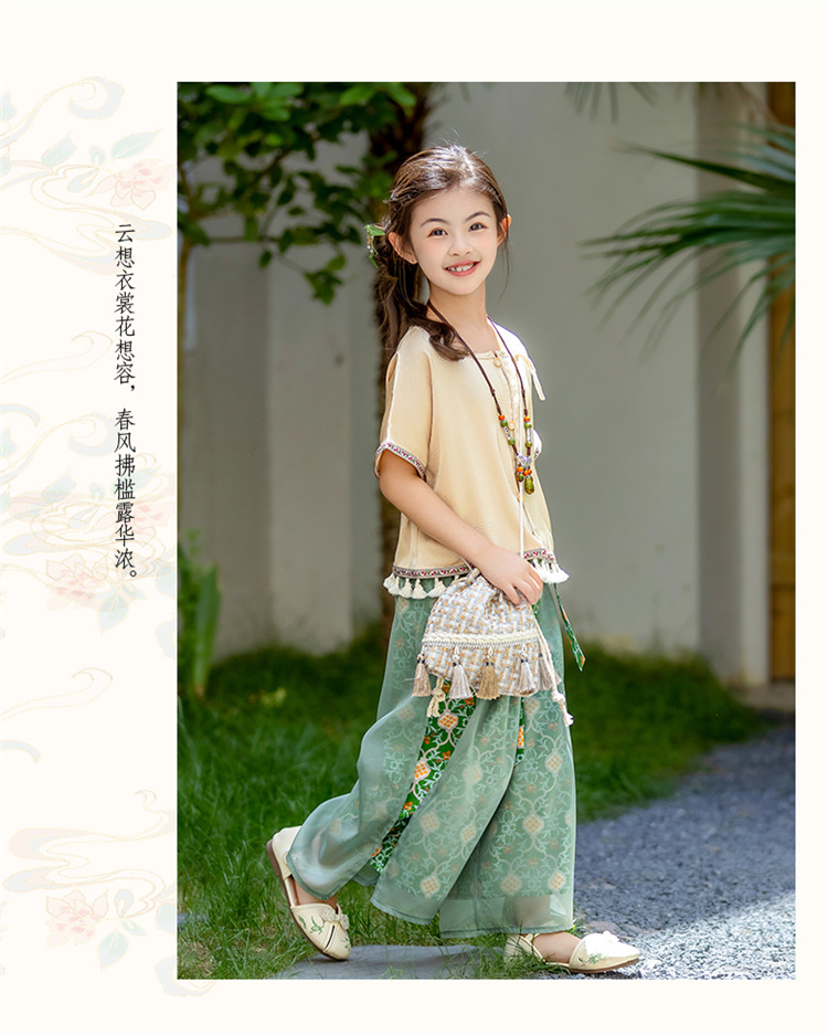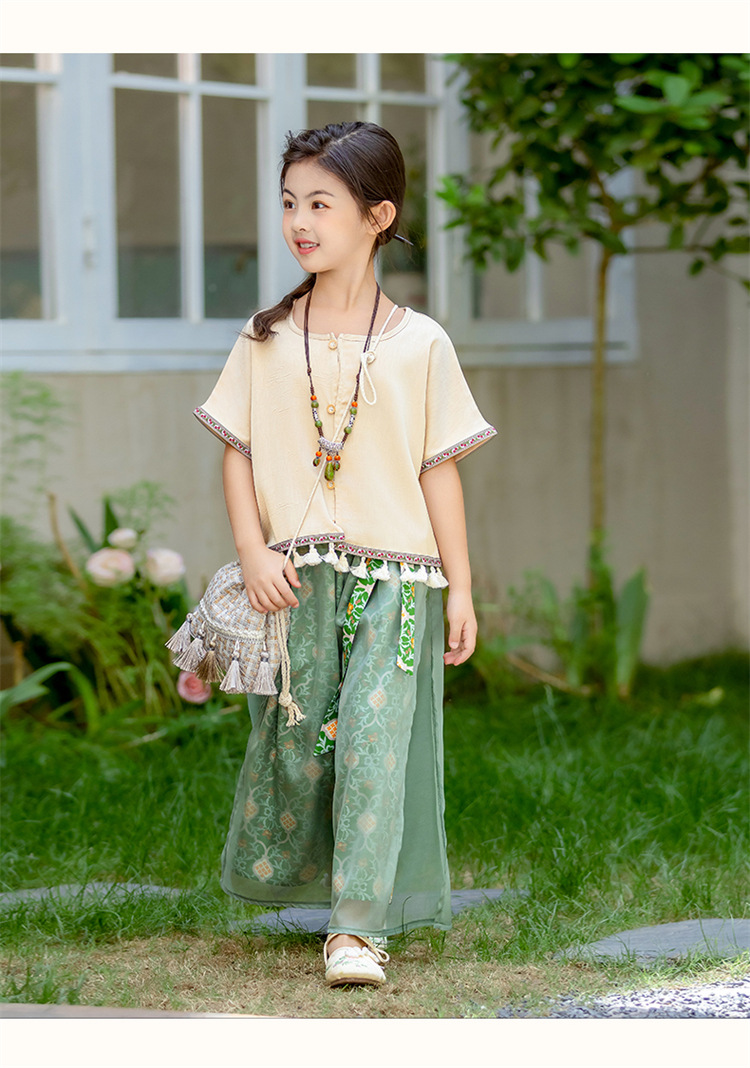 가을 어린이 국가 의류 국가 패션 복고풍 서양식 투피스 여성 의상 세트 만든 국가 스타일 한푸 소녀