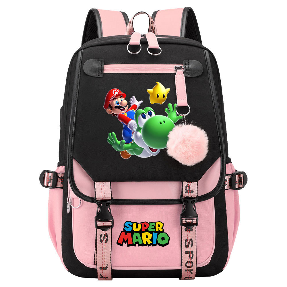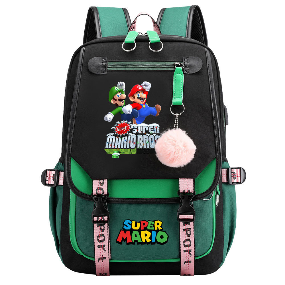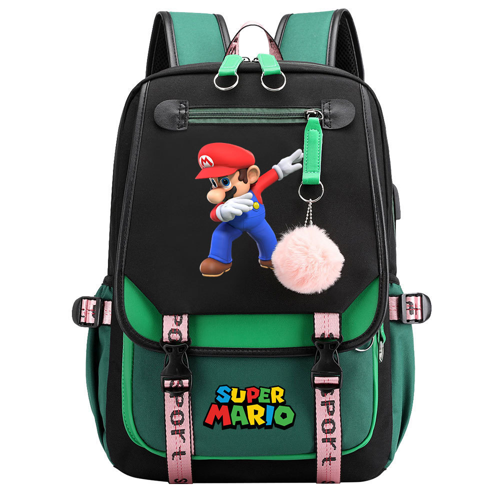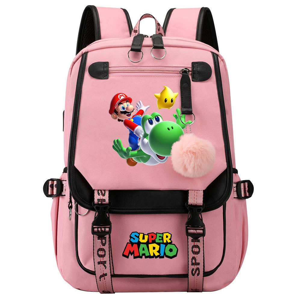 뜨거운 판매 슈퍼 마리오 인쇄 USB 십대 학생 스쿨 백 유니섹스 캐주얼 리본 플립 백팩
