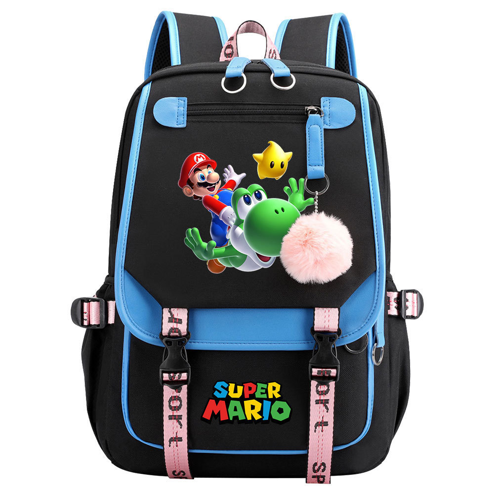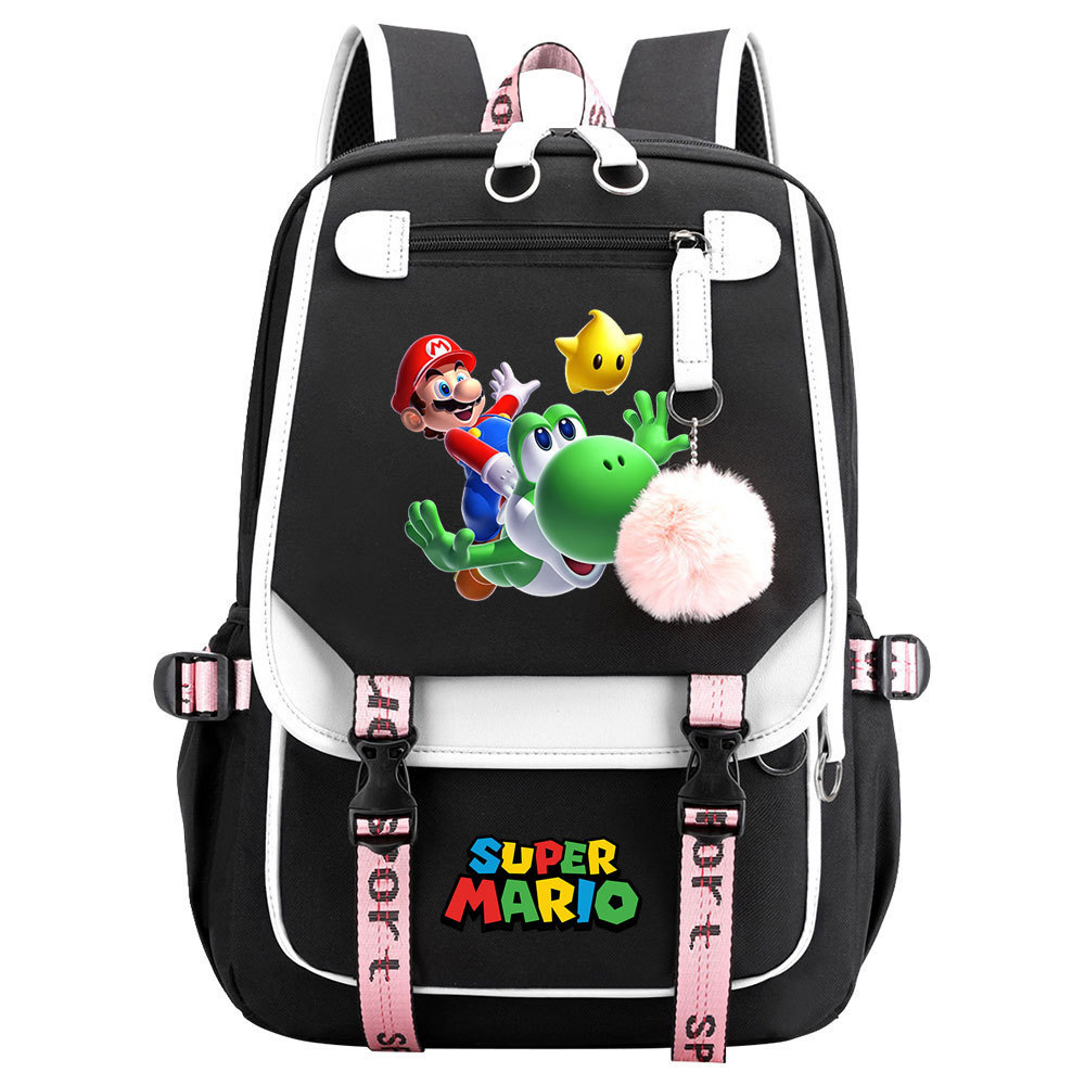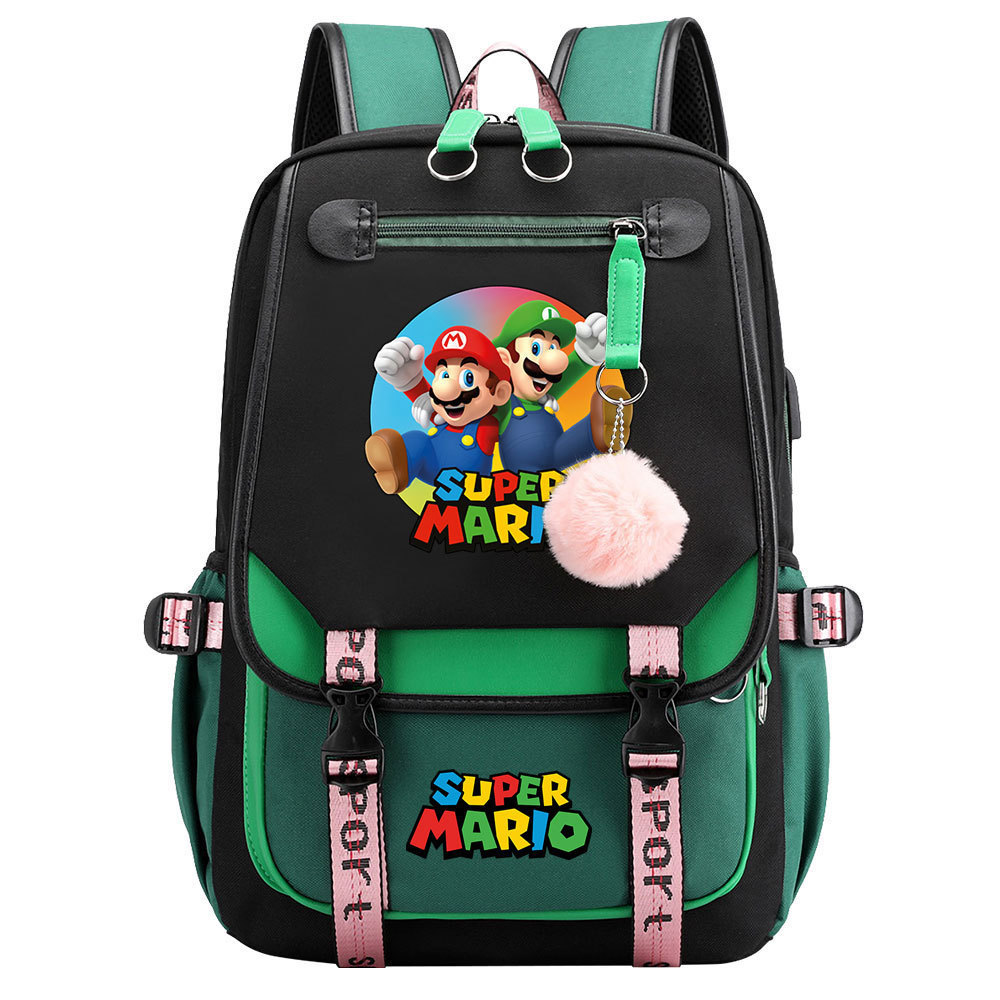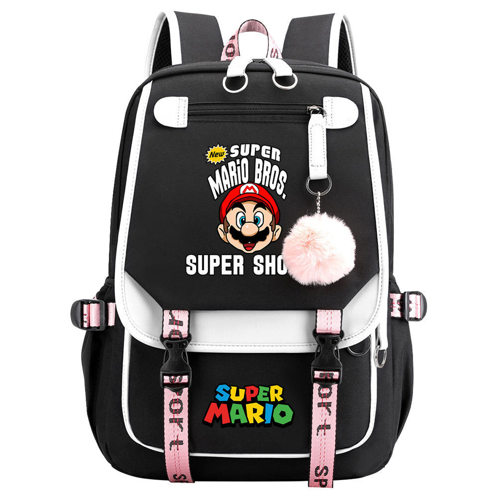 뜨거운 판매 슈퍼 마리오 인쇄 USB 십대 학생 스쿨 백 유니섹스 캐주얼 리본 플립 백팩