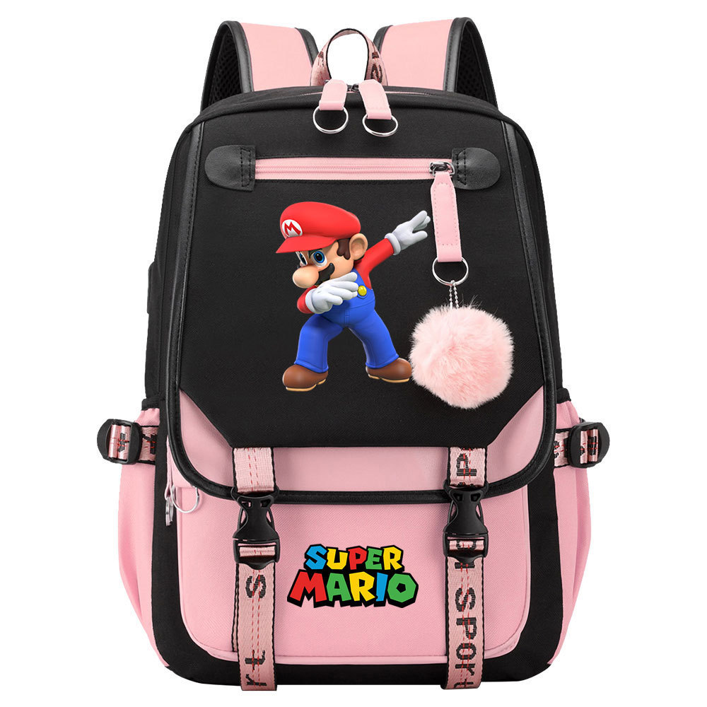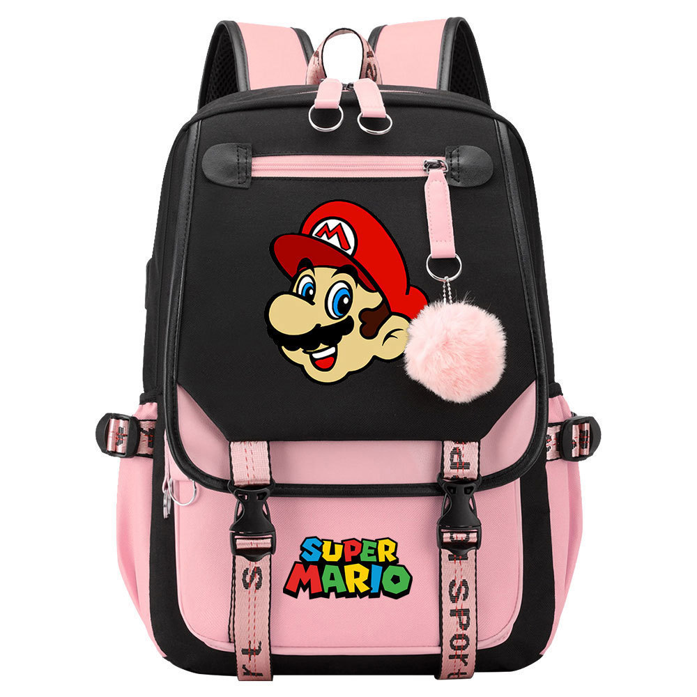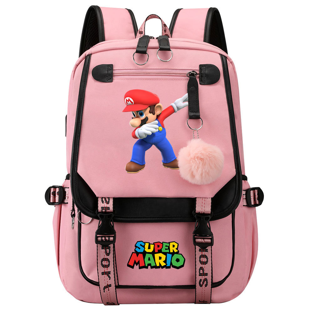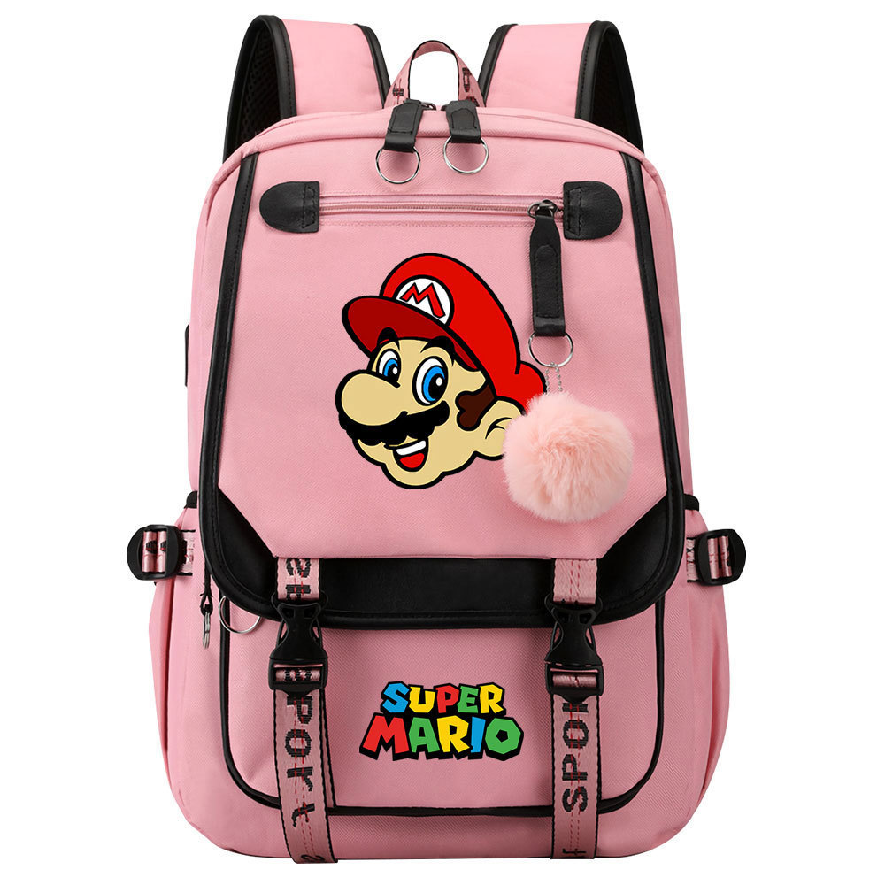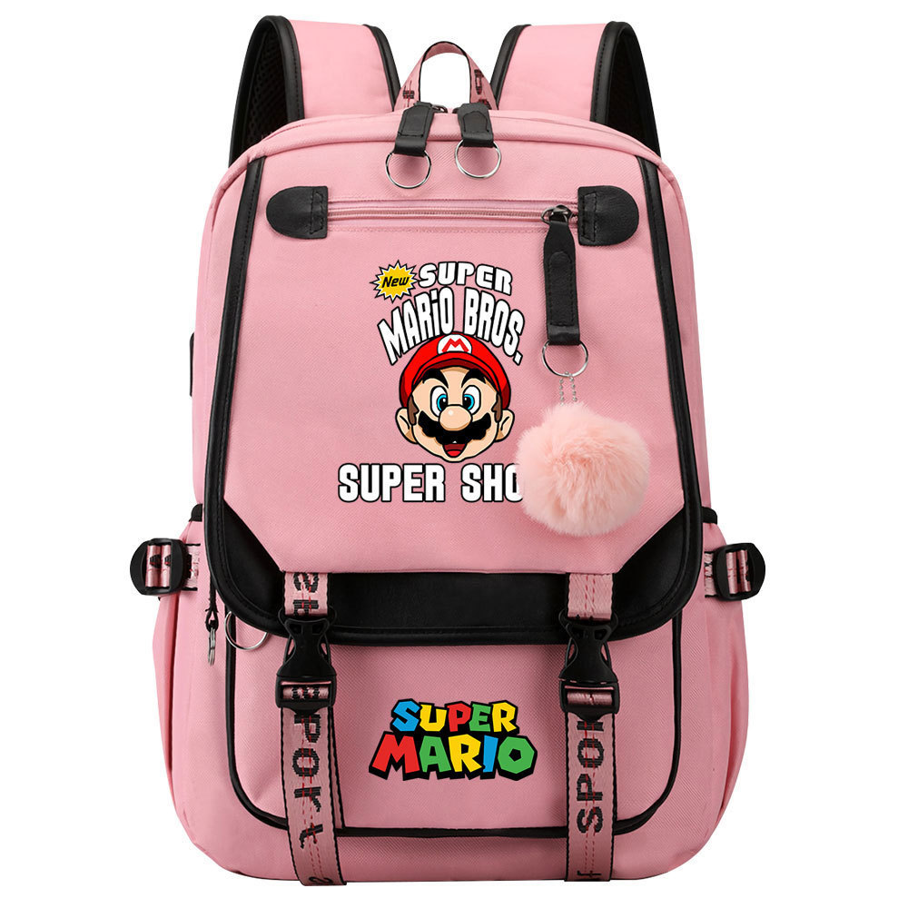 뜨거운 판매 슈퍼 마리오 인쇄 USB 십대 학생 스쿨 백 유니섹스 캐주얼 리본 플립 백팩스토어 가기