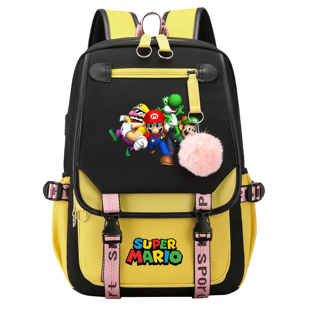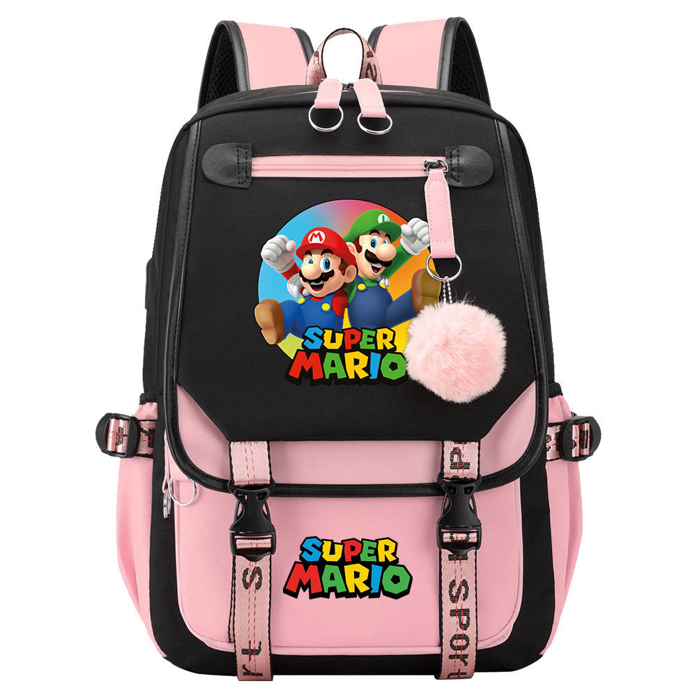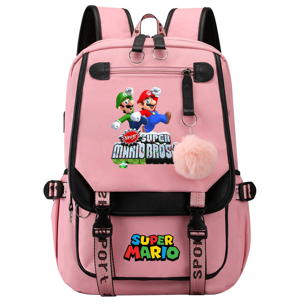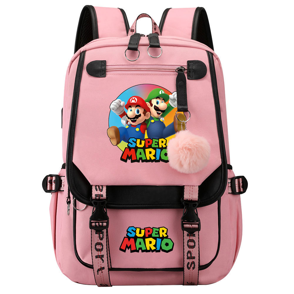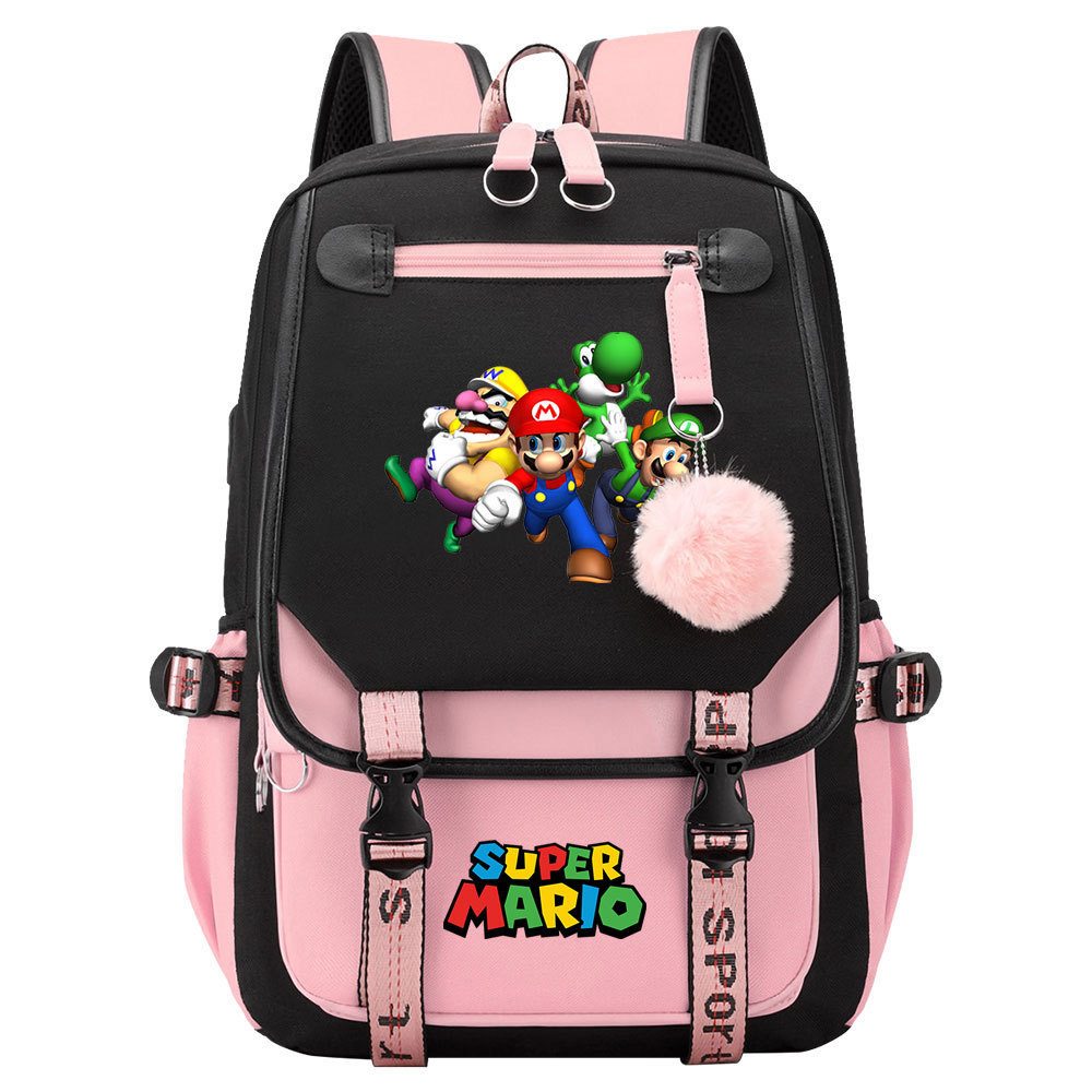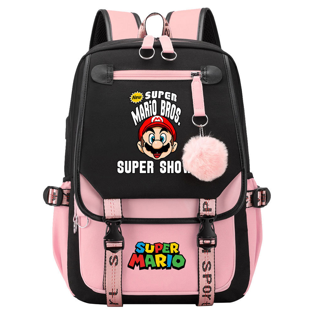 뜨거운 판매 슈퍼 마리오 인쇄 USB 십대 학생 스쿨 백 유니섹스 캐주얼 리본 플립 백팩스토어 가기