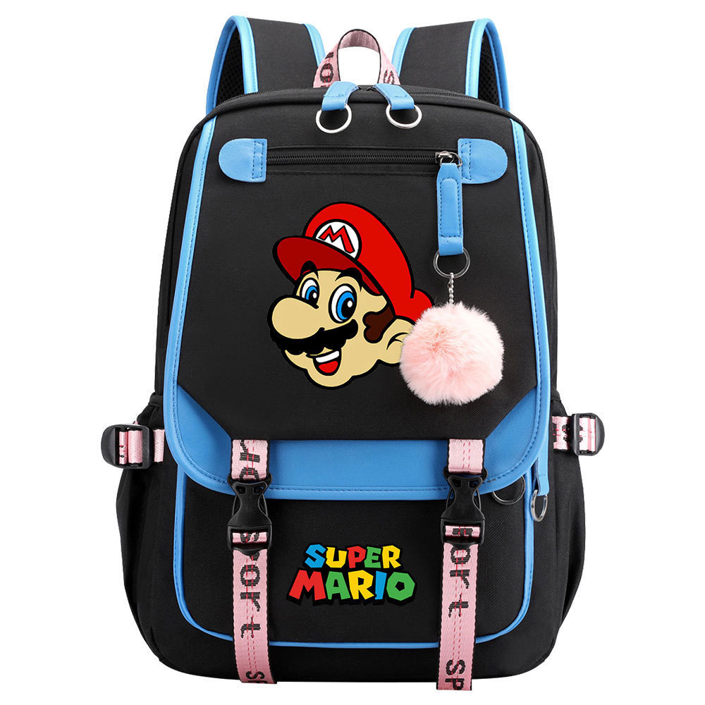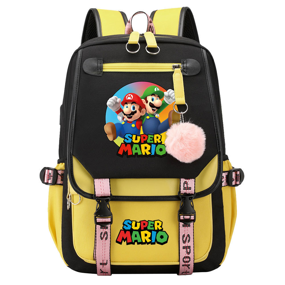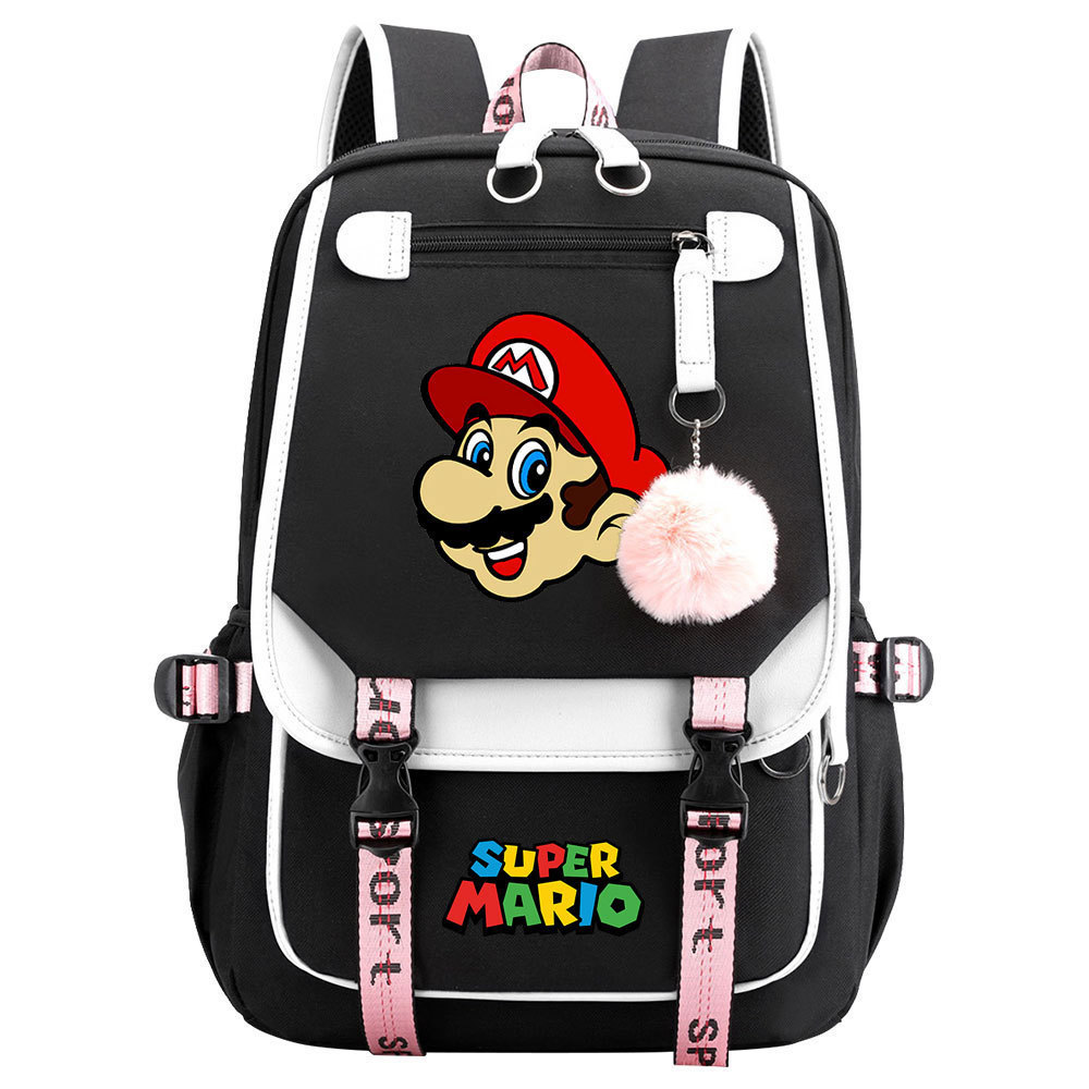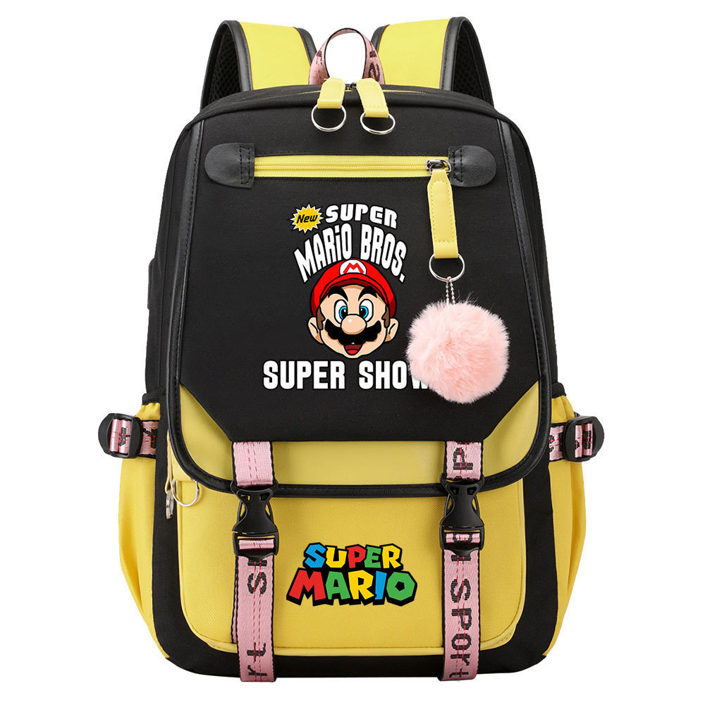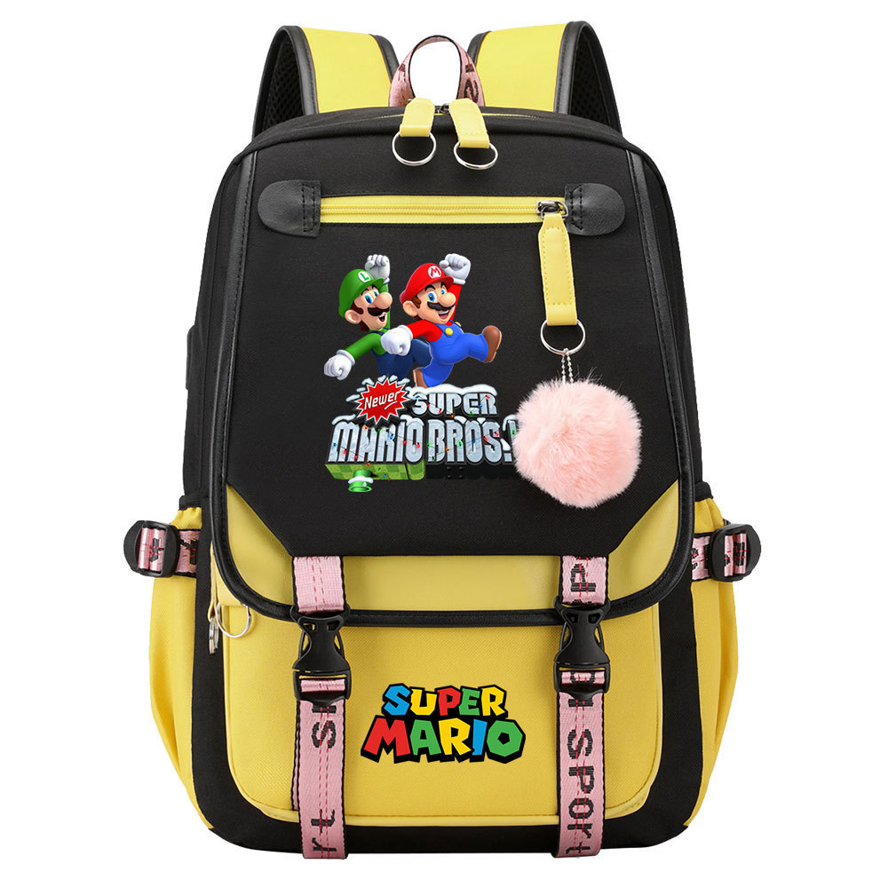 뜨거운 판매 슈퍼 마리오 인쇄 USB 십대 학생 스쿨 백 유니섹스 캐주얼 리본 플립 백팩스토어 가기