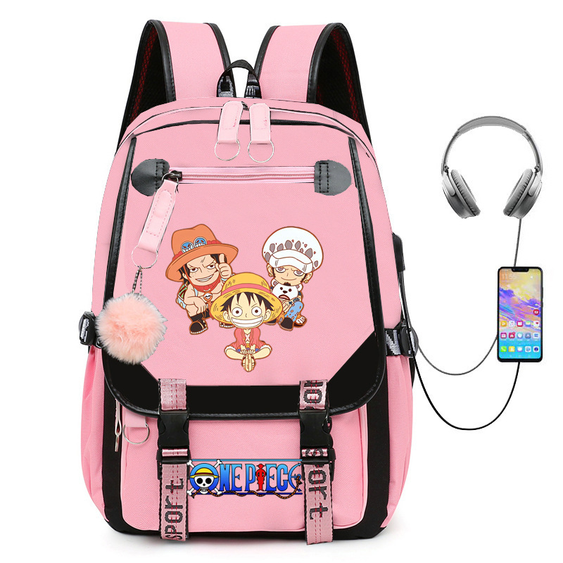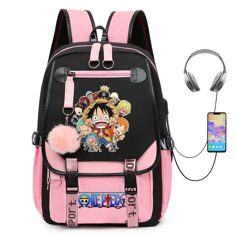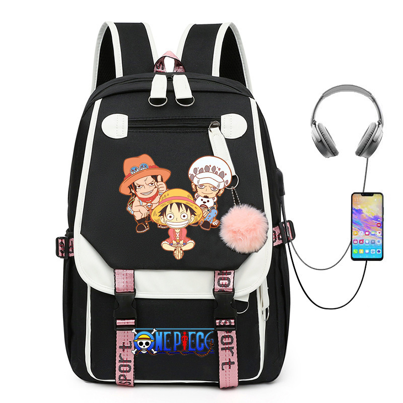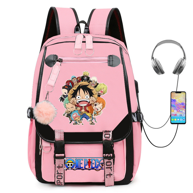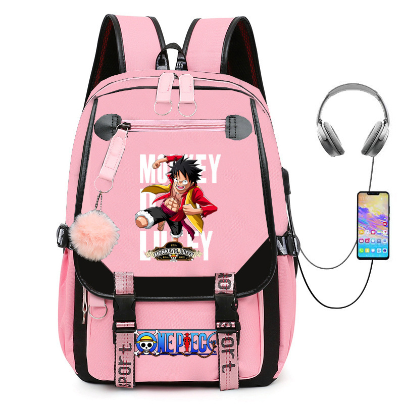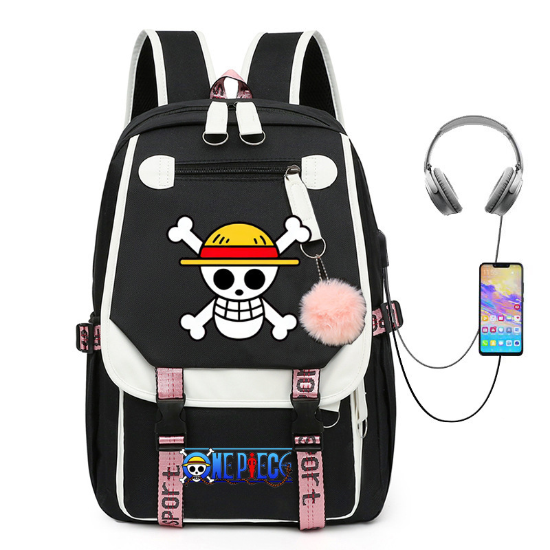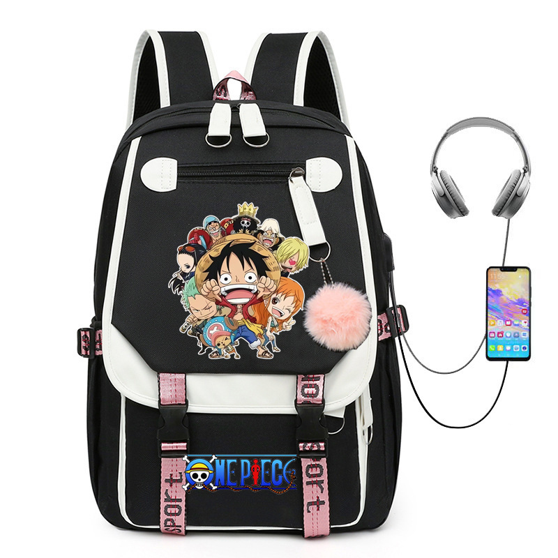 캠퍼스 스타일 대용량 USB 충전 가방 스쿨백 배낭 배낭 원피스 루피 컴퓨터 가방