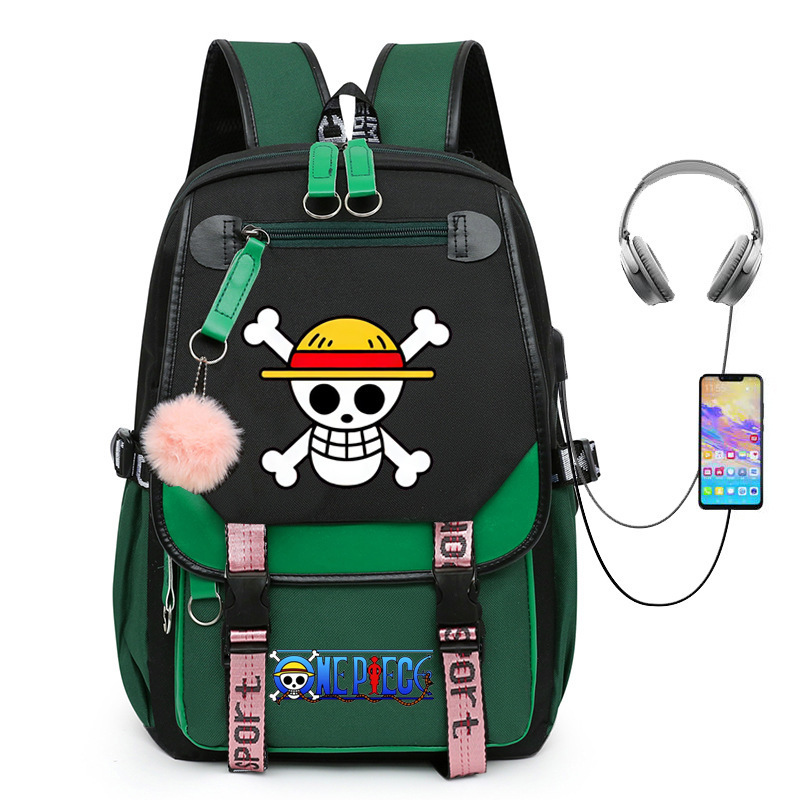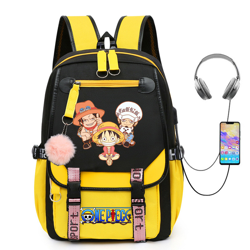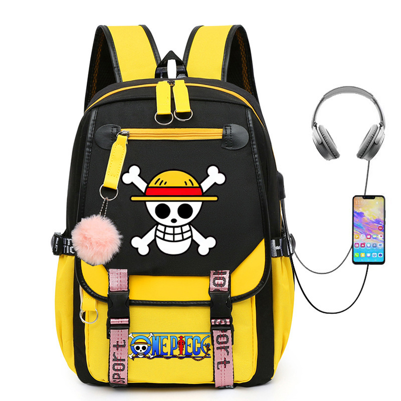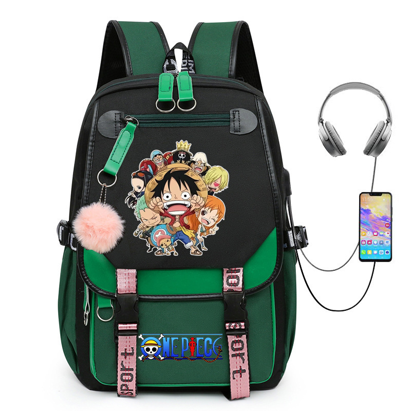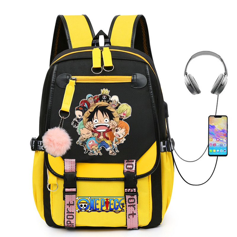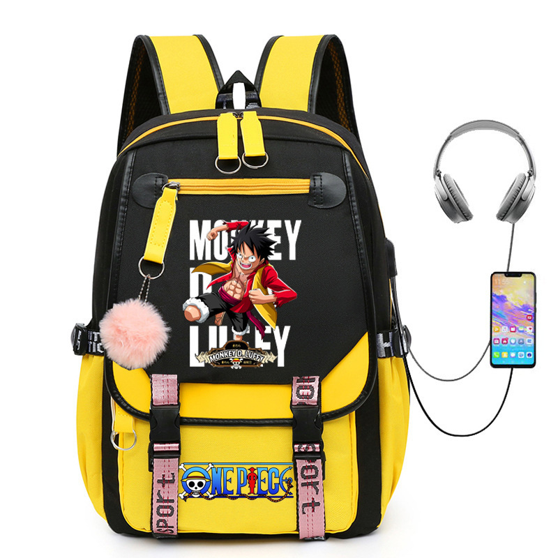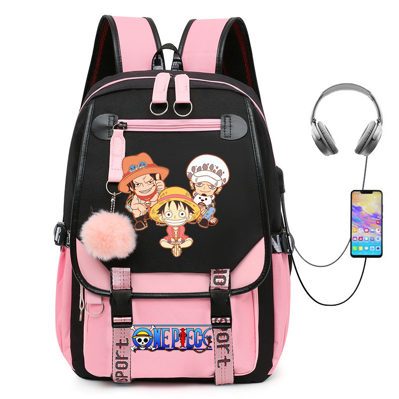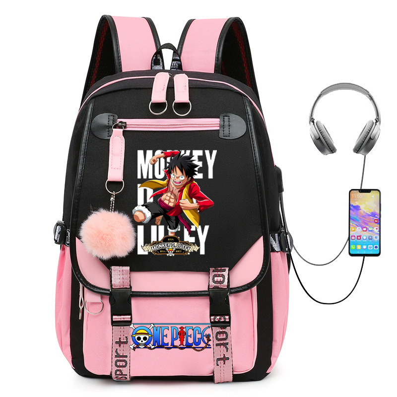 캠퍼스 스타일 대용량 USB 충전 가방 스쿨백 배낭 배낭 원피스 루피 컴퓨터 가방