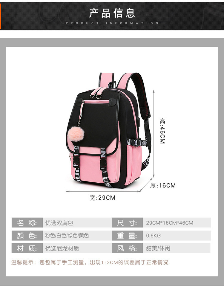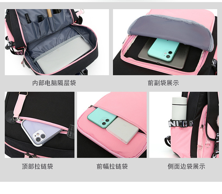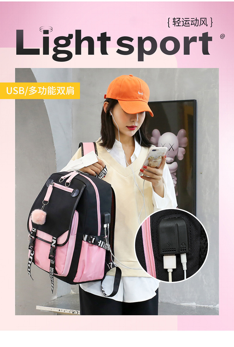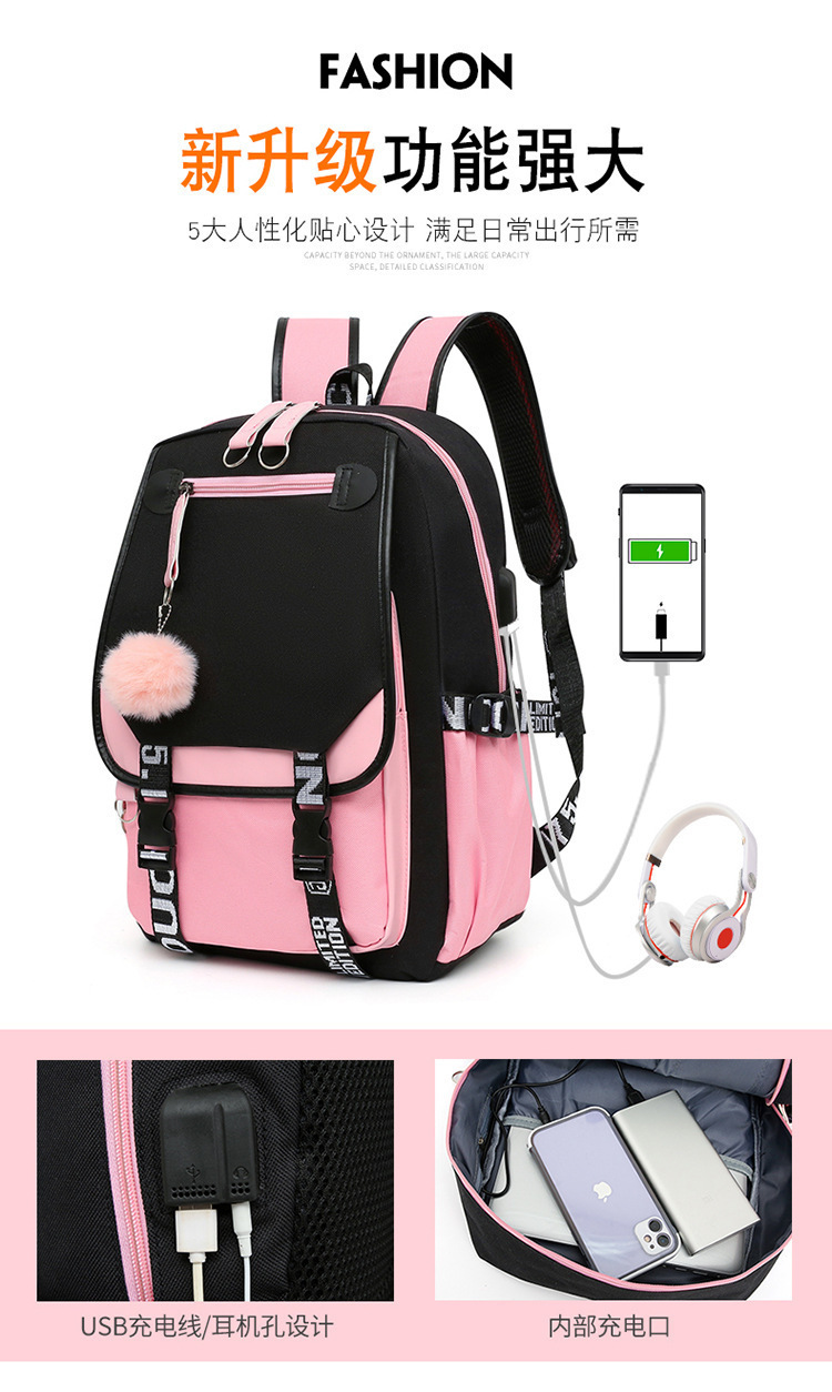 캠퍼스 스타일 대용량 USB 충전 가방 스쿨백 배낭 배낭 원피스 루피 컴퓨터 가방스토어 가기