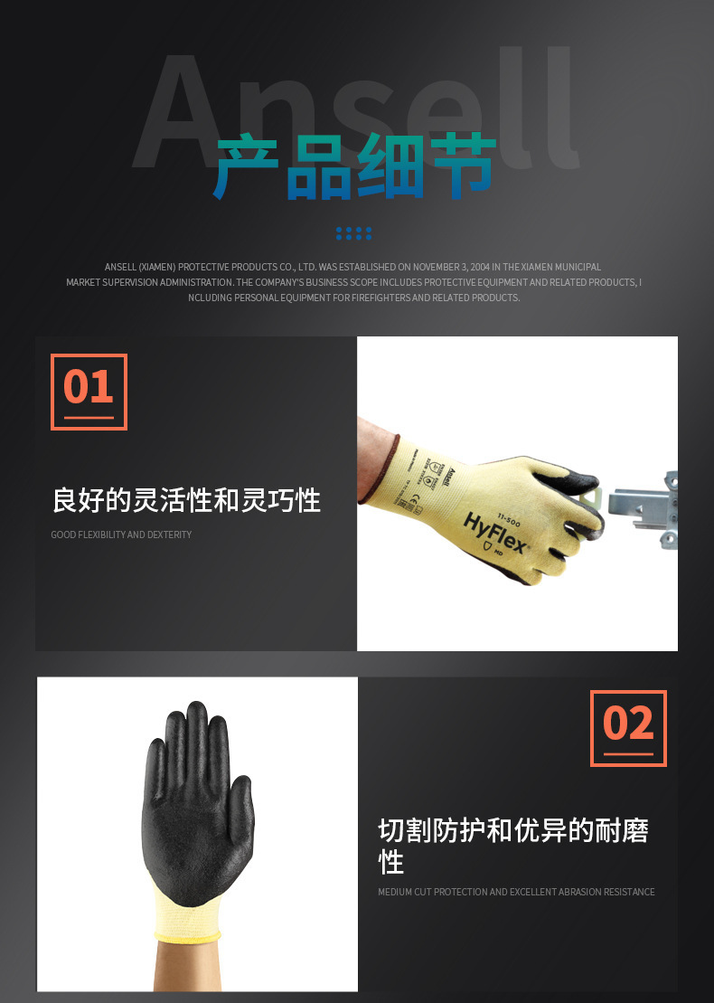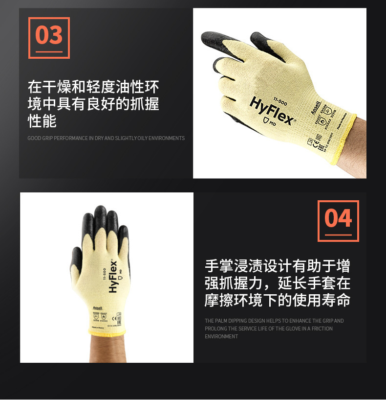 안티 Ansell11-500 니트릴 코팅 장갑 노동 보호 기계 산업 두꺼운 마모 방지 컷 장갑