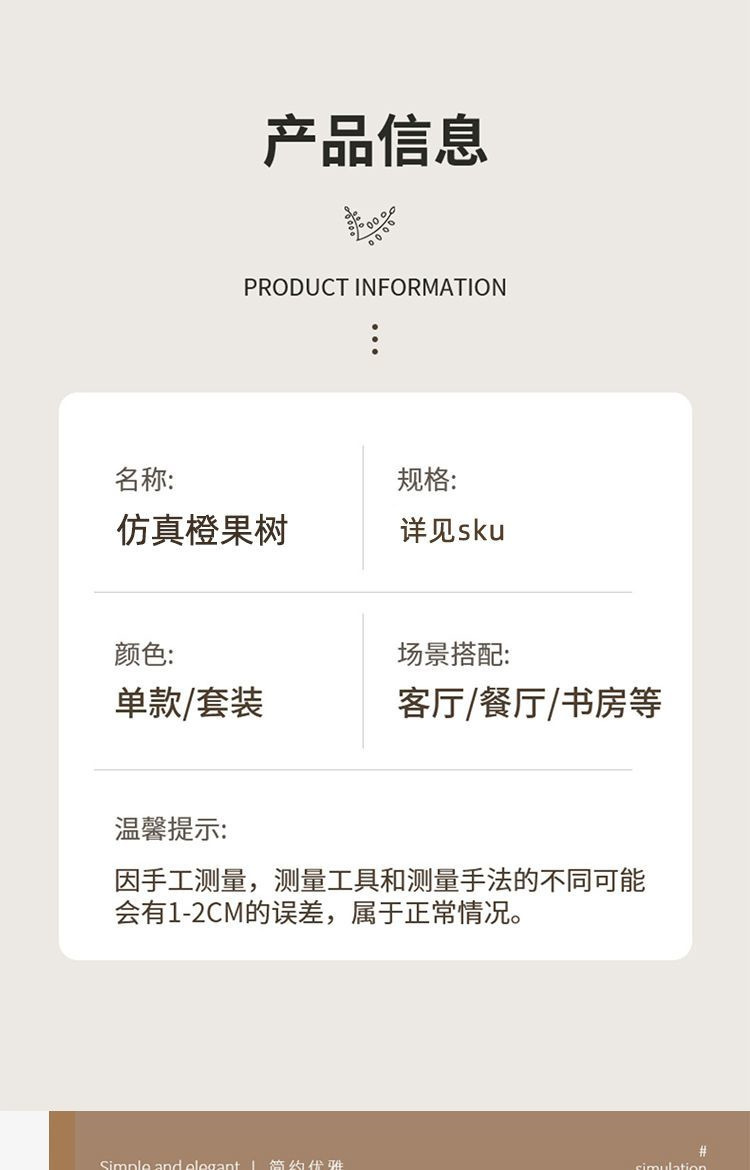 • 1.5m 곡선 막대 암호화된 오렌지 과일 나무 + 베이지색 꽃 바구니