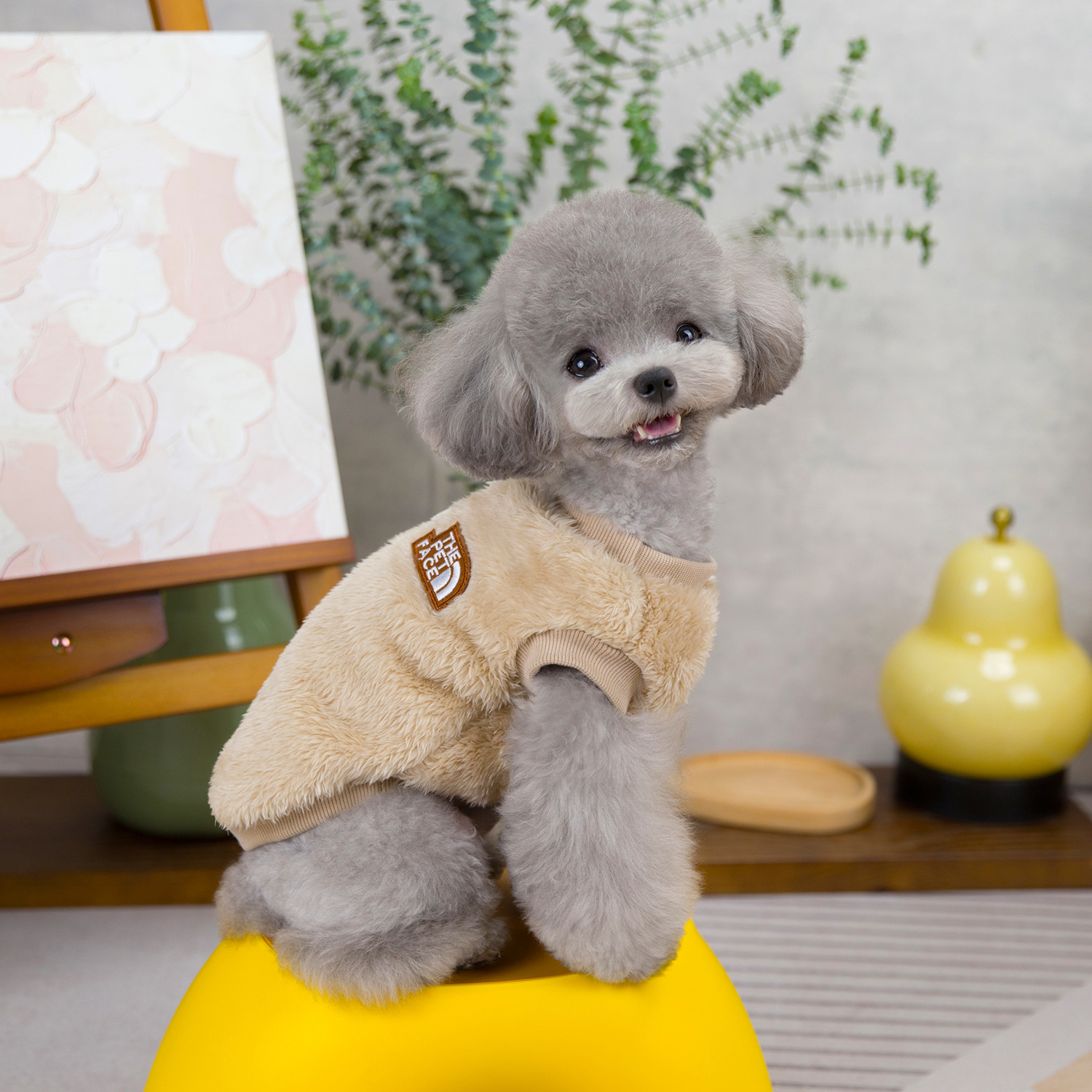 소스 공장 가을과 겨울 새로운 패션 브랜드 애완 동물 양털 고양이 곰 테디 두 다리 옷은 애완 동물 옷을 당길 수 있습니다스토어 가기