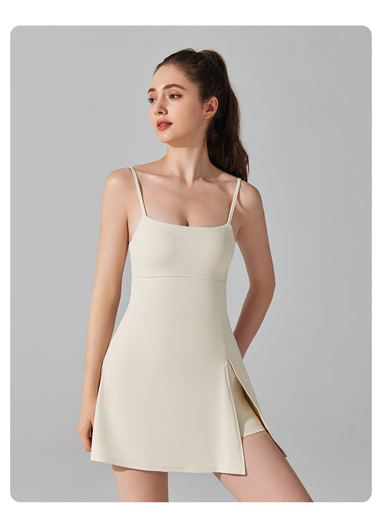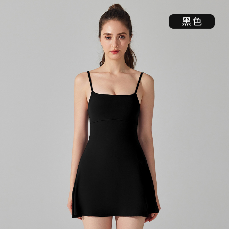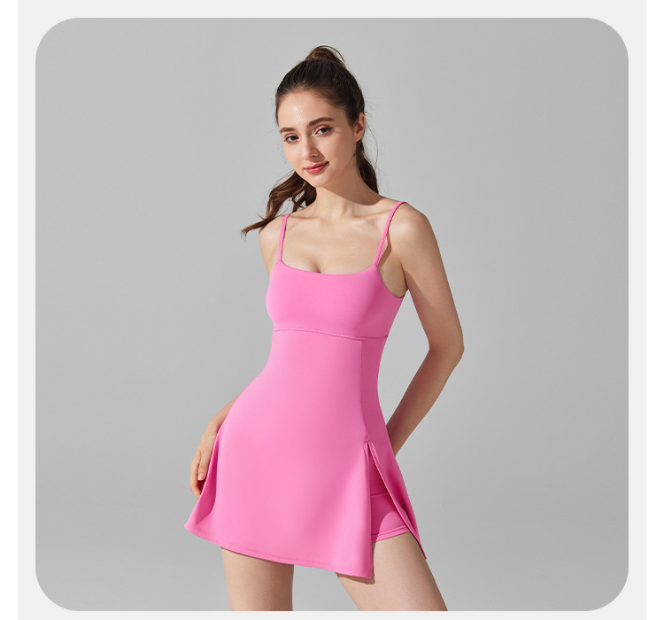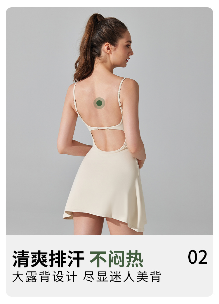 흉부 패드 통기성 야외 골프 여성을위한 아름다운 백 스트랩 요가 테니스 원피스 갖춘 안티 러닝 라이트 보토 밍 스포츠 원피스