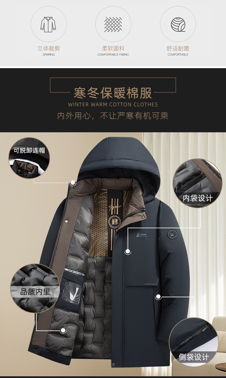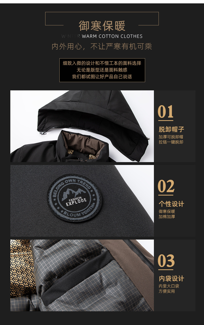 그래 핀 두꺼운 코튼 코트 남자 겨울 사업 캐주얼 이동식 캡 내한성 따뜻한 코튼 코트 남자의 새로운 스타일
