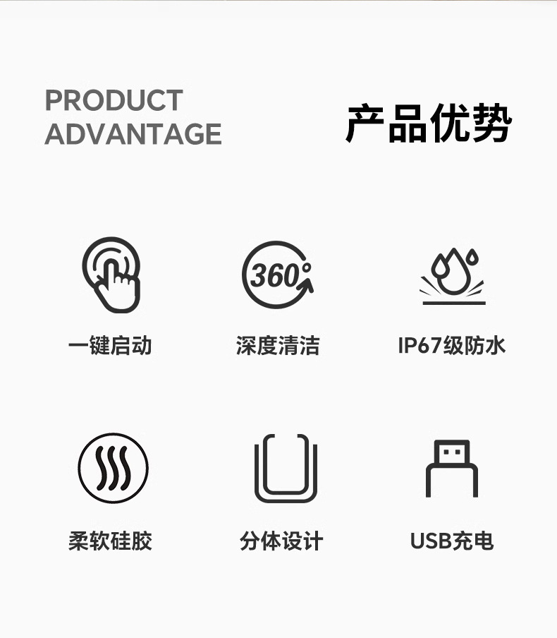 【产品材质】ABS(外壳)+硅胶(内衬)