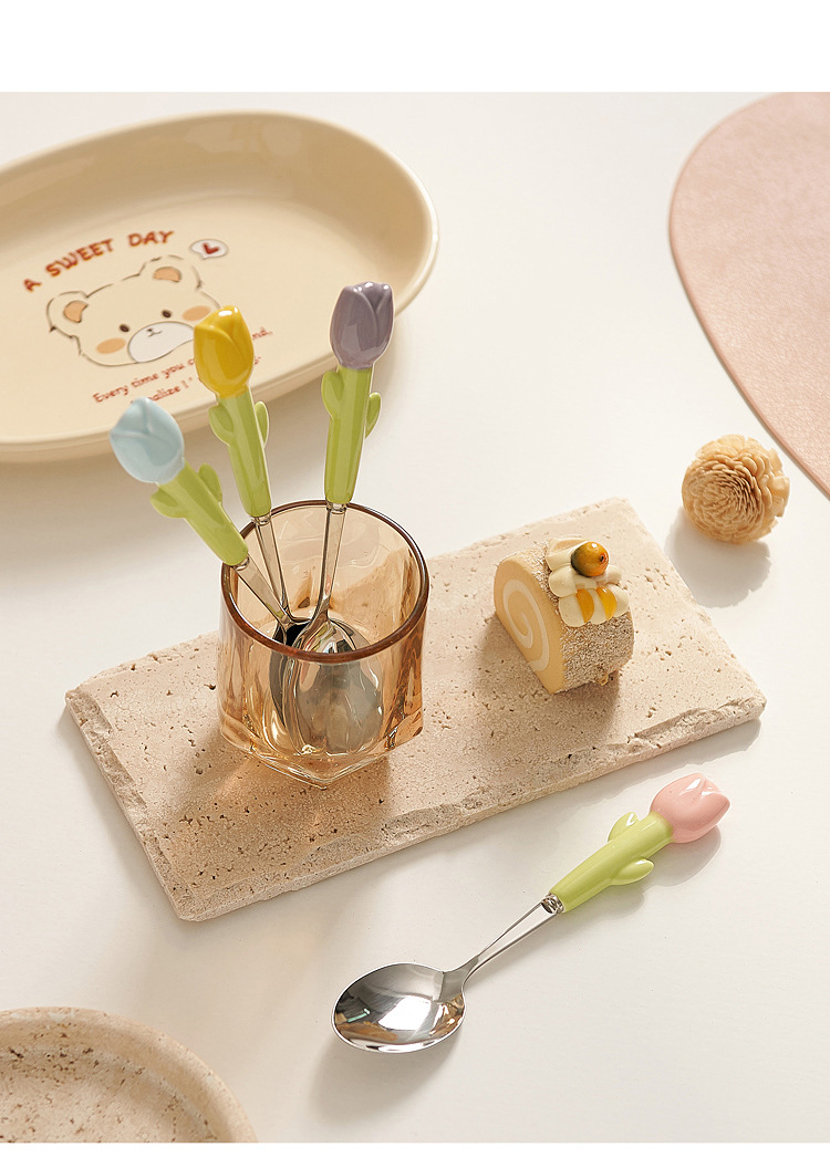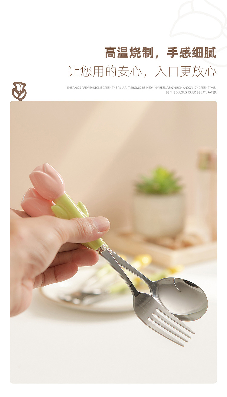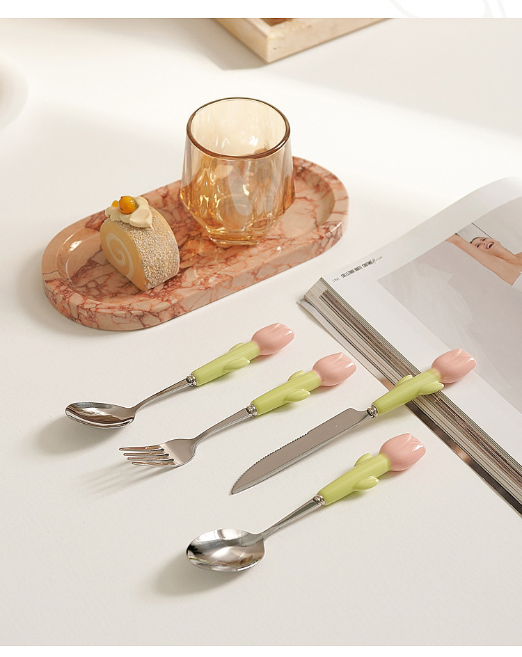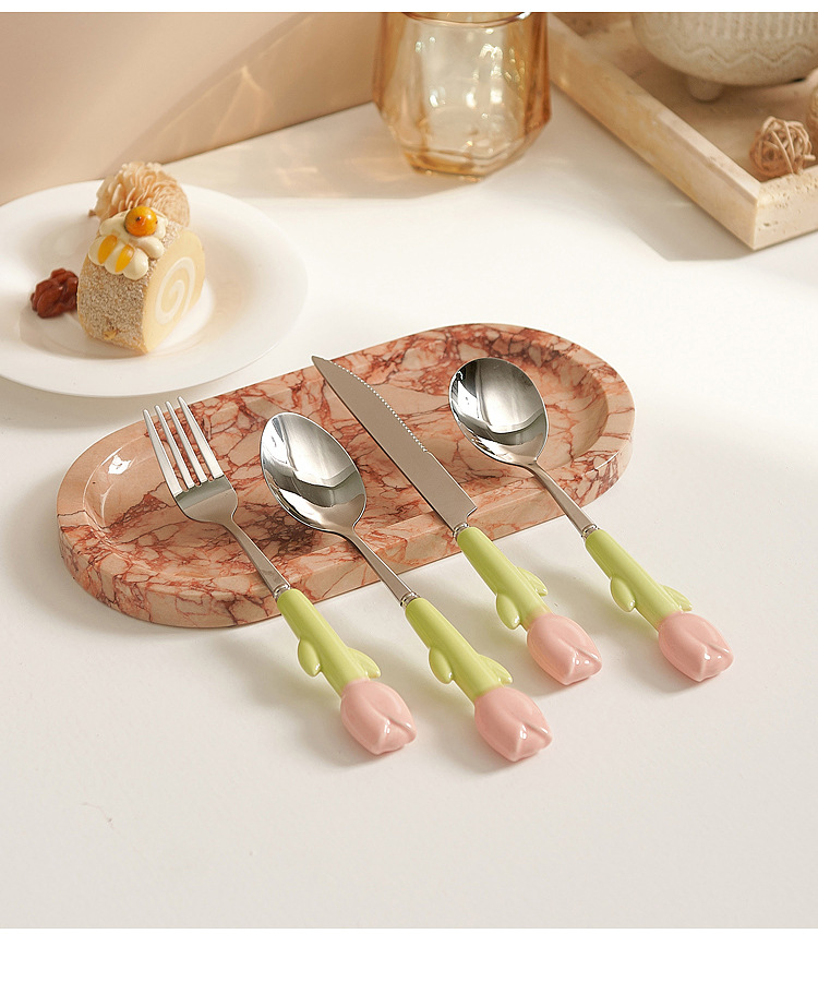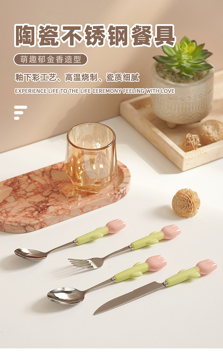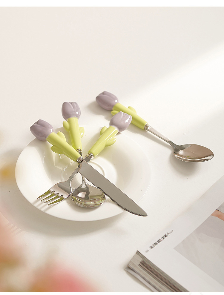 심플한 304 스테인리스 어린이용 나이프, 포크, 스푼 세트, 고급스러운 디자인의 숟가락, 튤립 세라믹 손잡이 스테이크 나이프스토어 가기