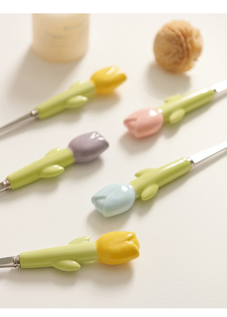 심플한 304 스테인리스 어린이용 나이프, 포크, 스푼 세트, 고급스러운 디자인의 숟가락, 튤립 세라믹 손잡이 스테이크 나이프
