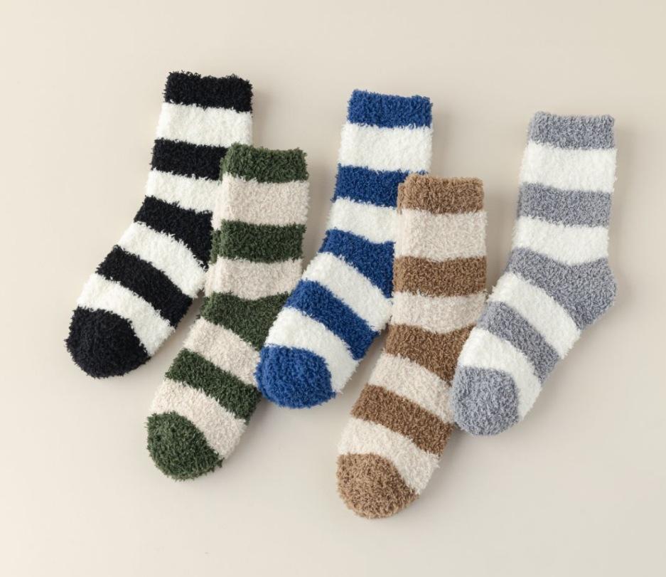남성 산호 벨벳 양말 항균 탈취제 따뜻한 홈 바닥 양말 수면 남성 양말 와이드 스트라이프 플러시 양말