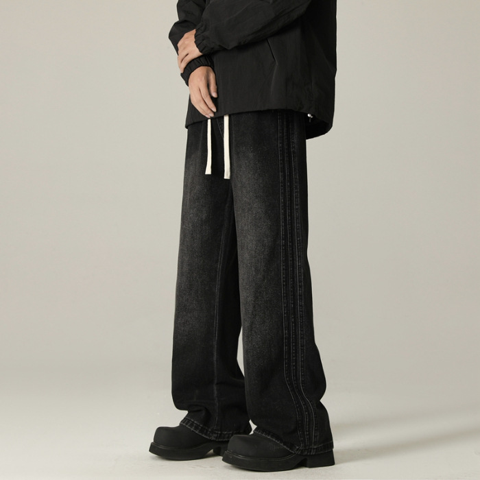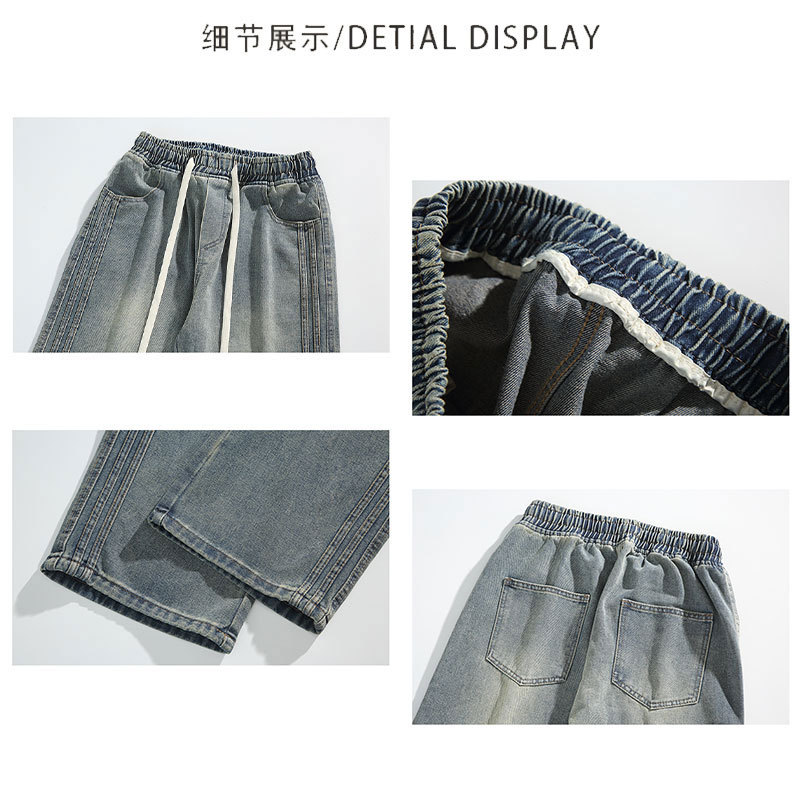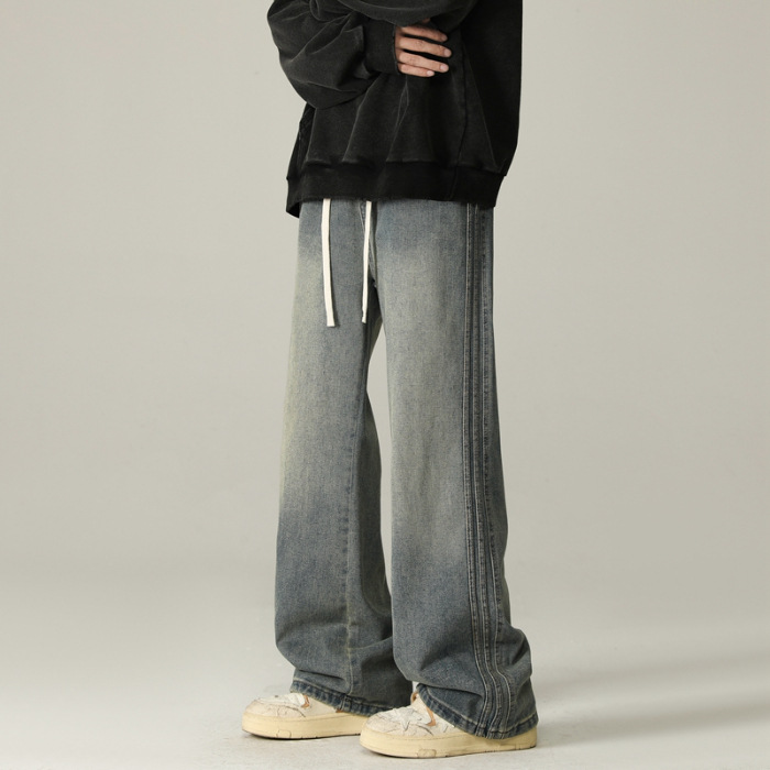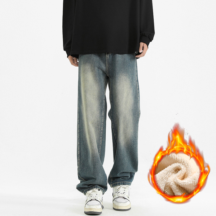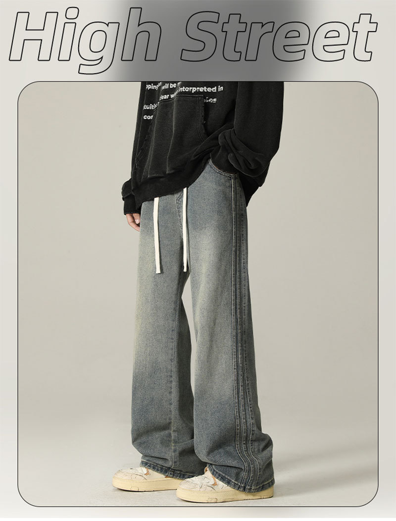 상구 남성복 2025 가을 기모 아메리칸 스타일 청바지 남성 하이 스트리트 트렌디 빈티지 스타일 신축성 있는 허리 스트레이트 팬츠 남성용스토어 가기