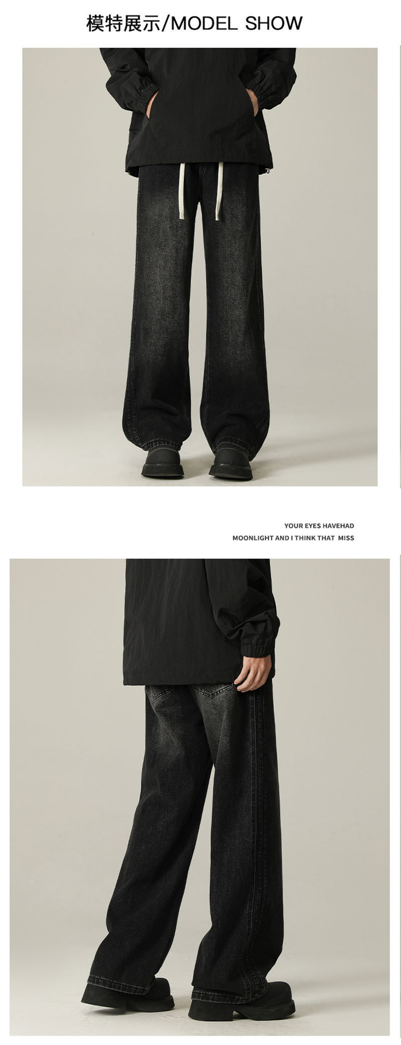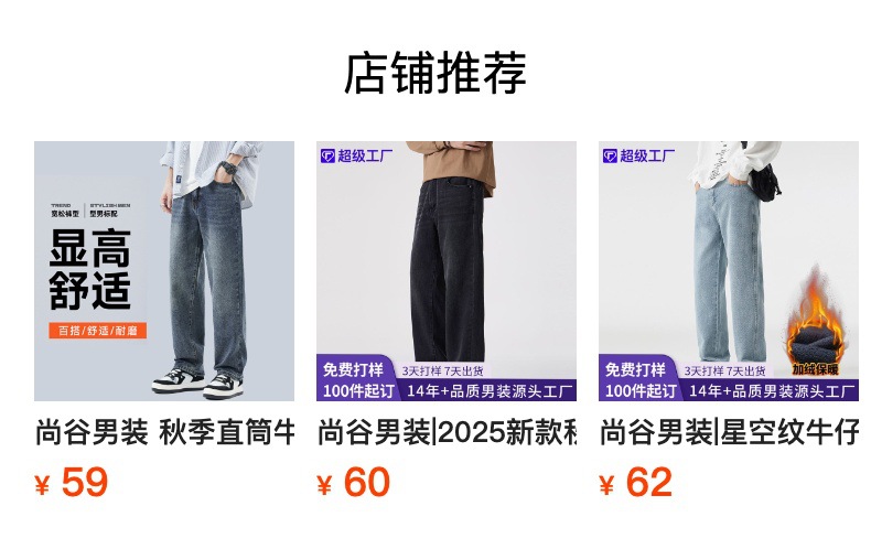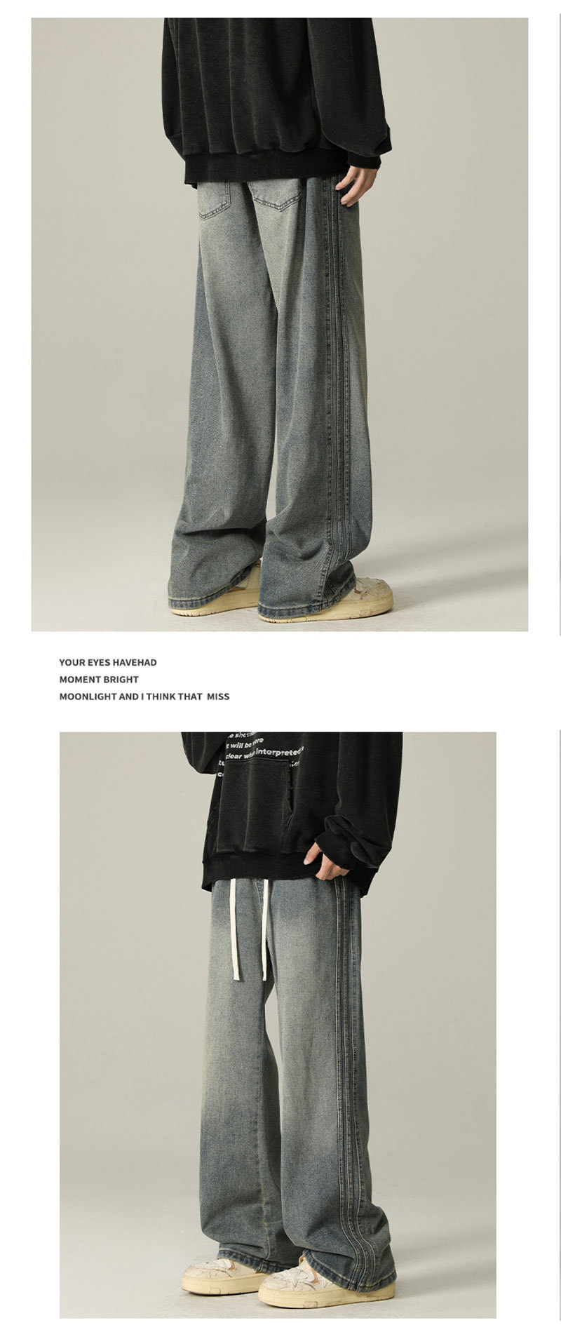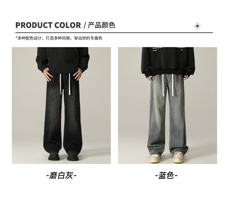 상구 남성복 2025 가을 기모 아메리칸 스타일 청바지 남성 하이 스트리트 트렌디 빈티지 스타일 신축성 있는 허리 스트레이트 팬츠 남성용스토어 가기