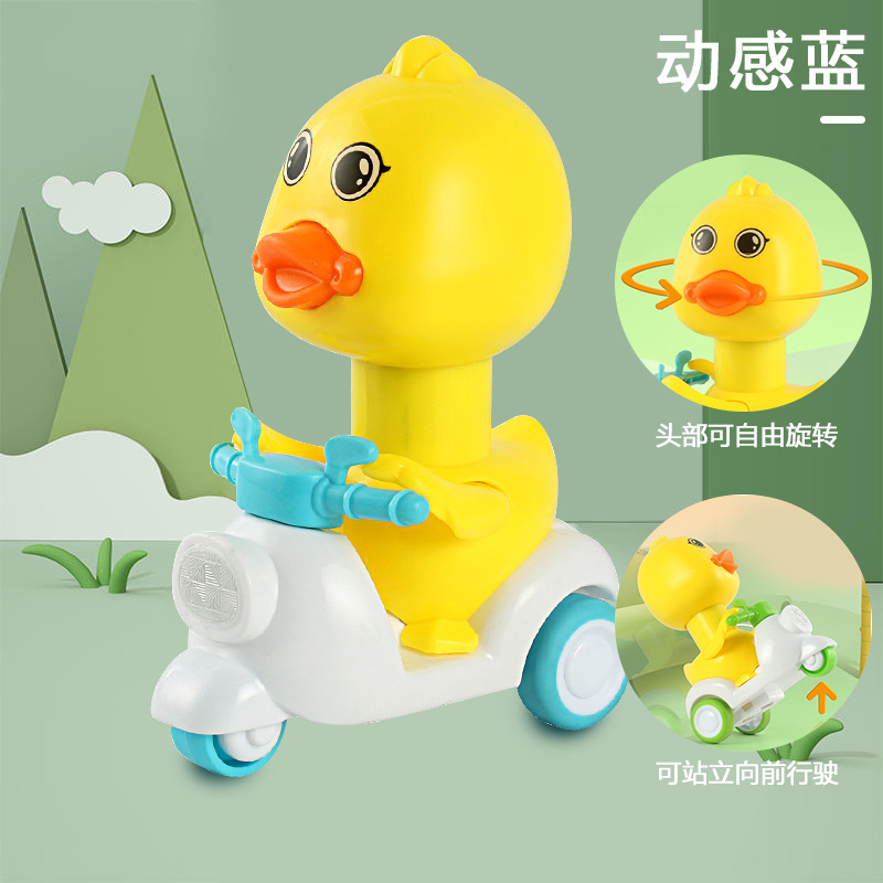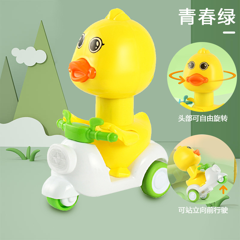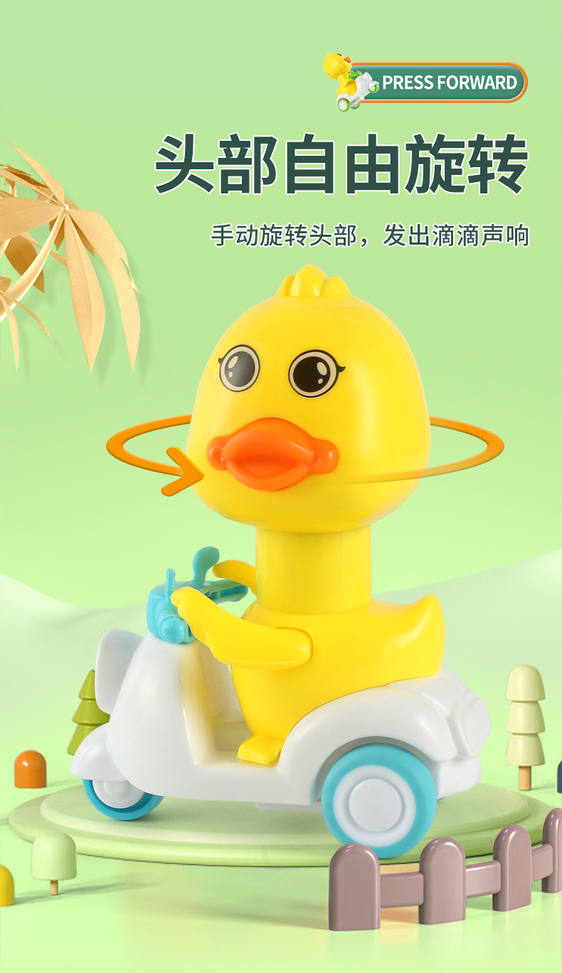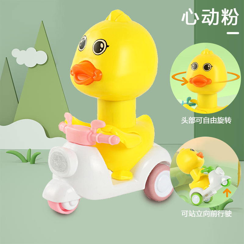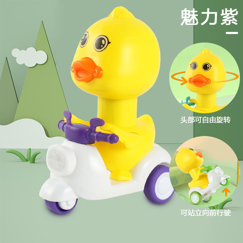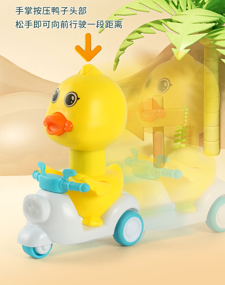 틱톡 인기 상품, 누르면 움직이는 오리 모양 어린이 관성 리턴 스쿠터, 아기 만화 교육용 도매 노점 장난감스토어 가기