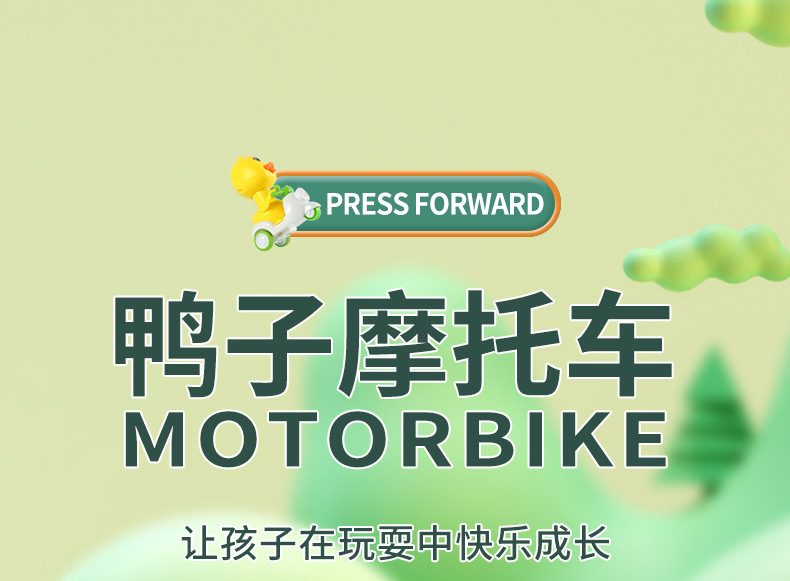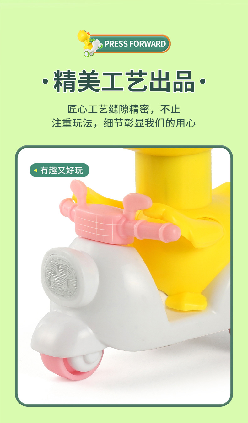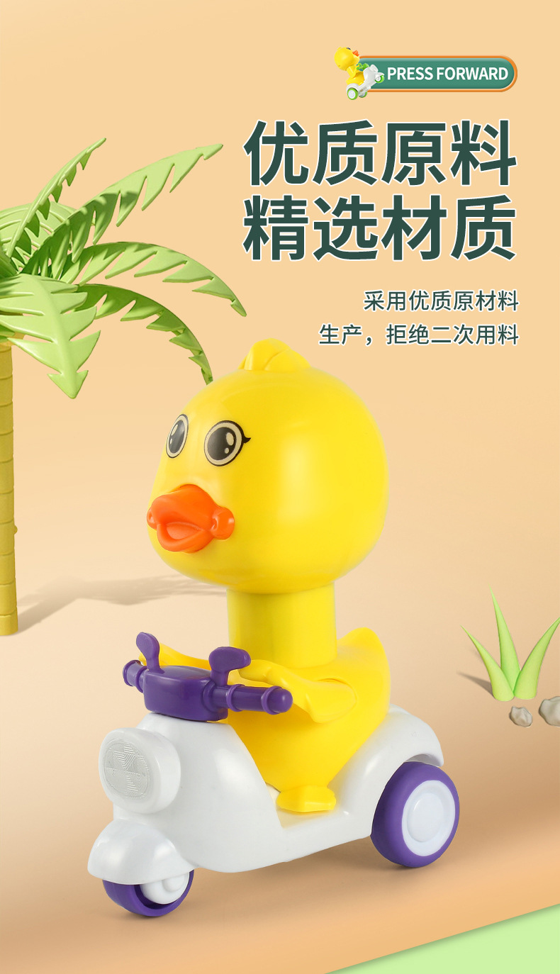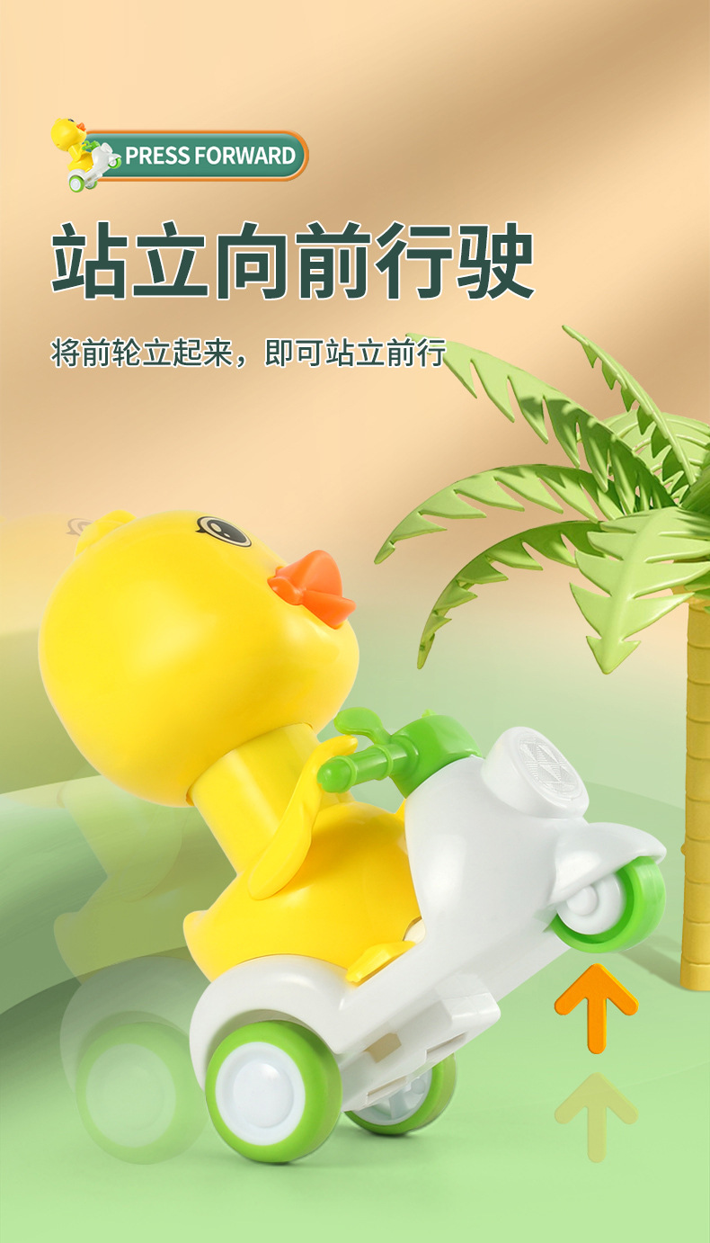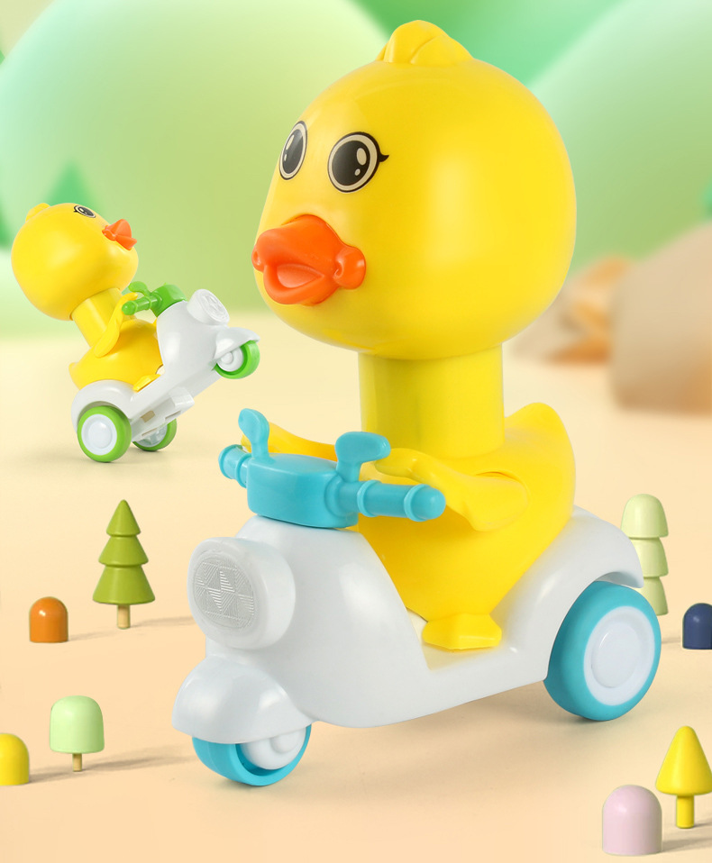 틱톡 인기 상품, 누르면 움직이는 오리 모양 어린이 관성 리턴 스쿠터, 아기 만화 교육용 도매 노점 장난감스토어 가기