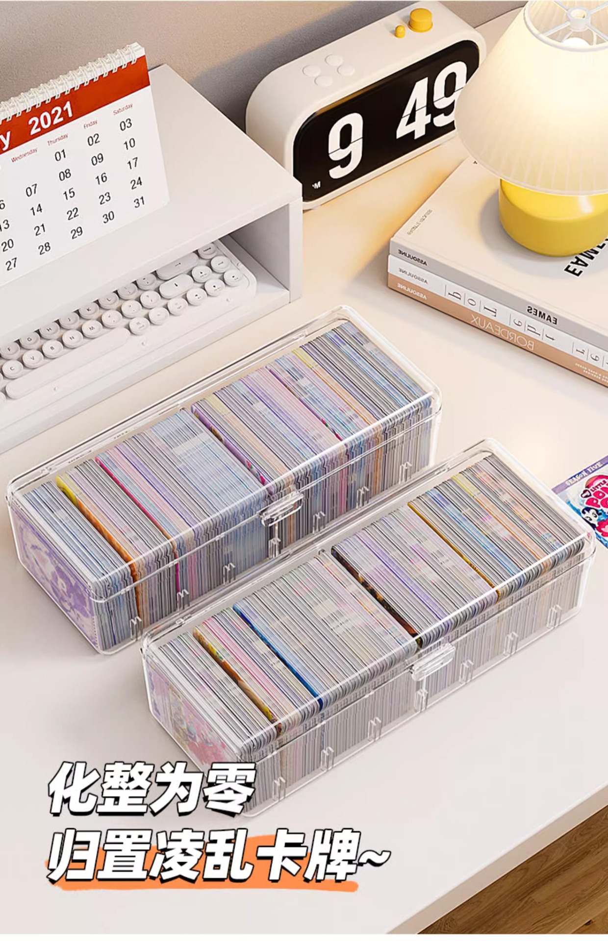 투명한 울트라 맨 카드 저장 상자 대용량 휴대용 유기-오 카드 파티션 보관 상자 뚜껑