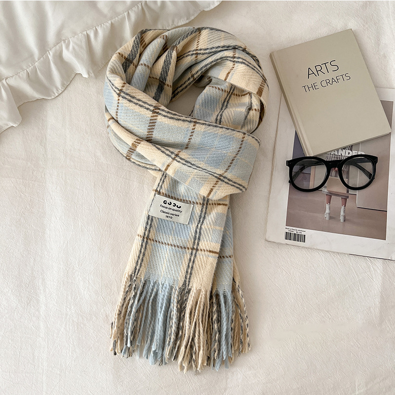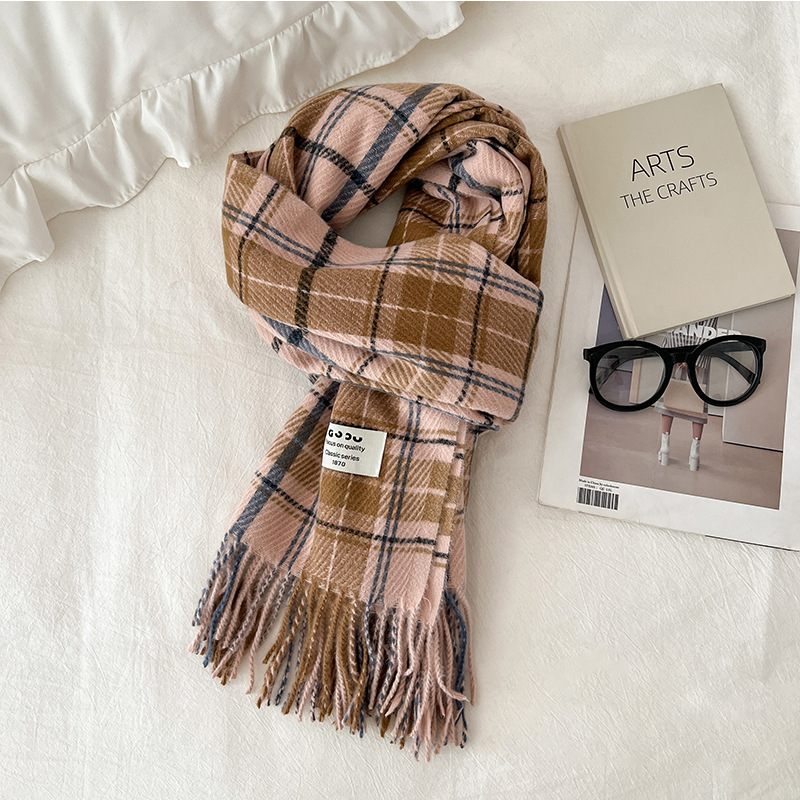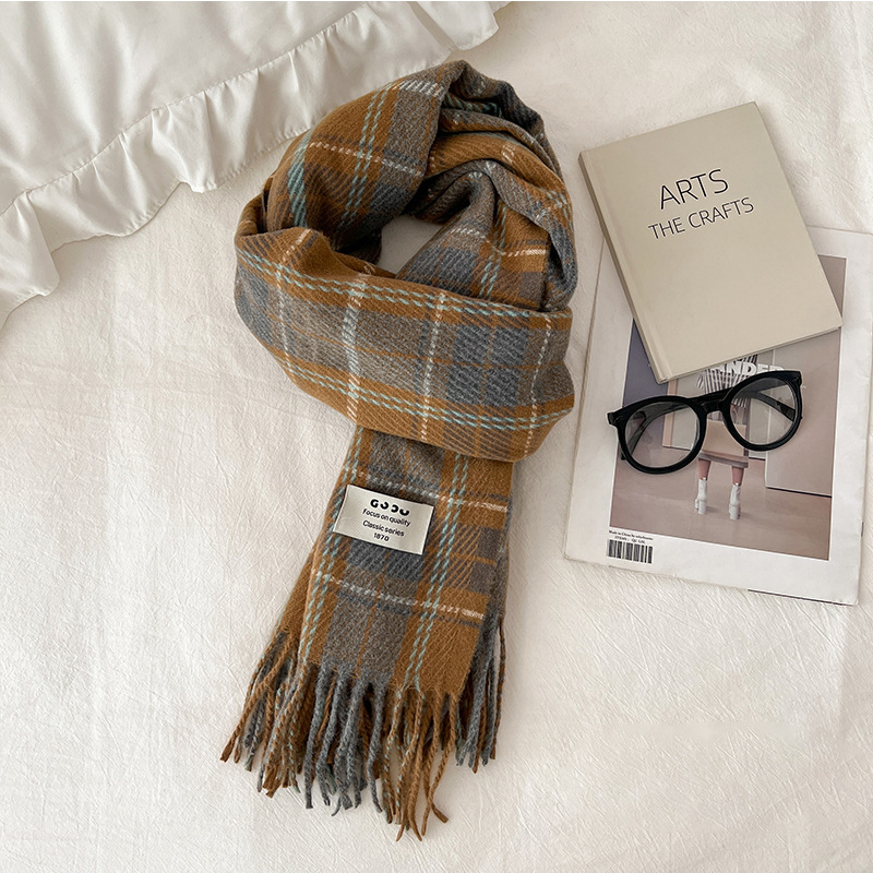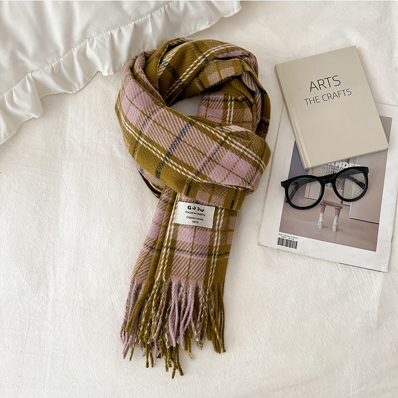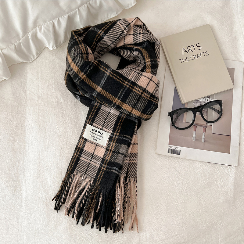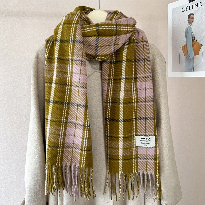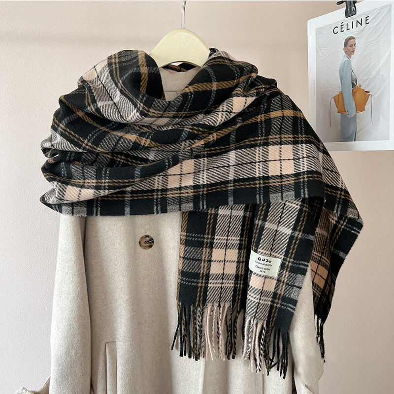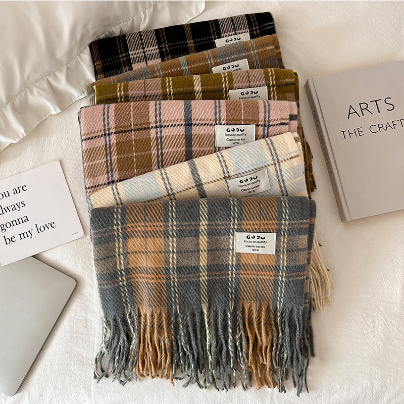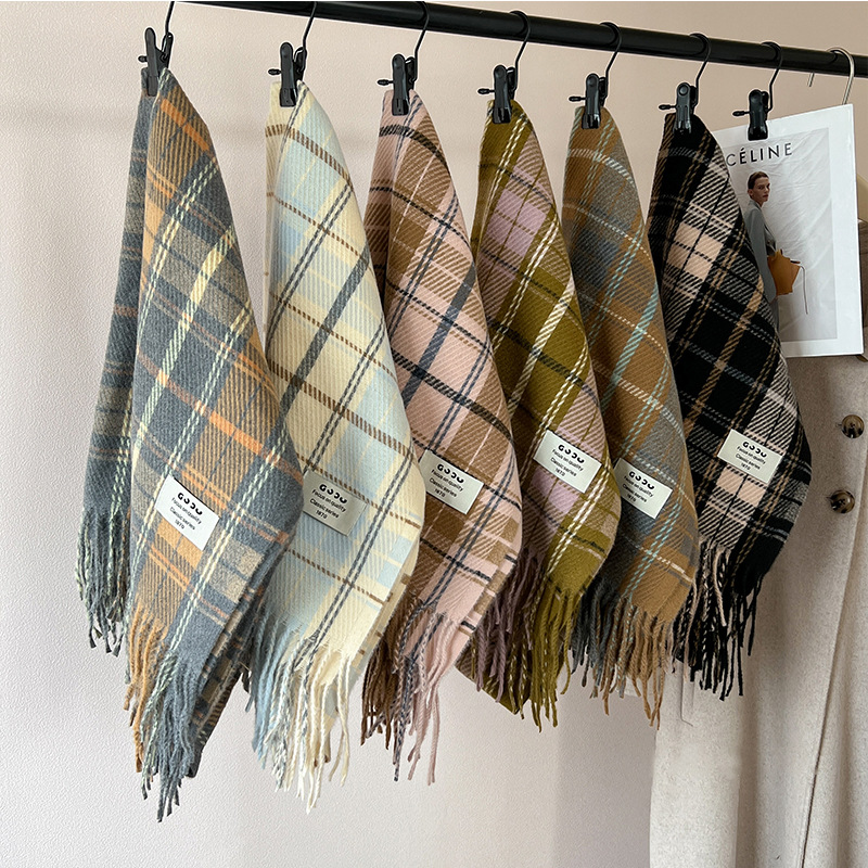 새로운 스카프 여성의 가을 겨울 두꺼운 따뜻한 모방 양 격자 무늬 목도리 학생과 커플을위한 한국 패션 영국 컬러 파인 격자 무늬